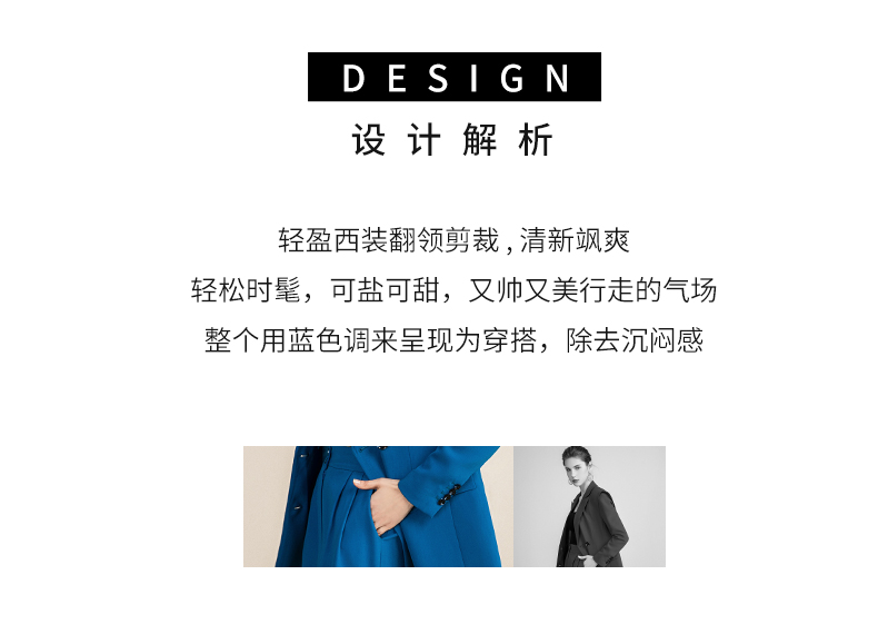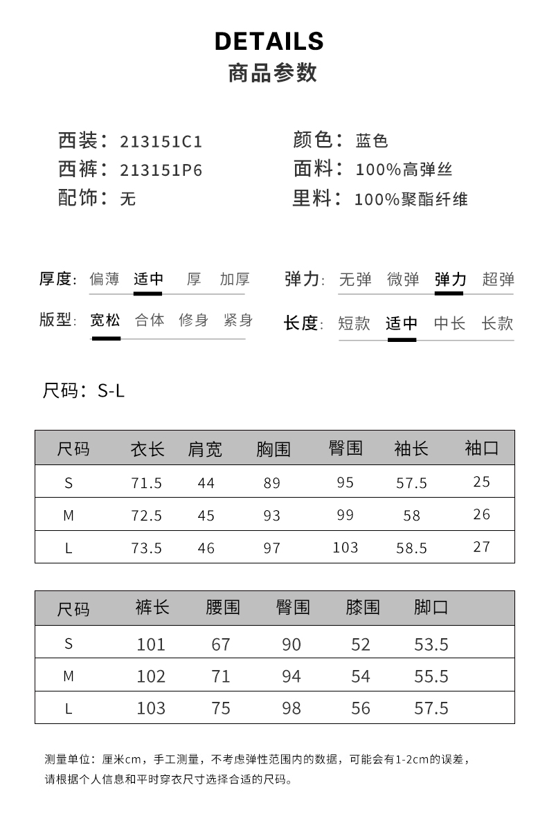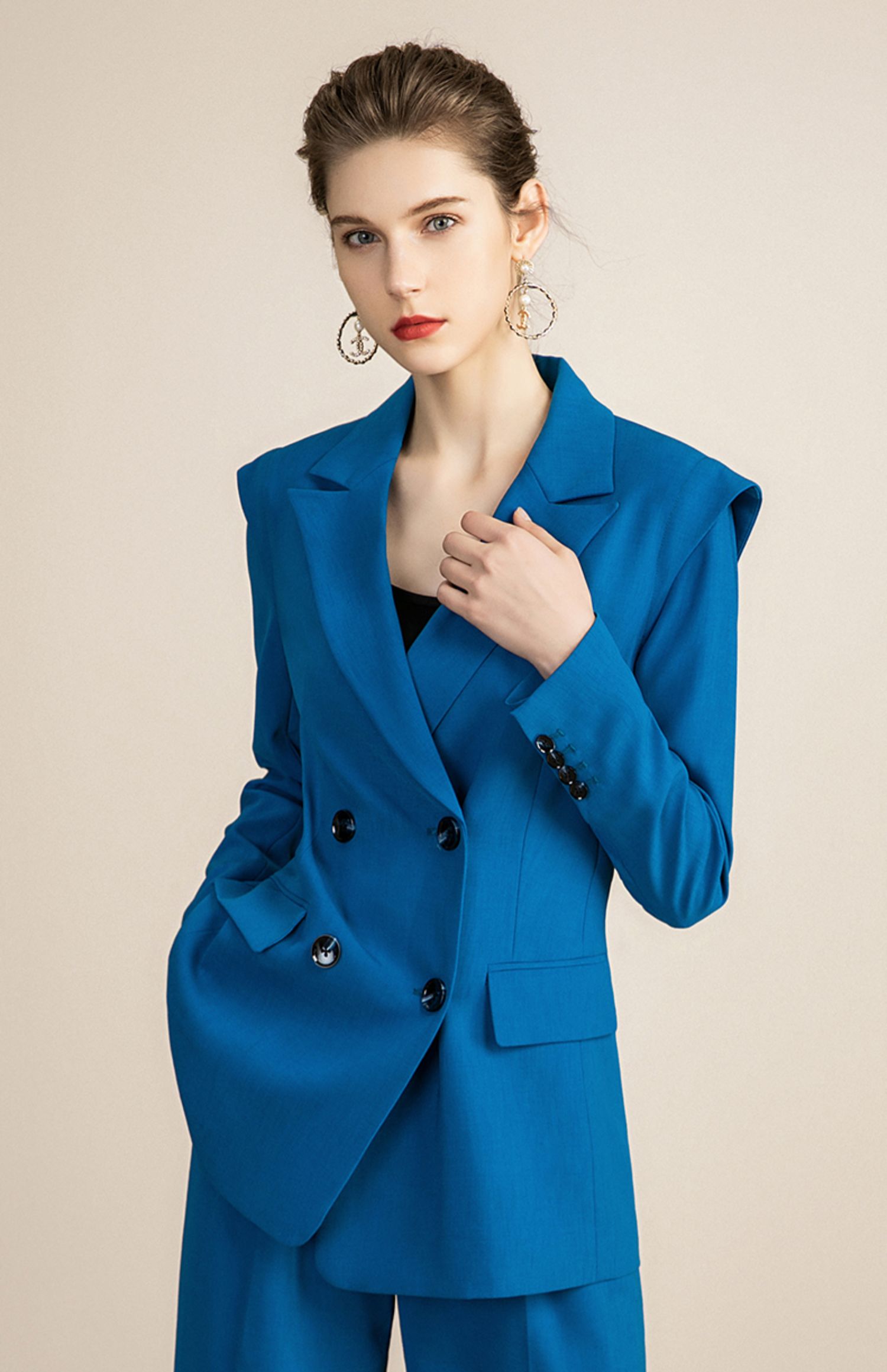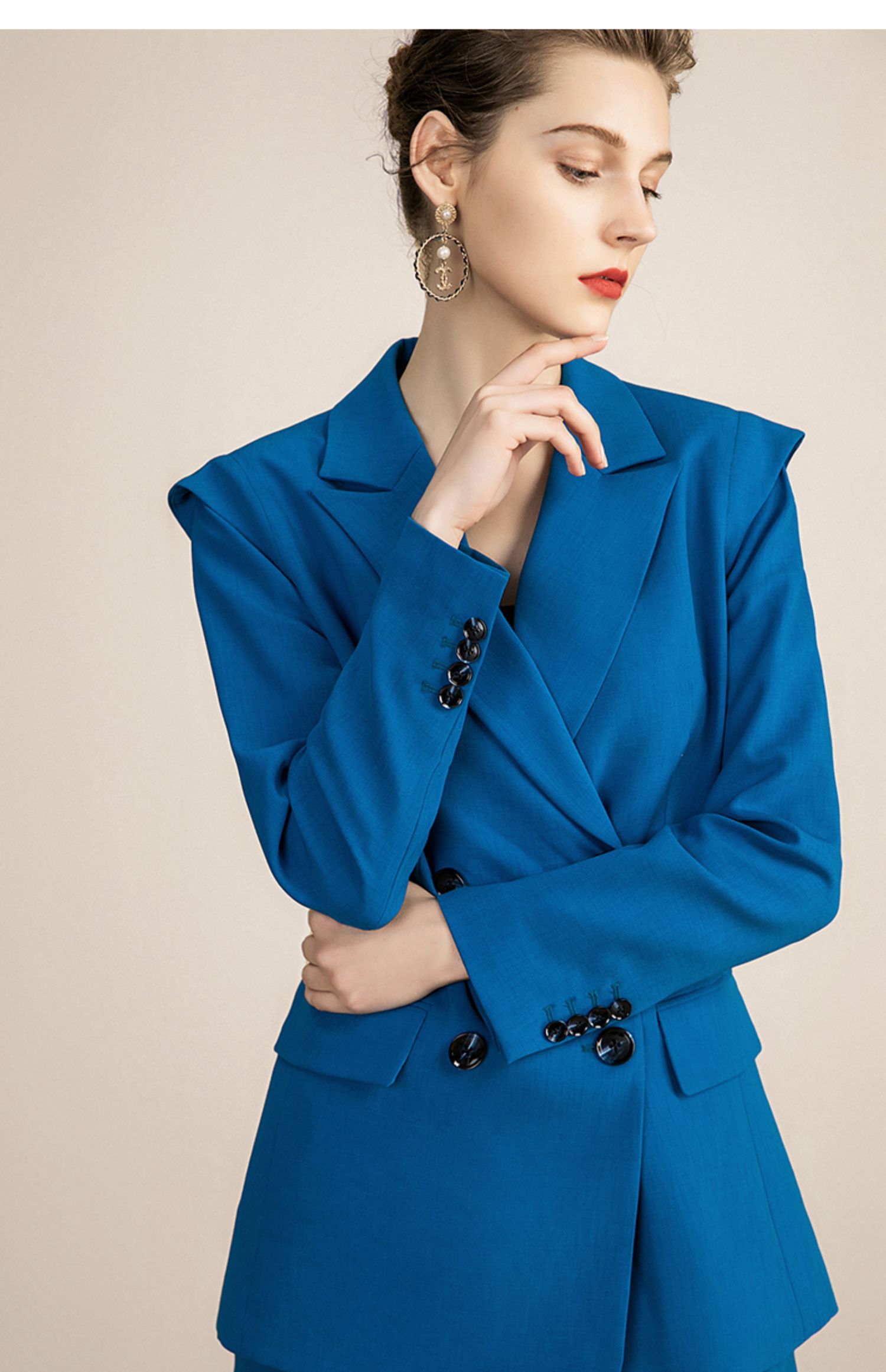 IWY/蓝色休闲时尚套装女阔腿裤职业装双排扣修身韩版西装工作服OL 213151C1+P6