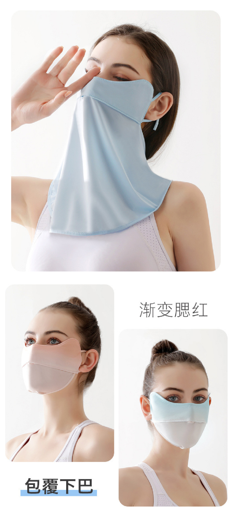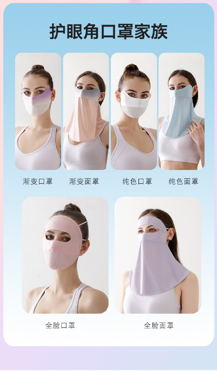 【冰丝防晒面罩】夏季脸基尼户外骑行遮阳面罩 开口透气护眼角渐变口罩