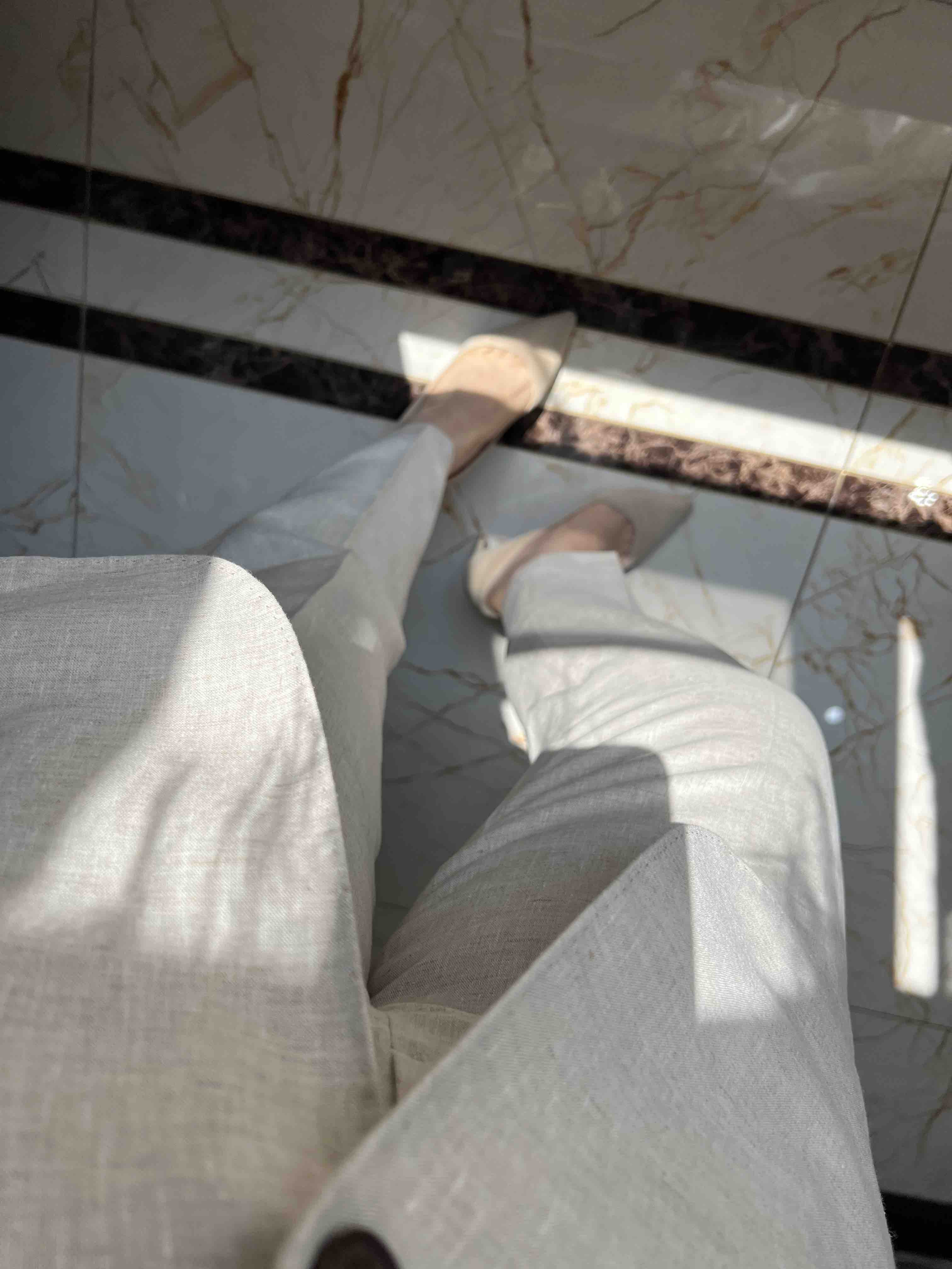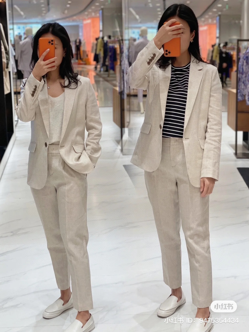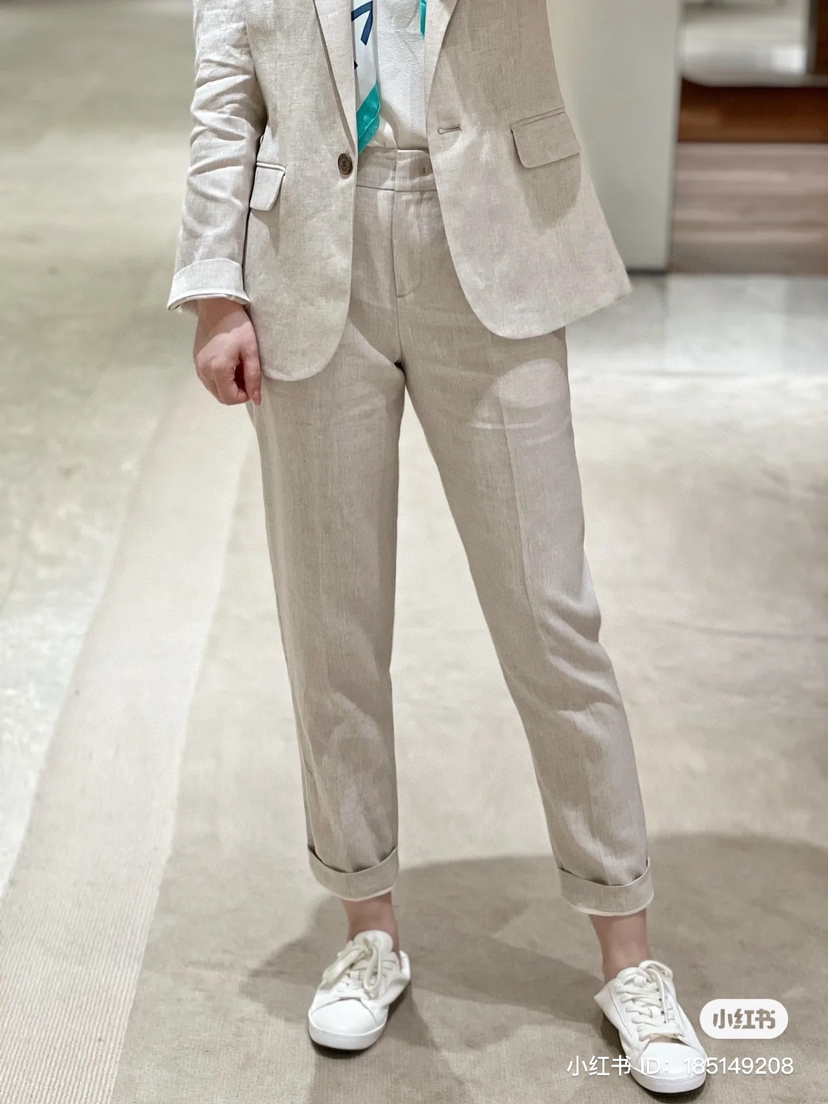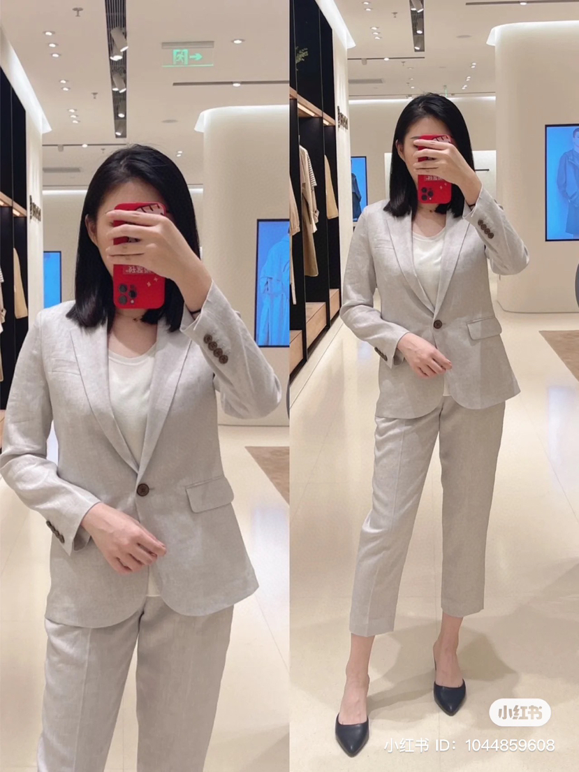 趁还在假期,专柜去试穿感受一下,我个人觉得西服单穿更有味道,这条浅色的西裤,如果大腿胖的话,穿上不好看。你们仔细看一下图四图五图六的效果。不过配套穿亚麻套装,确实更有老钱风。