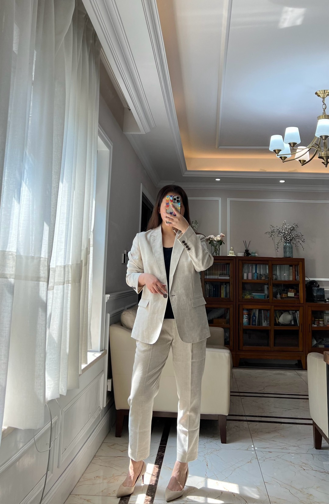 46-1 独家圆正 小禾 经典亚麻西服套装 无染色雨露麻 椰子壳纽扣 炒鸡多手工