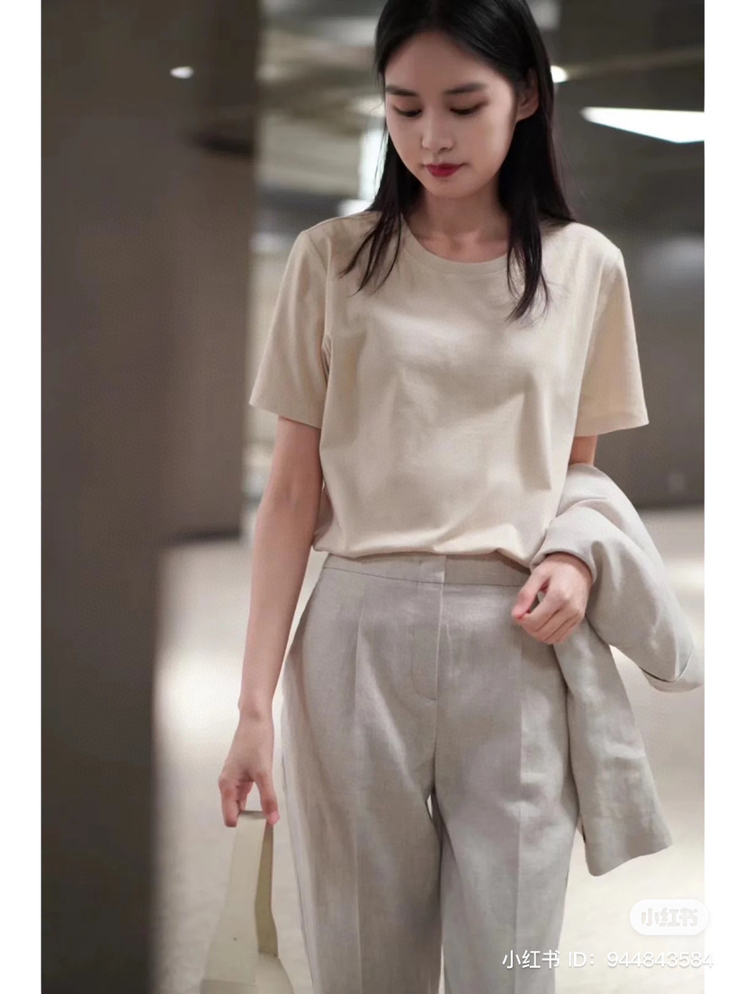 平铺看下,上了年龄,越来越喜欢亚麻材质的衣服,看看LP啊,BC啊那些老钱品牌。雨露细支亚麻,亲肤细腻,飘逸垂坠,吸汗透气,亚麻的褶皱,是被偏爱的富贵褶[爱心]