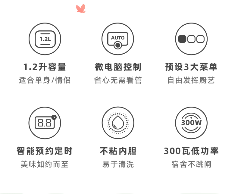 【小程序】小熊(Bear)电饭煲 电饭锅小2人家用1-2人智能预约1.2L多功能小型迷你宿舍小锅米饭锅 DFB-B12L5