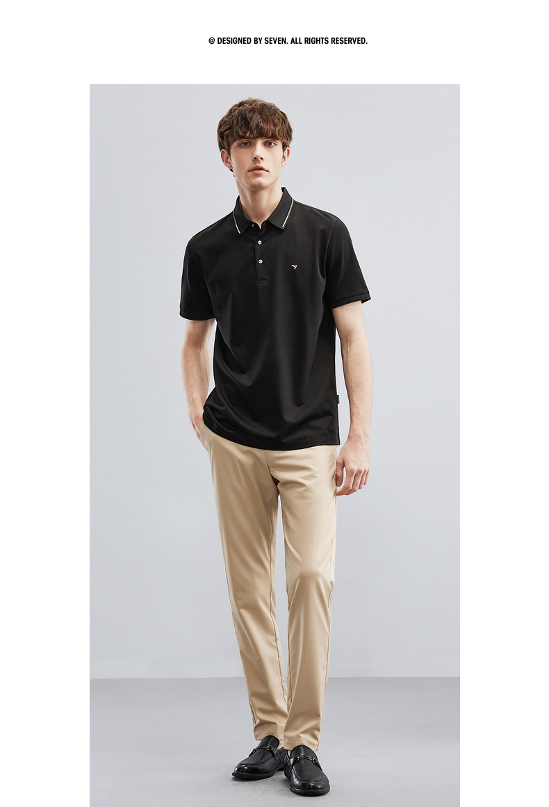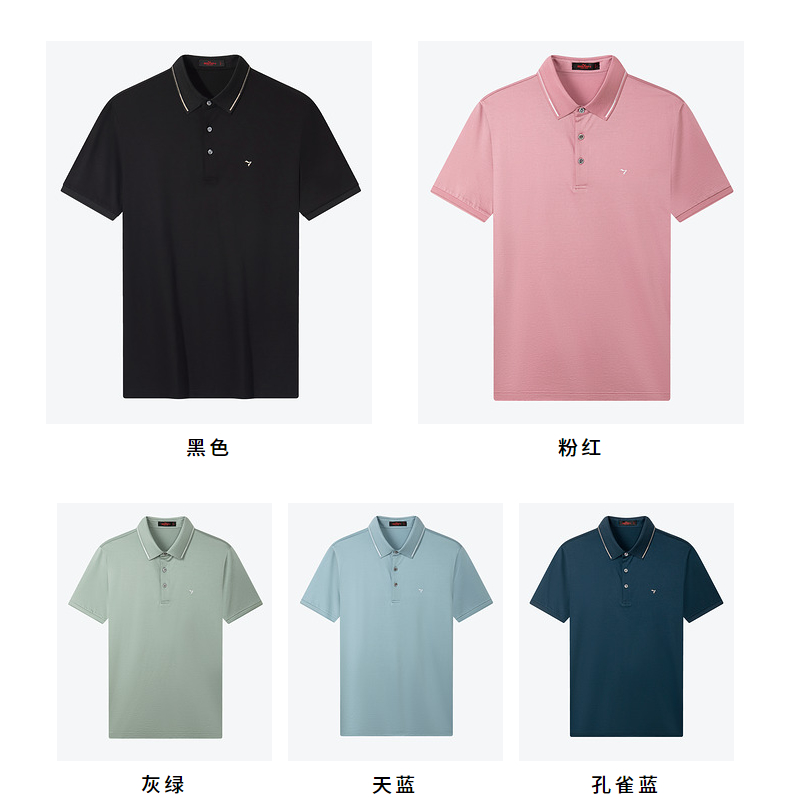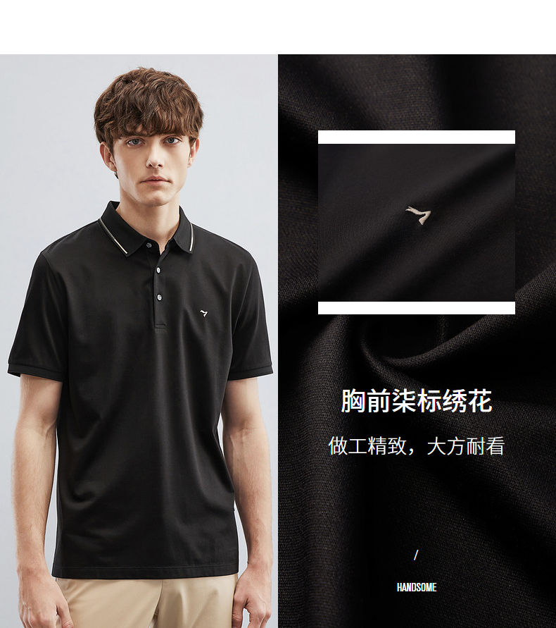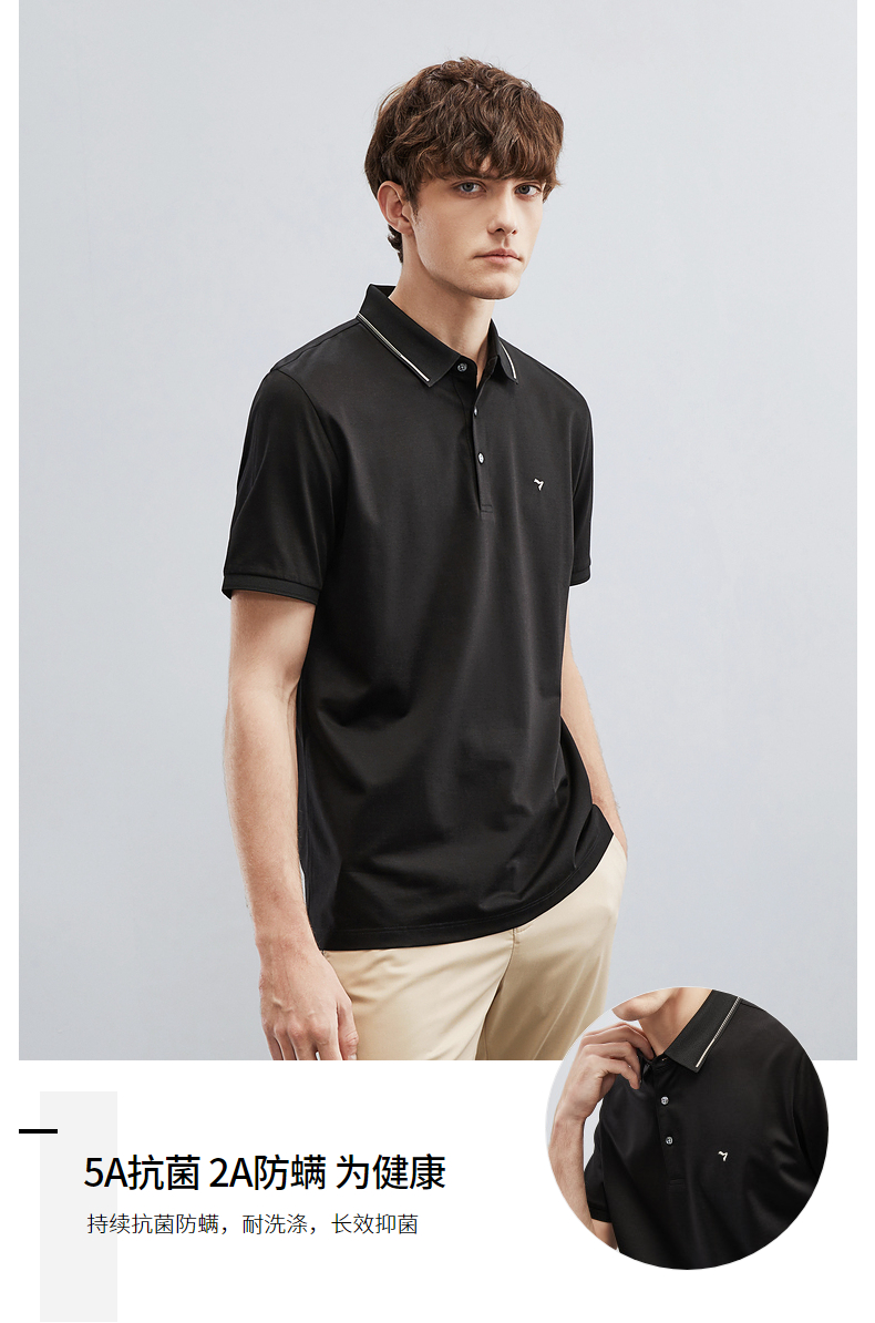 【5A抗菌/2A防螨】柒牌polo衫男短袖夏季新款含桑蚕丝翻领T恤衫124T73290
