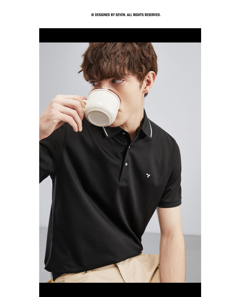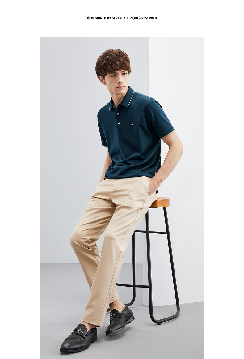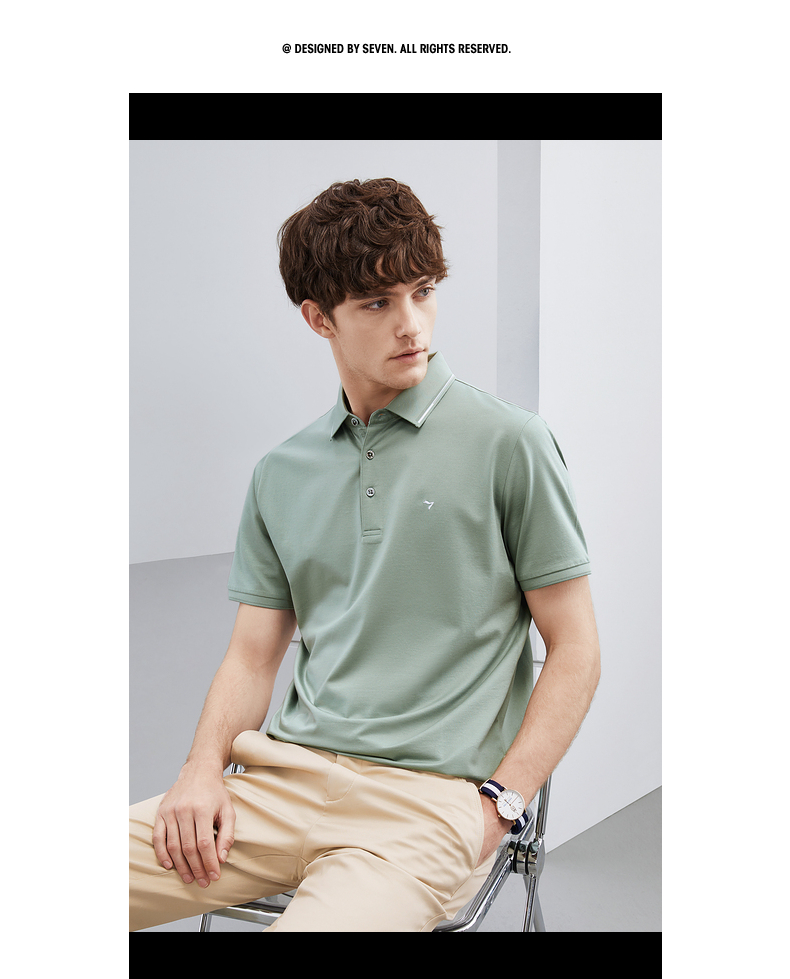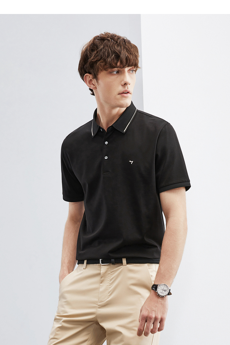 【5A抗菌/2A防螨】柒牌polo衫男短袖夏季新款含桑蚕丝翻领T恤衫124T73290