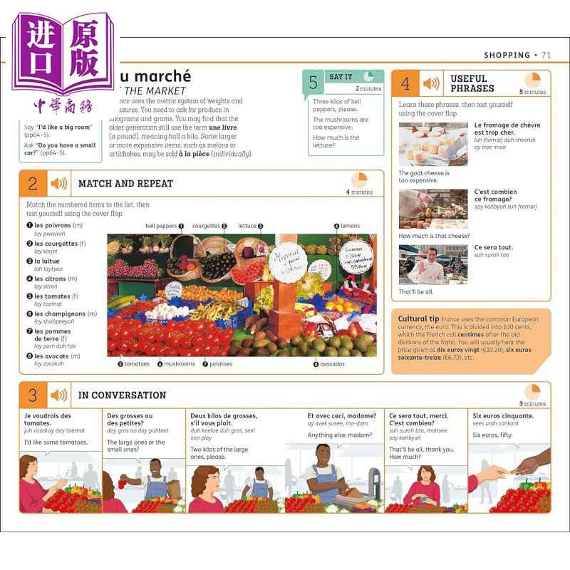 DK 的15 分钟法语课程对于想要快速学习法语的忙碌人士来说是正合适的课程。十二个主题章节分为易于学习的 15 分钟每日课程,涵盖一系列实用主题,包括休闲、商务、餐饮、旅行和购物。