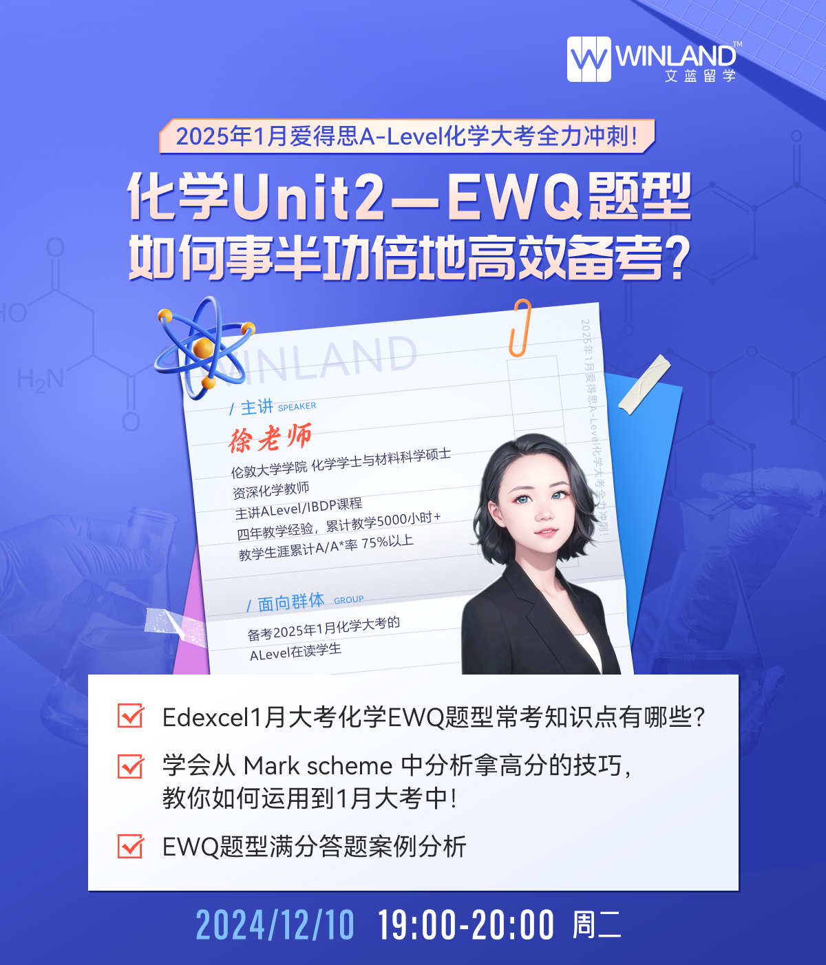 【12.10】2025年1月爱得思A-Level化学大考全力冲刺!化学Unit 2—EWQ题型如何事半功倍地高效备考?