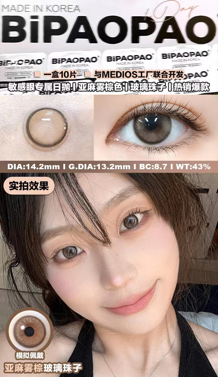一点点棕 直径14.0 染色13.2 基弧8.6 含水量43%