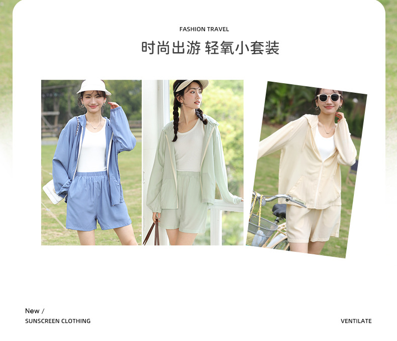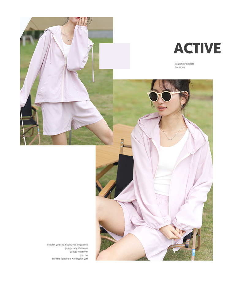 【79元/套】夏季防晒连帽套装 韩版糖果色休闲空调衫短裤