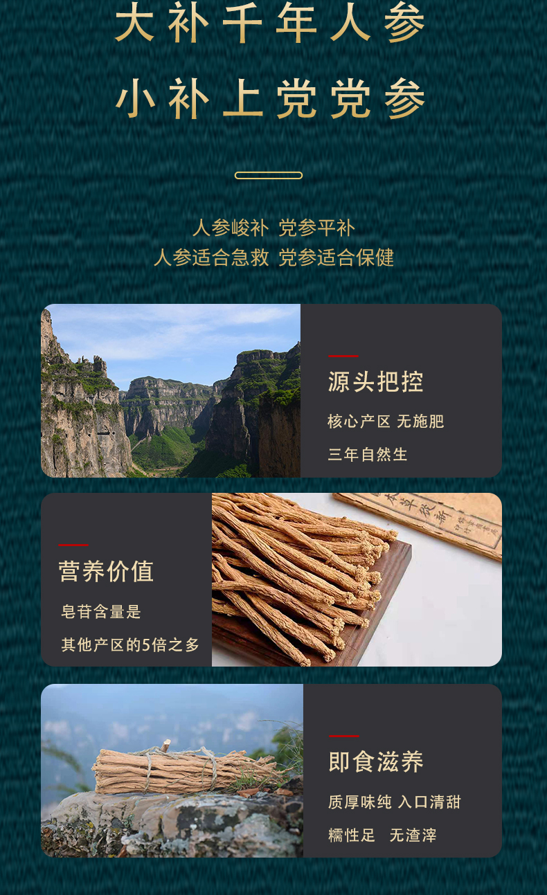 南太行之巅原生态·潞党参原条 地标产品 1颗好参 狮头凤尾 3年时间 30道工序