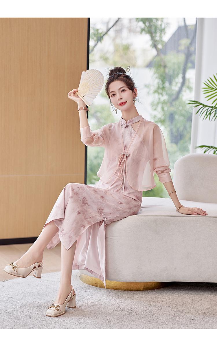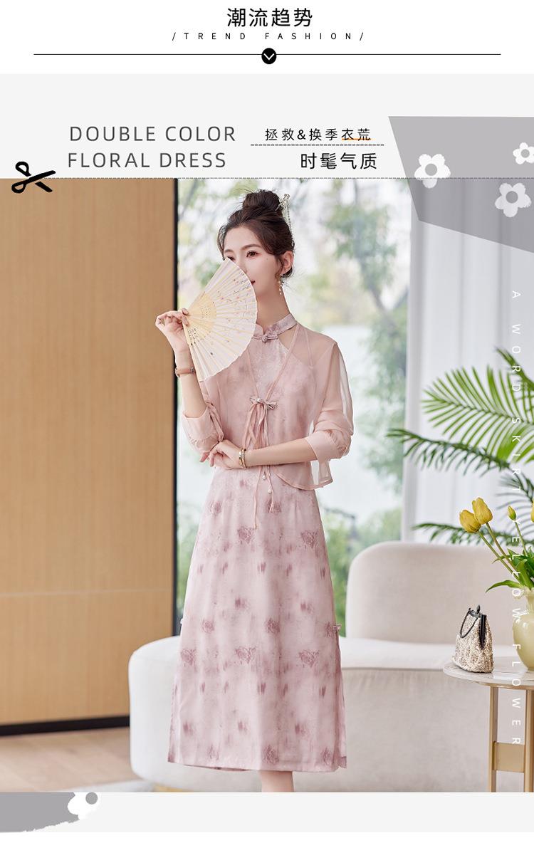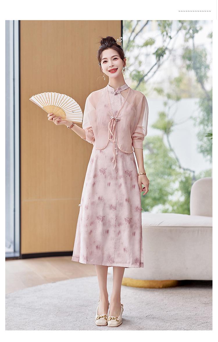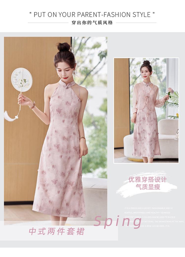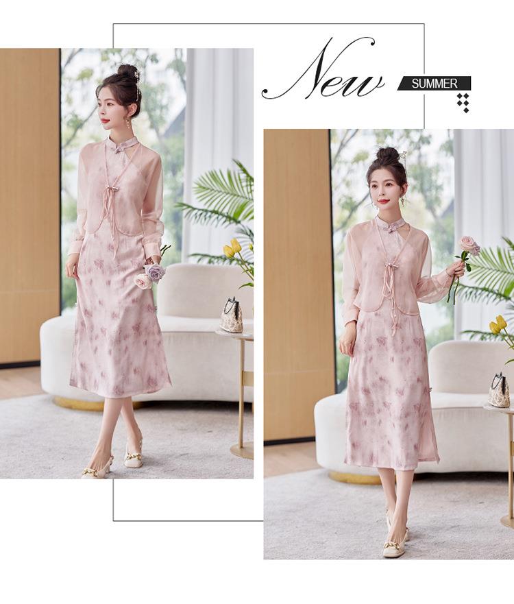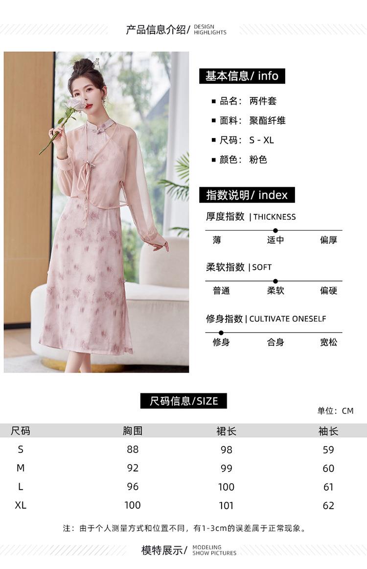 【预订·最迟6天发货】国风复古盘扣饰短款外套吊带裙套装女2024春季新款印花套裙两件套