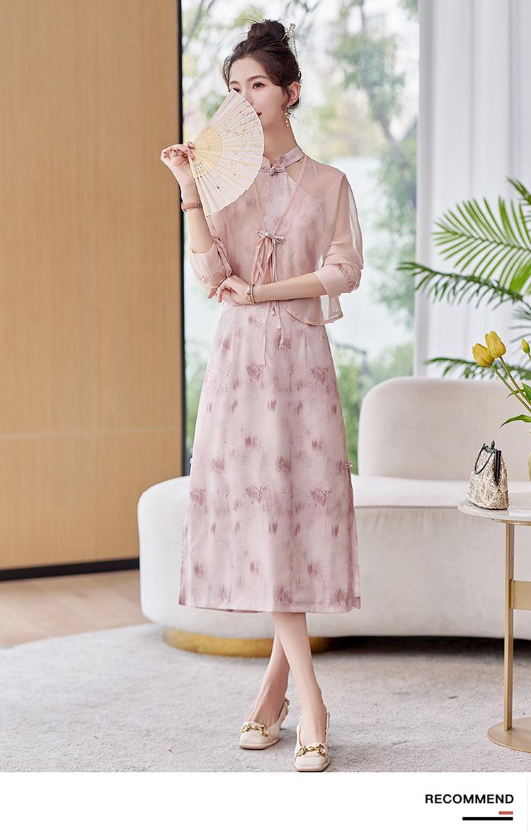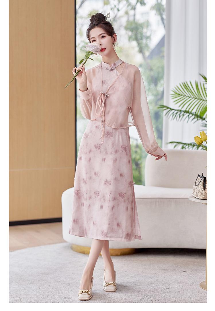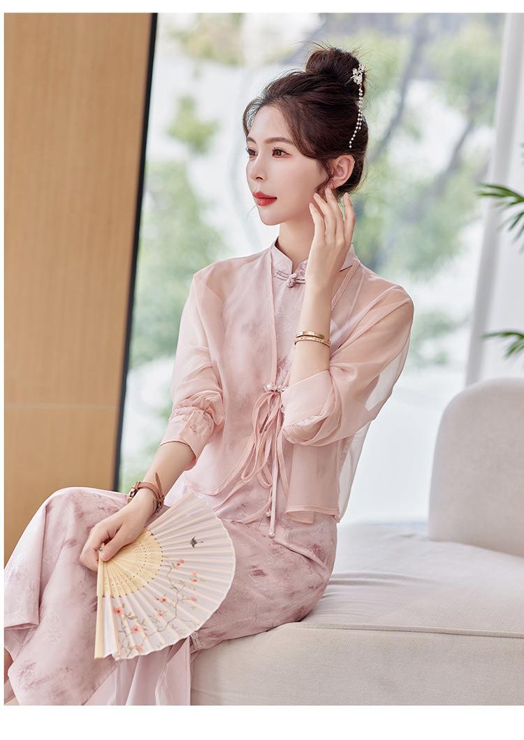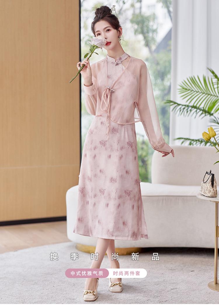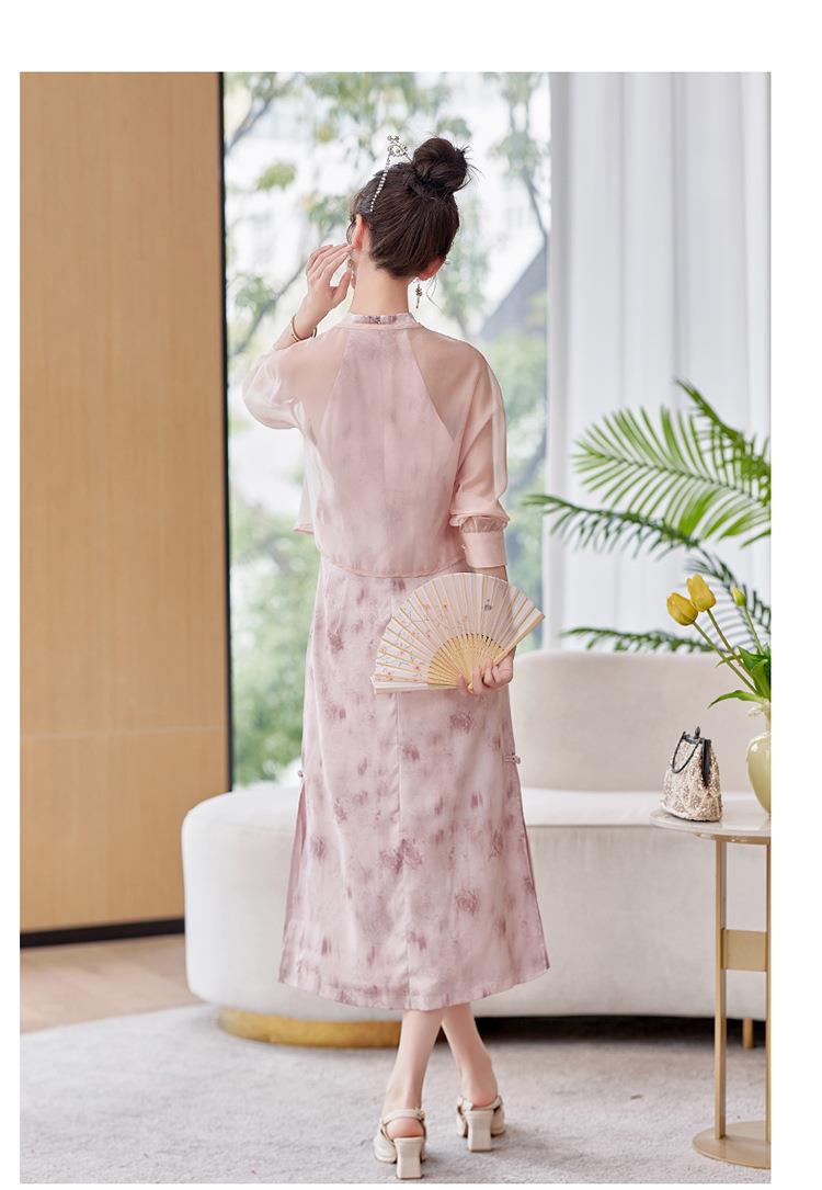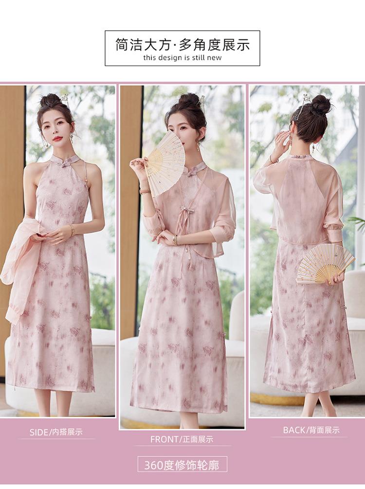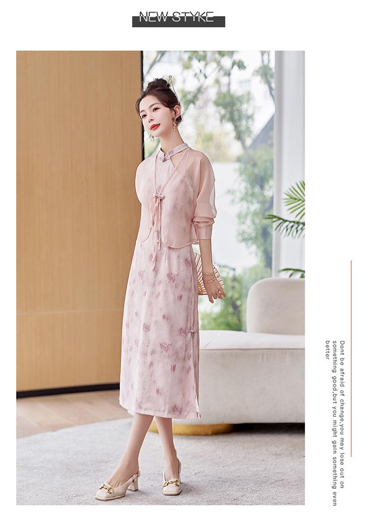 【预订·最迟6天发货】国风复古盘扣饰短款外套吊带裙套装女2024春季新款印花套裙两件套