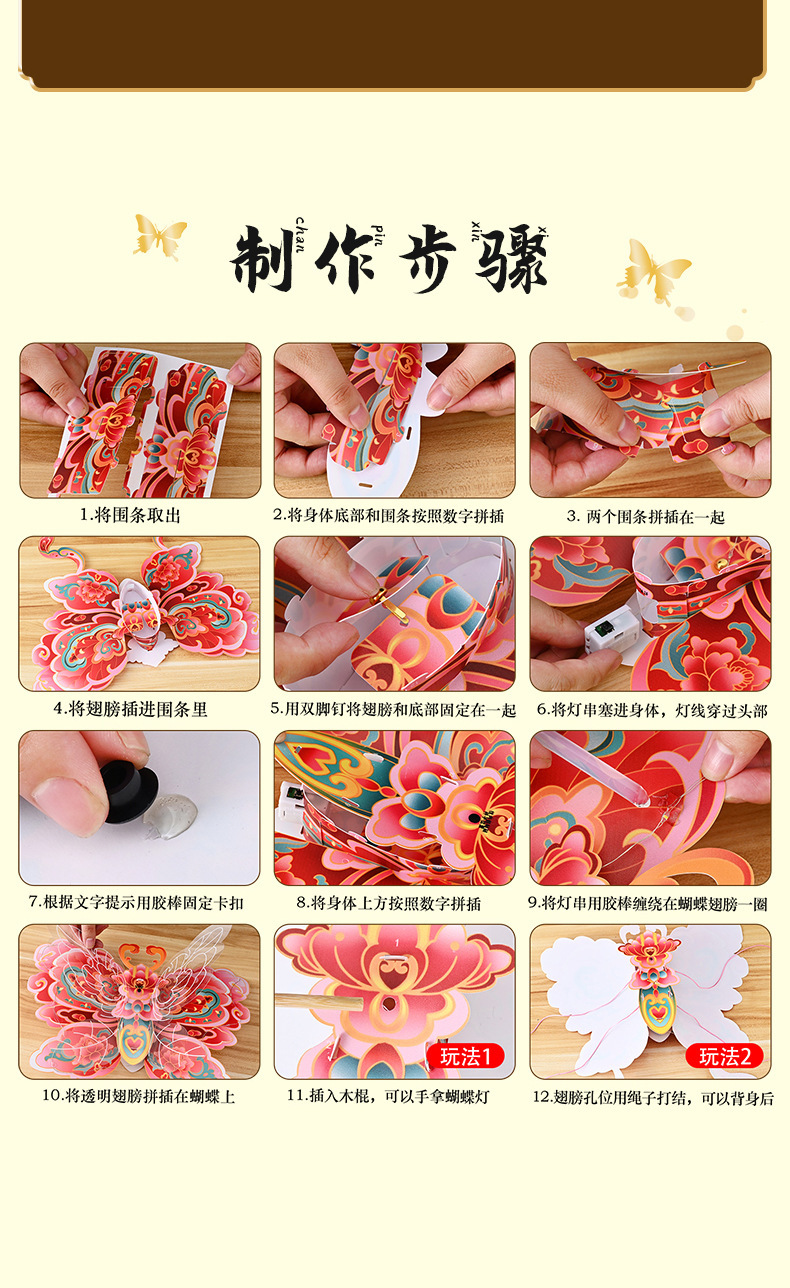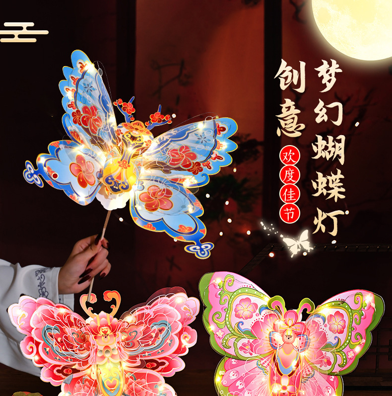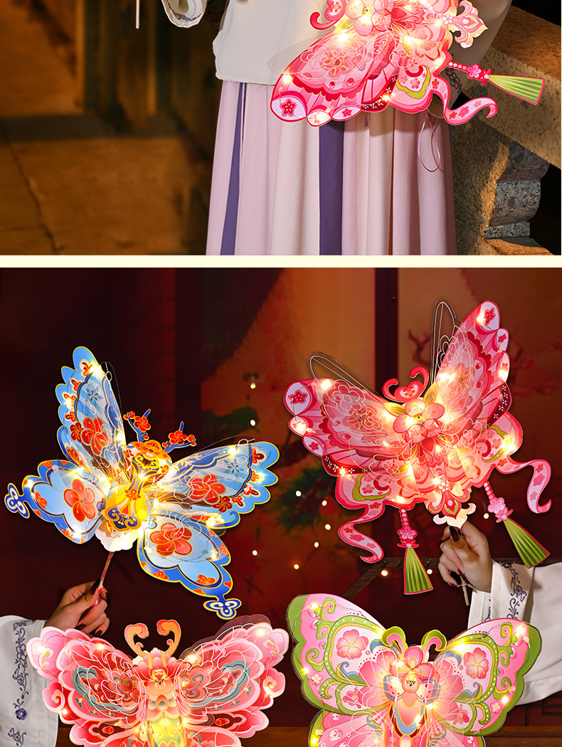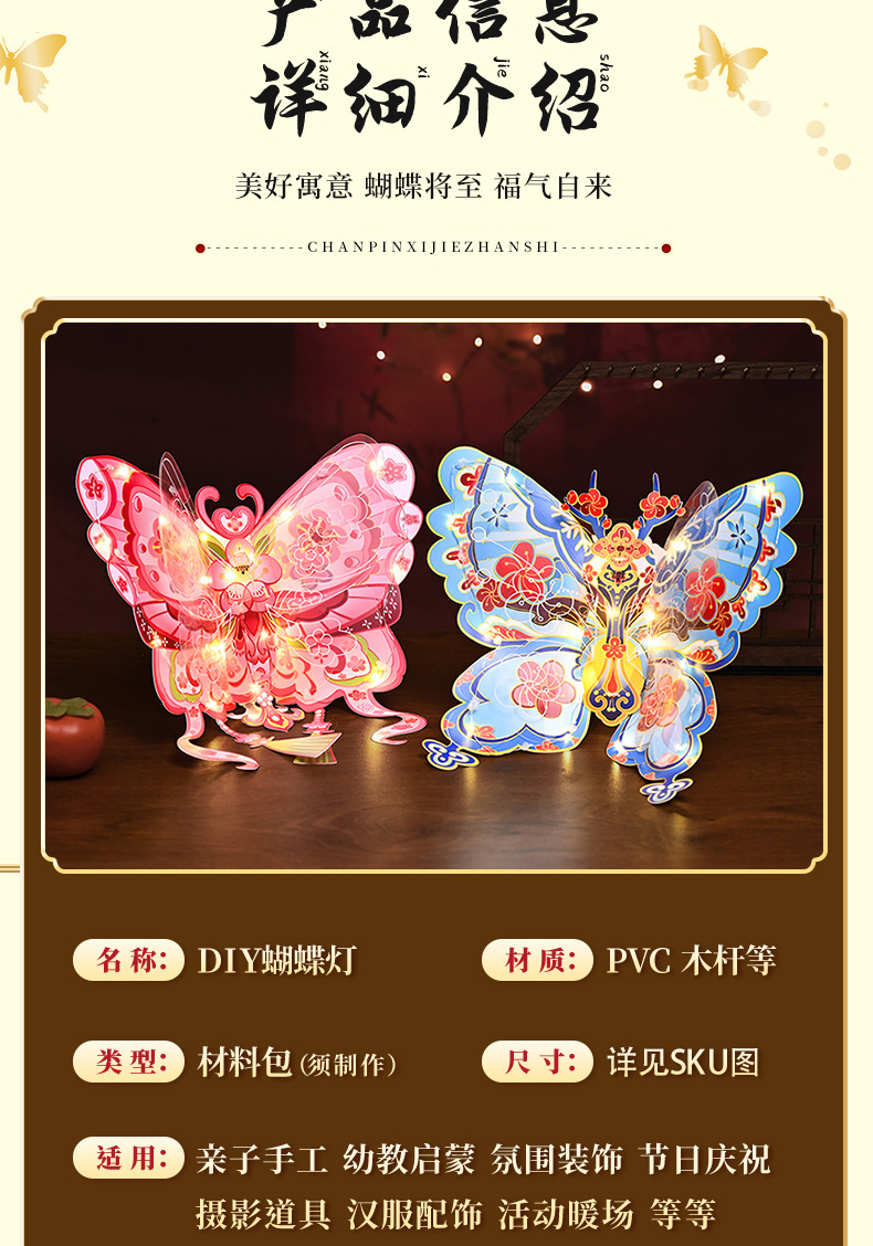 【原创设计灵动造型❗️佳节将至蝴蝶送福】国潮春节灯笼pvc灯笼蝴蝶花灯手工diy儿童制作材料包蝴蝶灯笼新年。jc