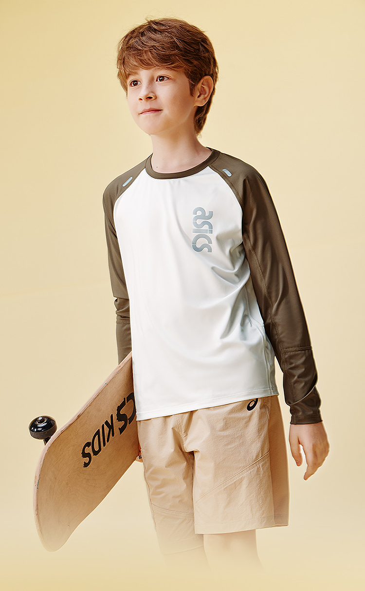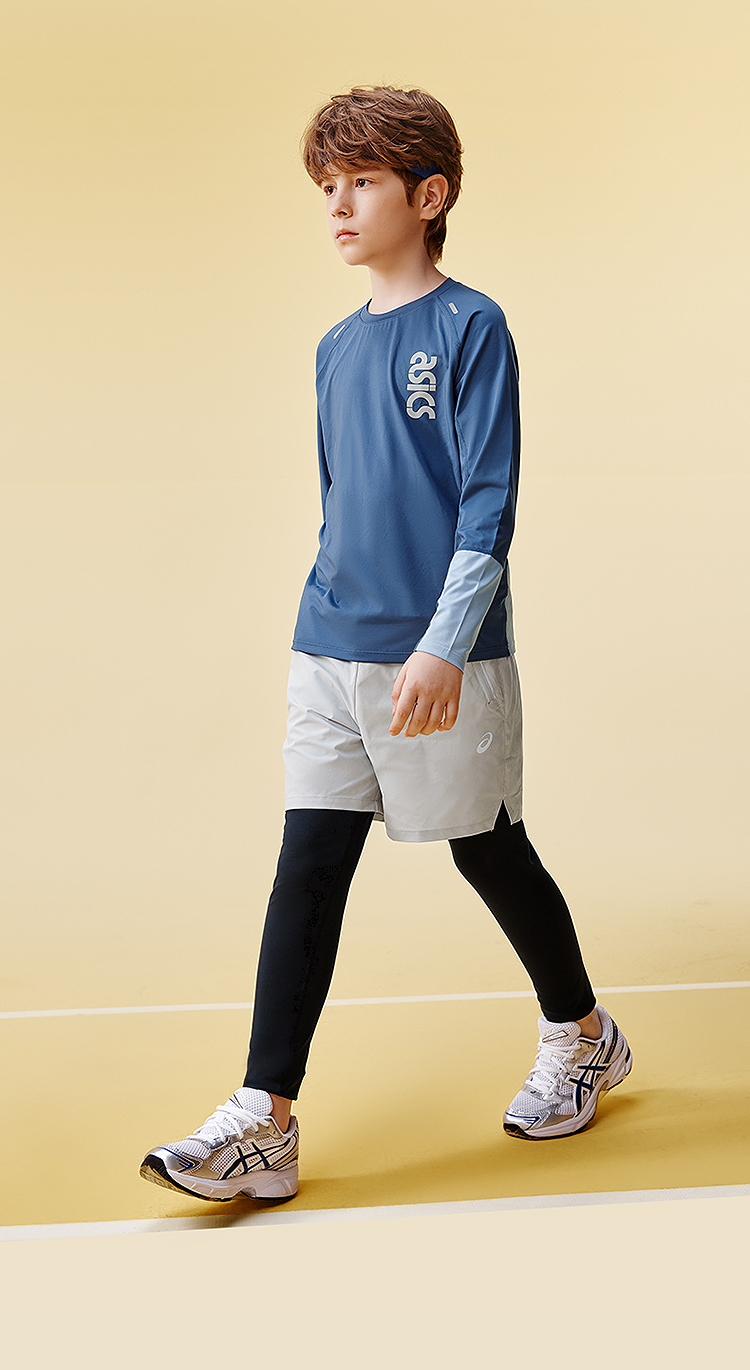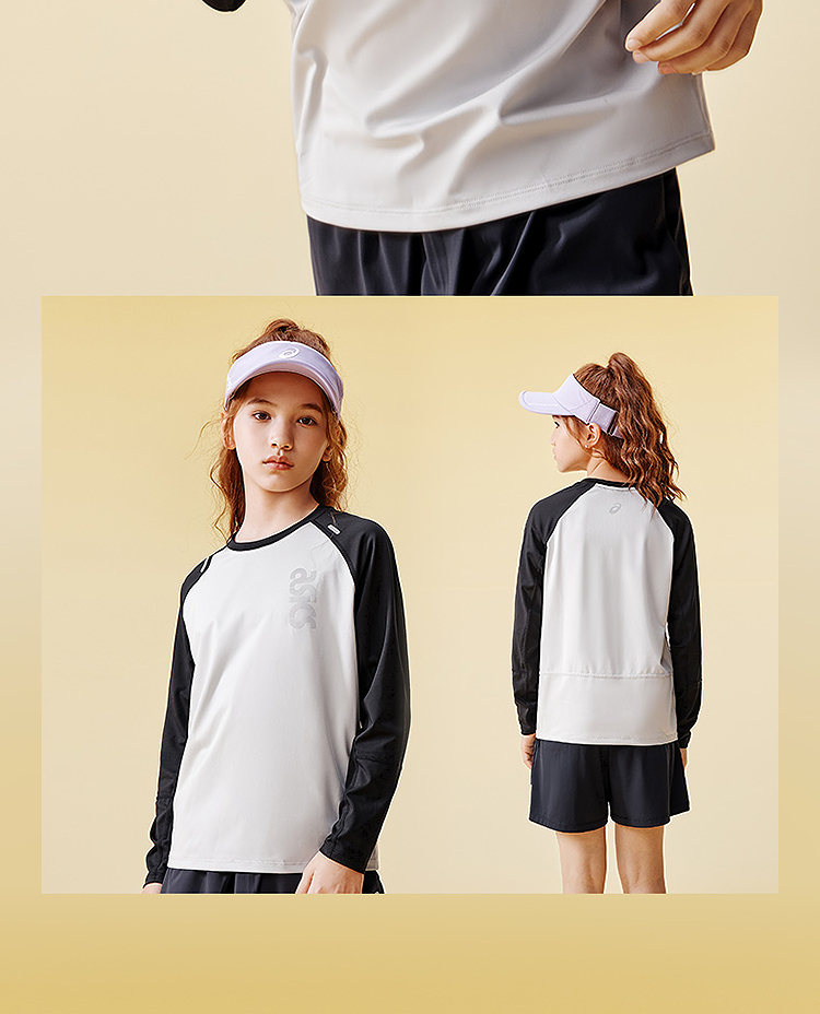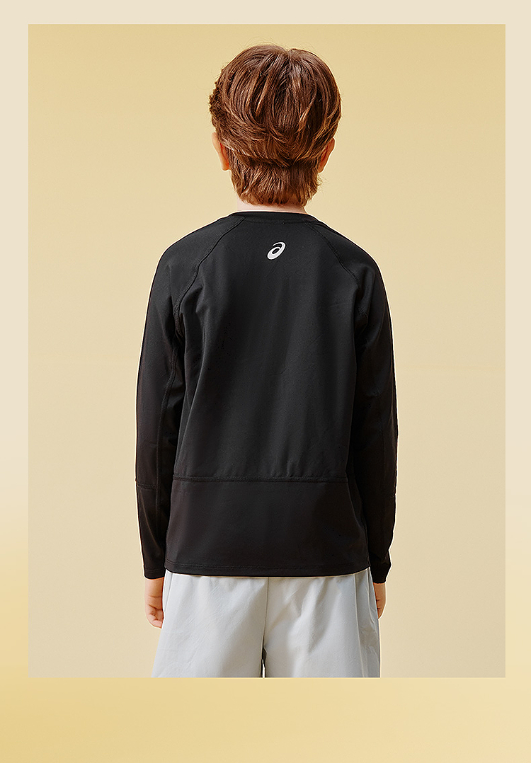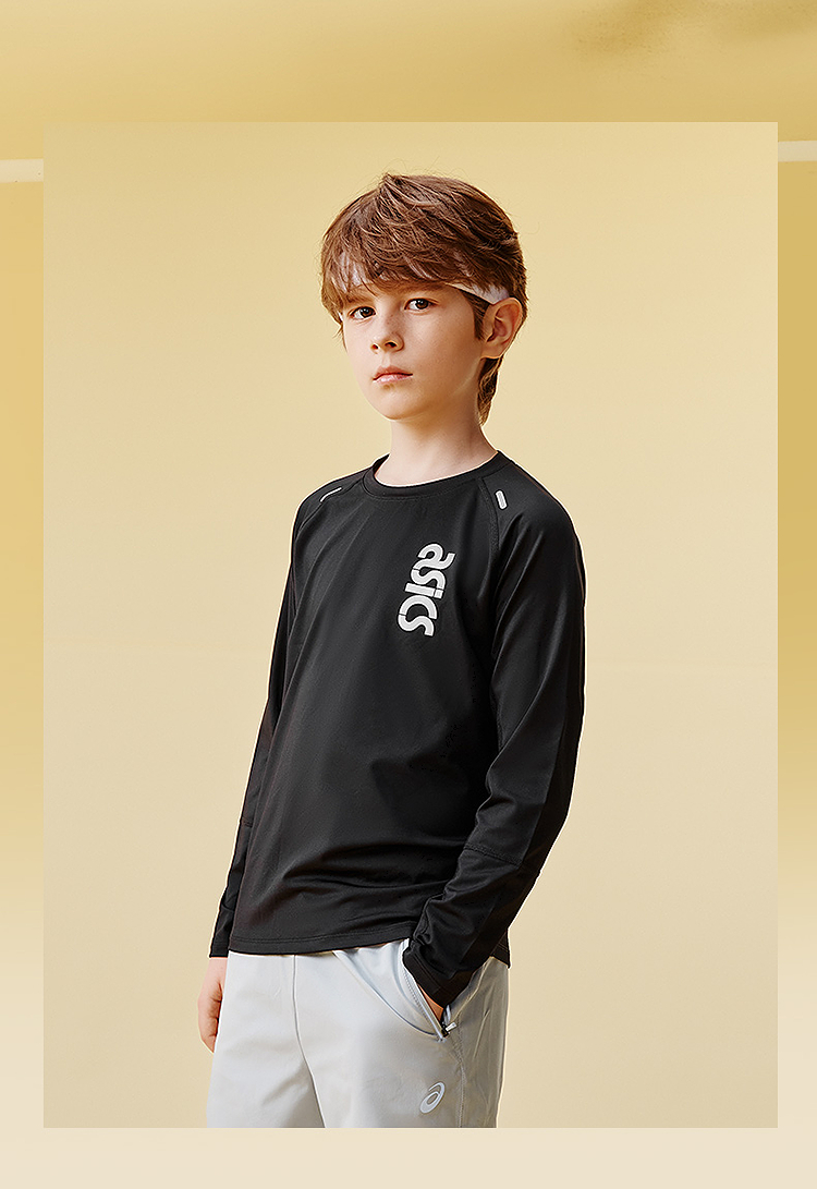 ASICS/亚瑟士童装25年秋季弹力飓风秒干衣吸湿速干拼色长袖T恤