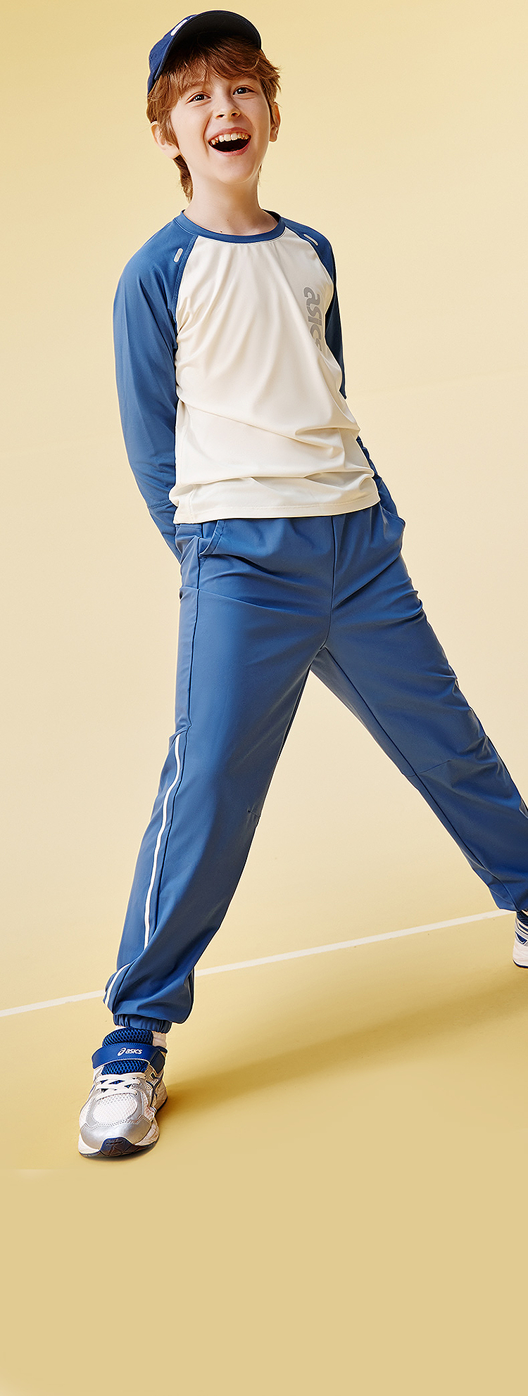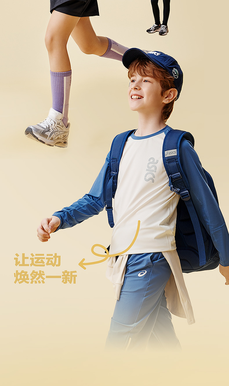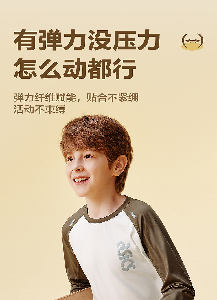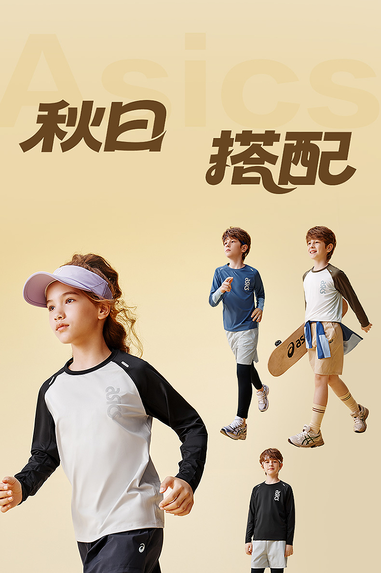 ASICS/亚瑟士童装25年秋季弹力飓风秒干衣吸湿速干拼色长袖T恤
