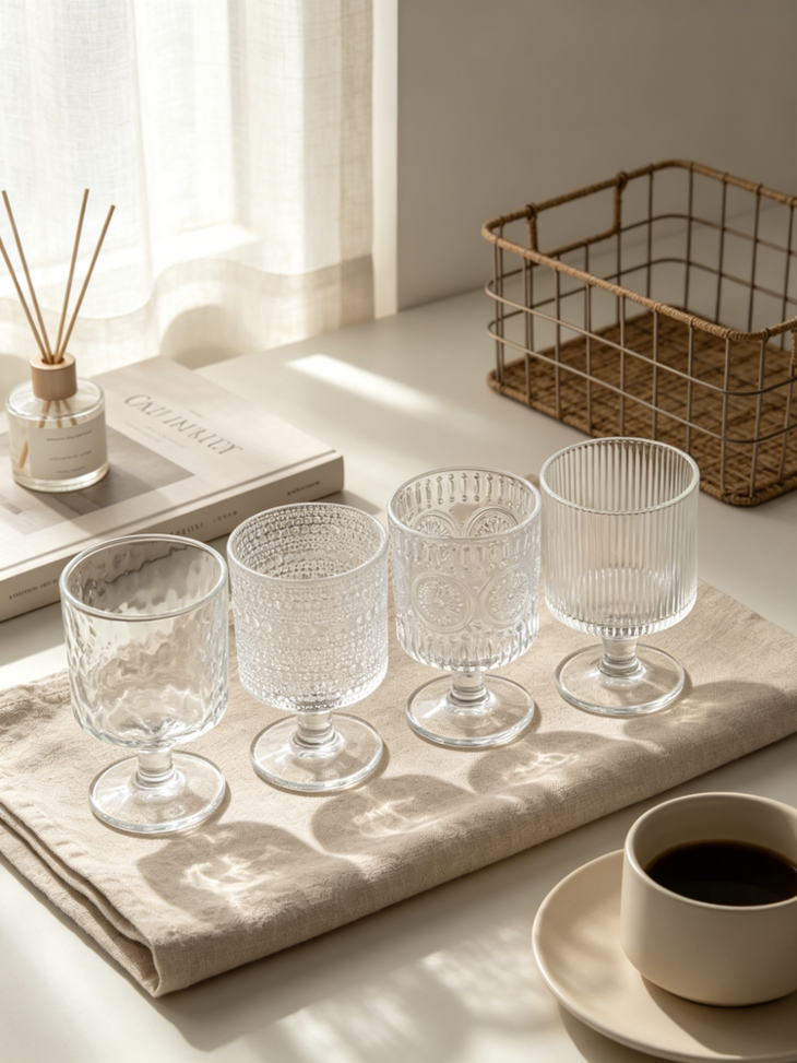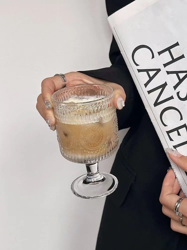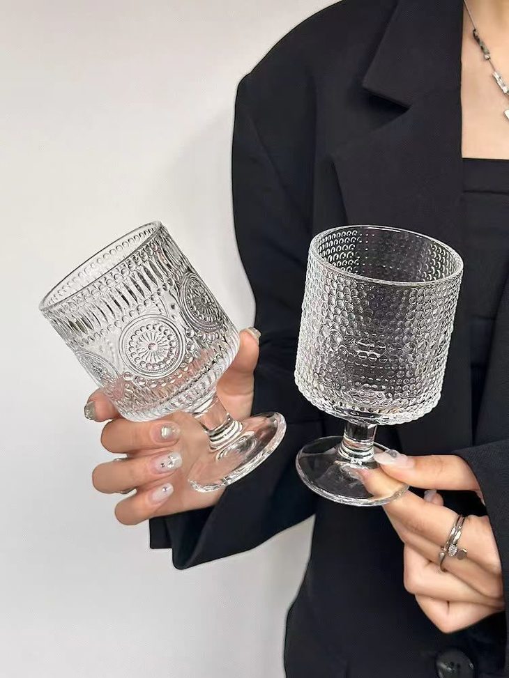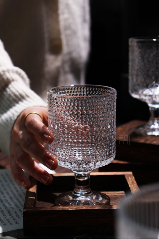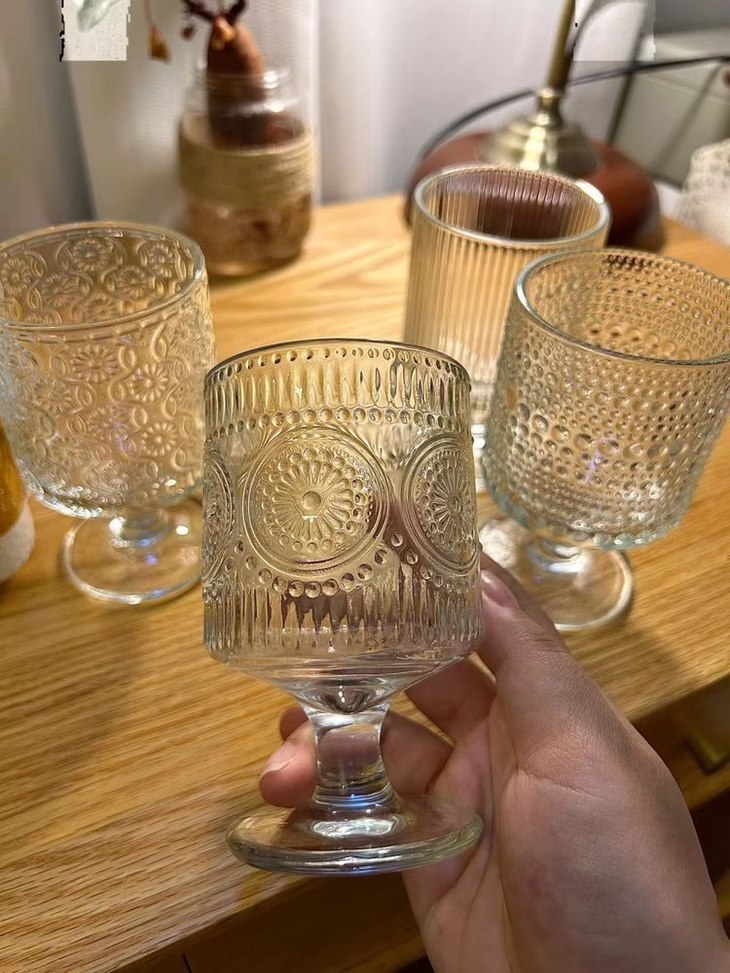 平价的艺术品杯壁厚实、杯身通透 清澈透明,有一种愉悦的清凉感! 配上各种法式风格的浮雕图案 在光下有一种水晶杯的瑰丽剔透之美