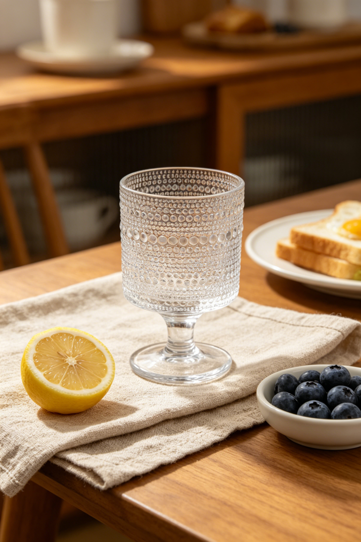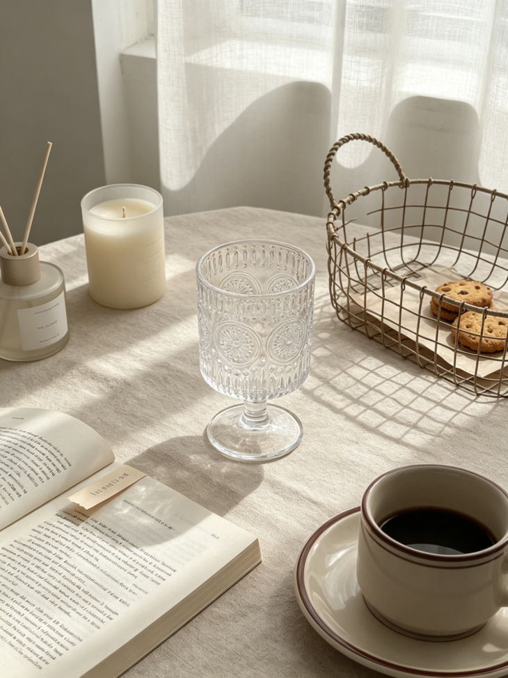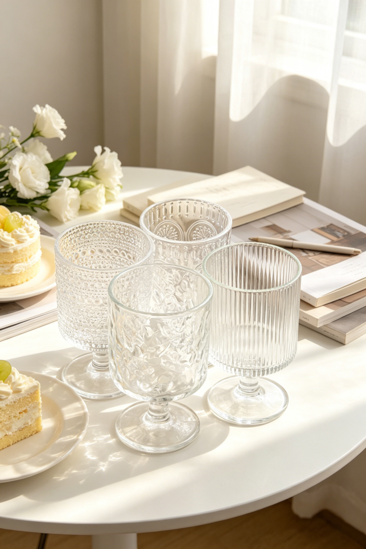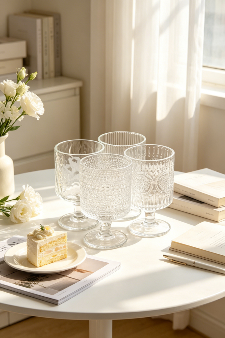 平价的艺术品杯壁厚实、杯身通透 清澈透明,有一种愉悦的清凉感! 配上各种法式风格的浮雕图案 在光下有一种水晶杯的瑰丽剔透之美