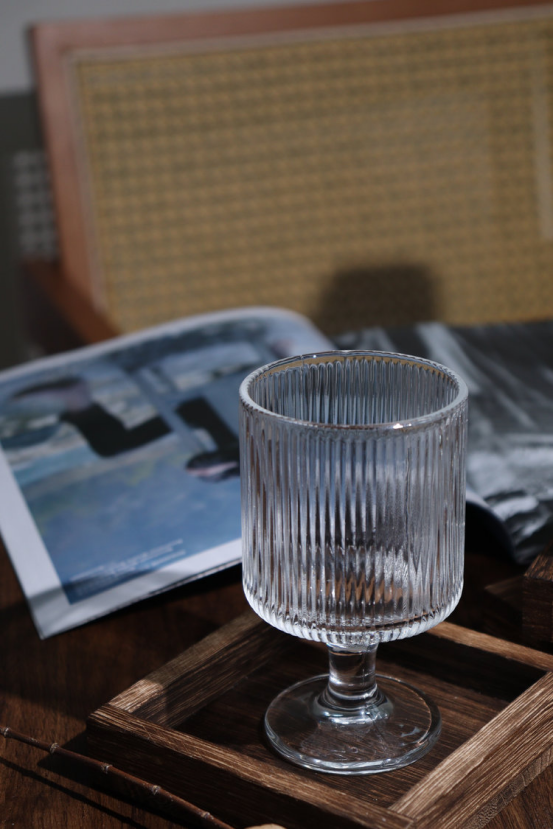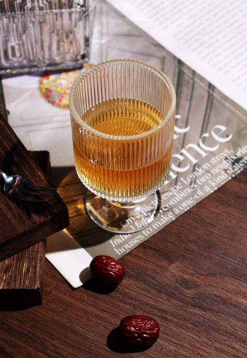 🍷复古玻璃杯 🟡通透玻璃与复古纹路的完美组合 创意造型,凸显个性,简约不失格调越是简单,杯子越是耐看! 杯身修长,200ml精致容量,饮料小酒都没问题 🍑系单-个杯子就要100+ 4个组合装,团价💰19.9元,竖纹、太阳纹、露珠纹、树皮纹四款花色 每次看到好看的杯子,脚都挪不动