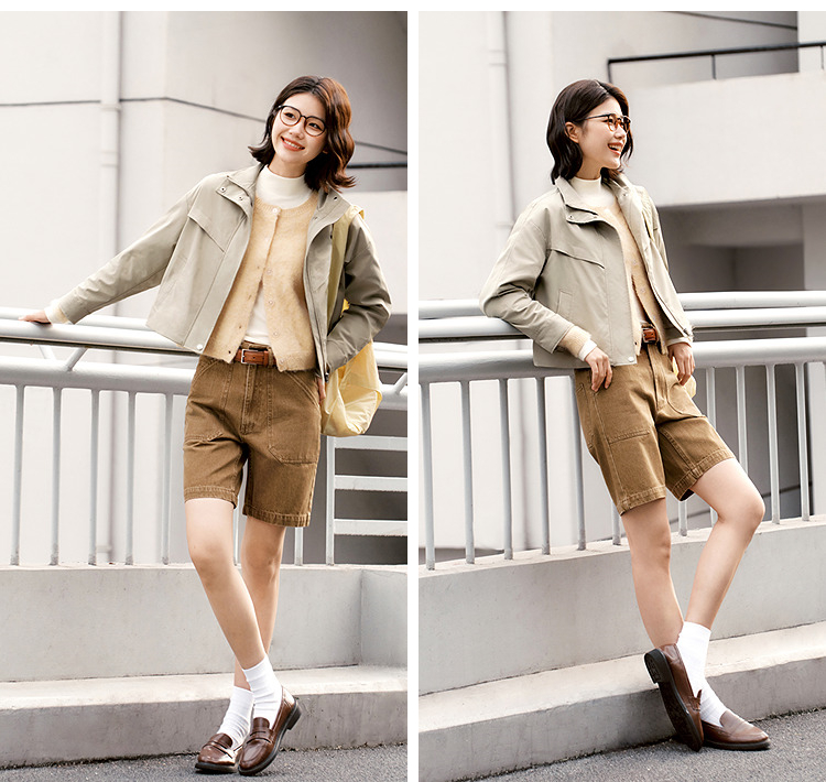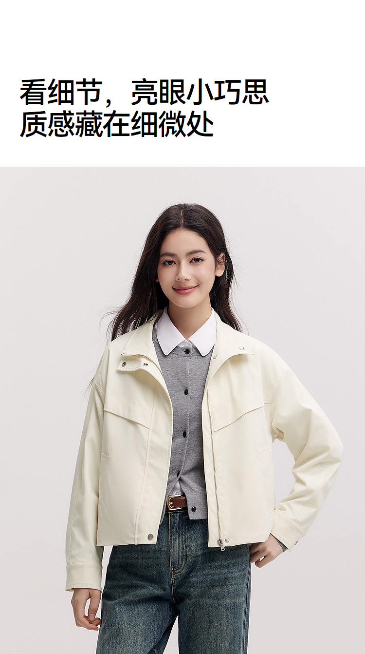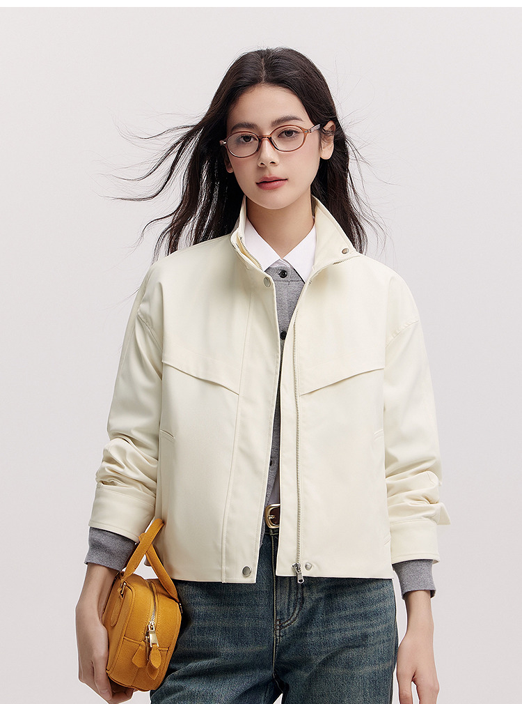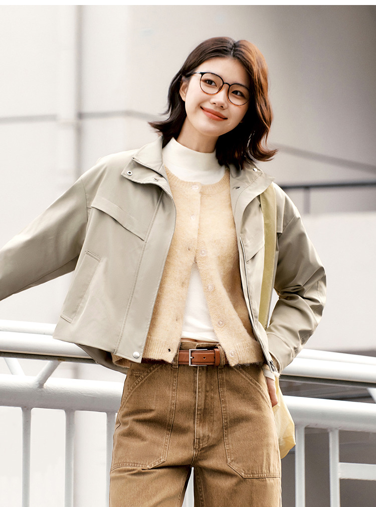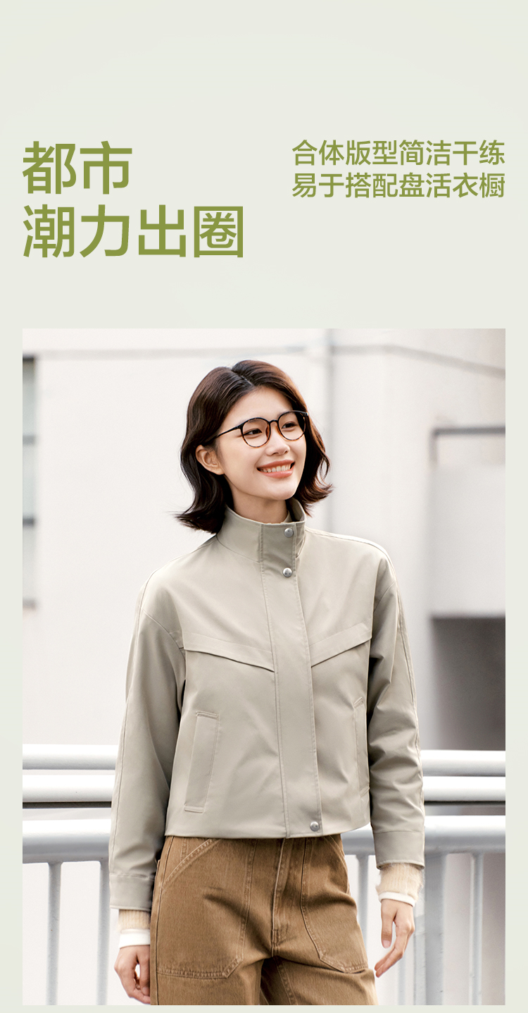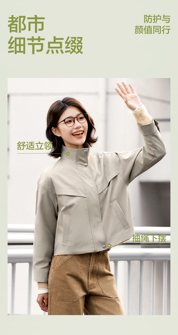 都市护身服|森马外套女春季三防防风纯色立领抽绳上衣简约风夹克