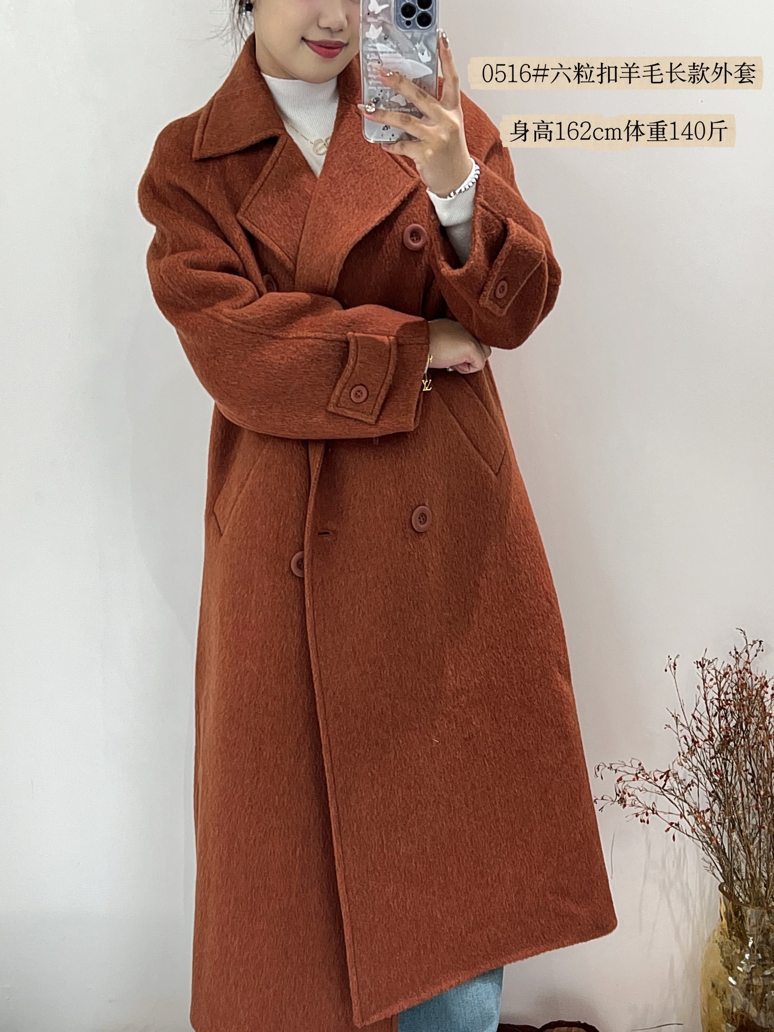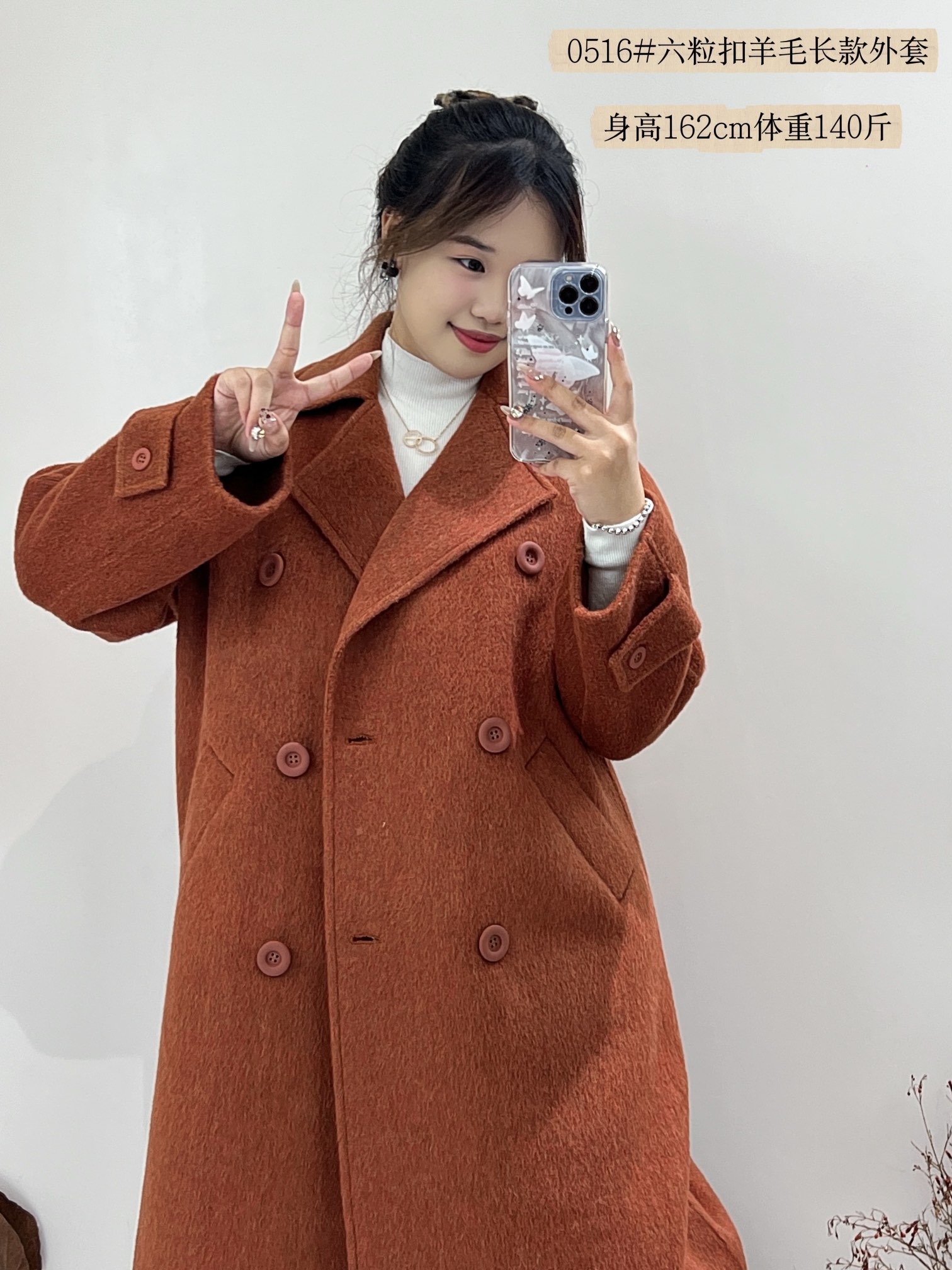 74WT20516#西装领六粒扣大衣