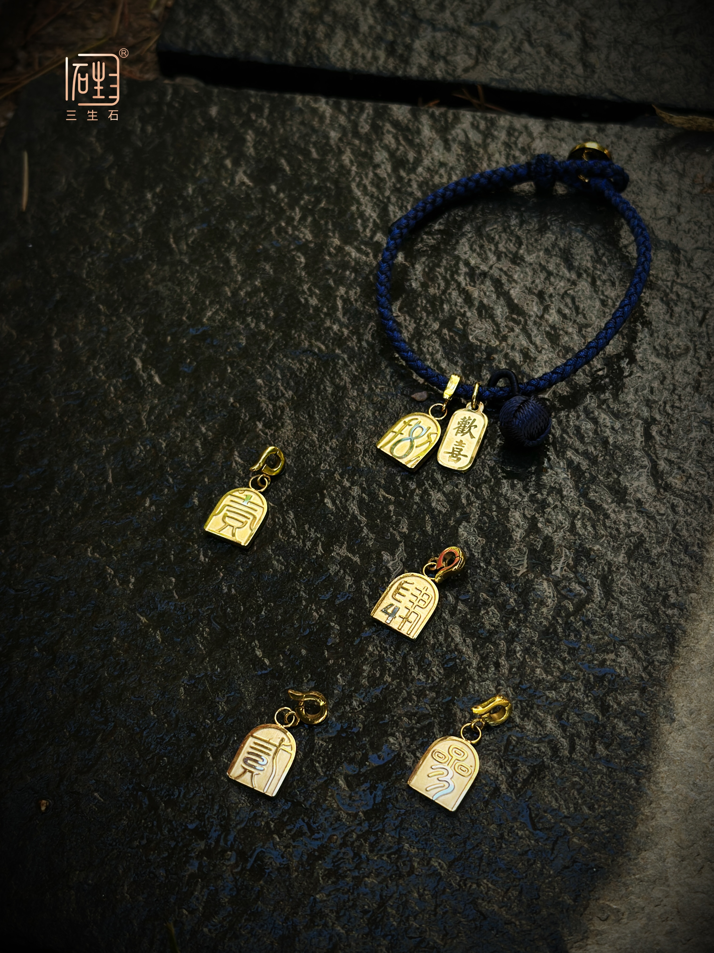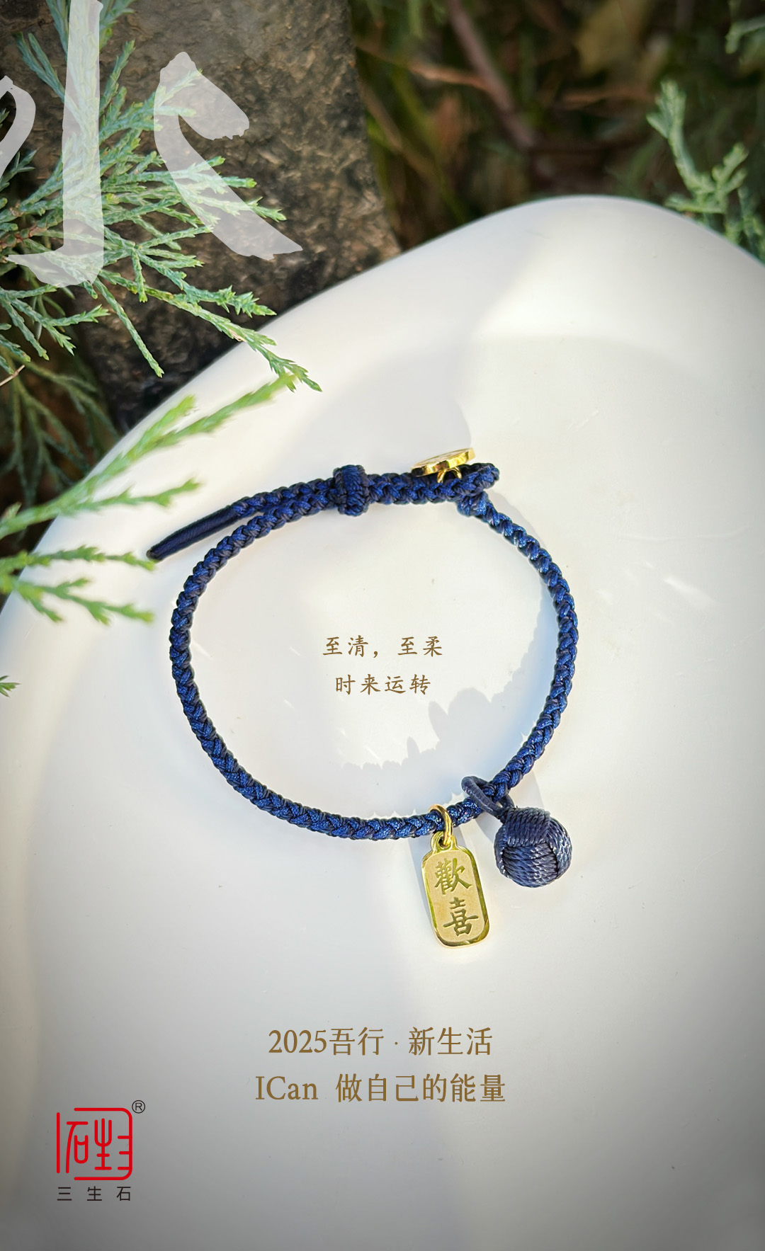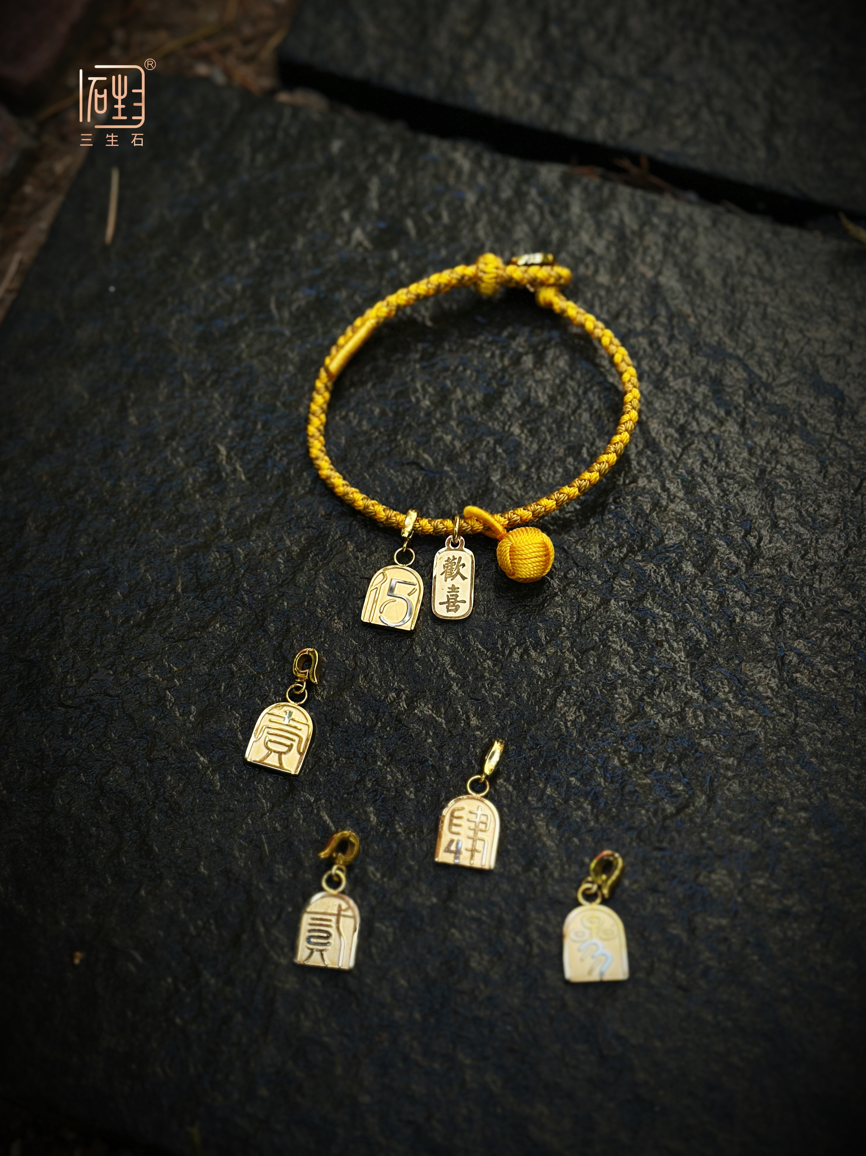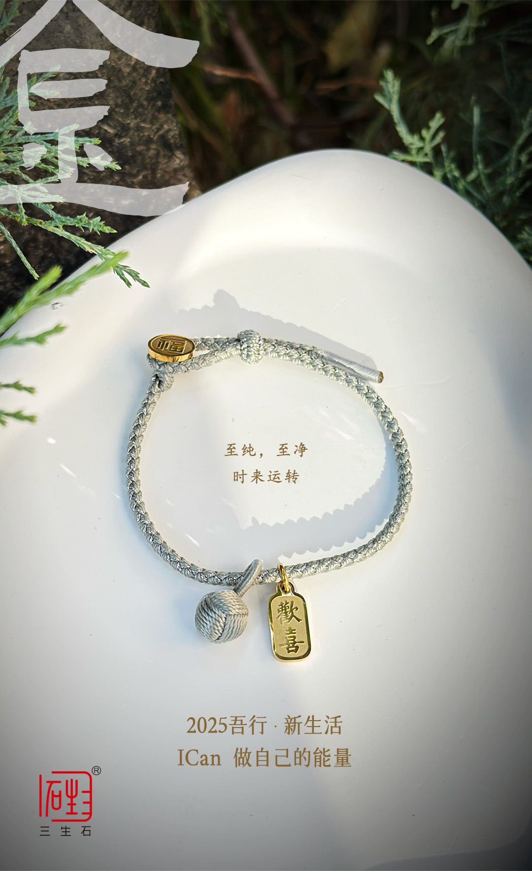 以及三生石特别定制的钛钢镀金“欢喜”牌