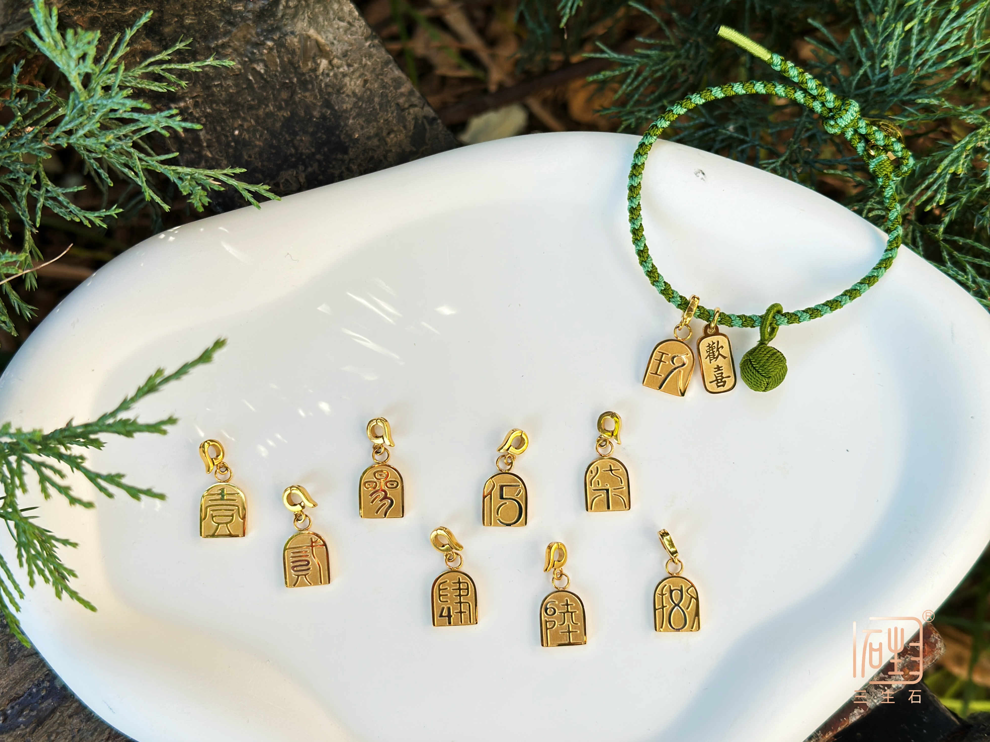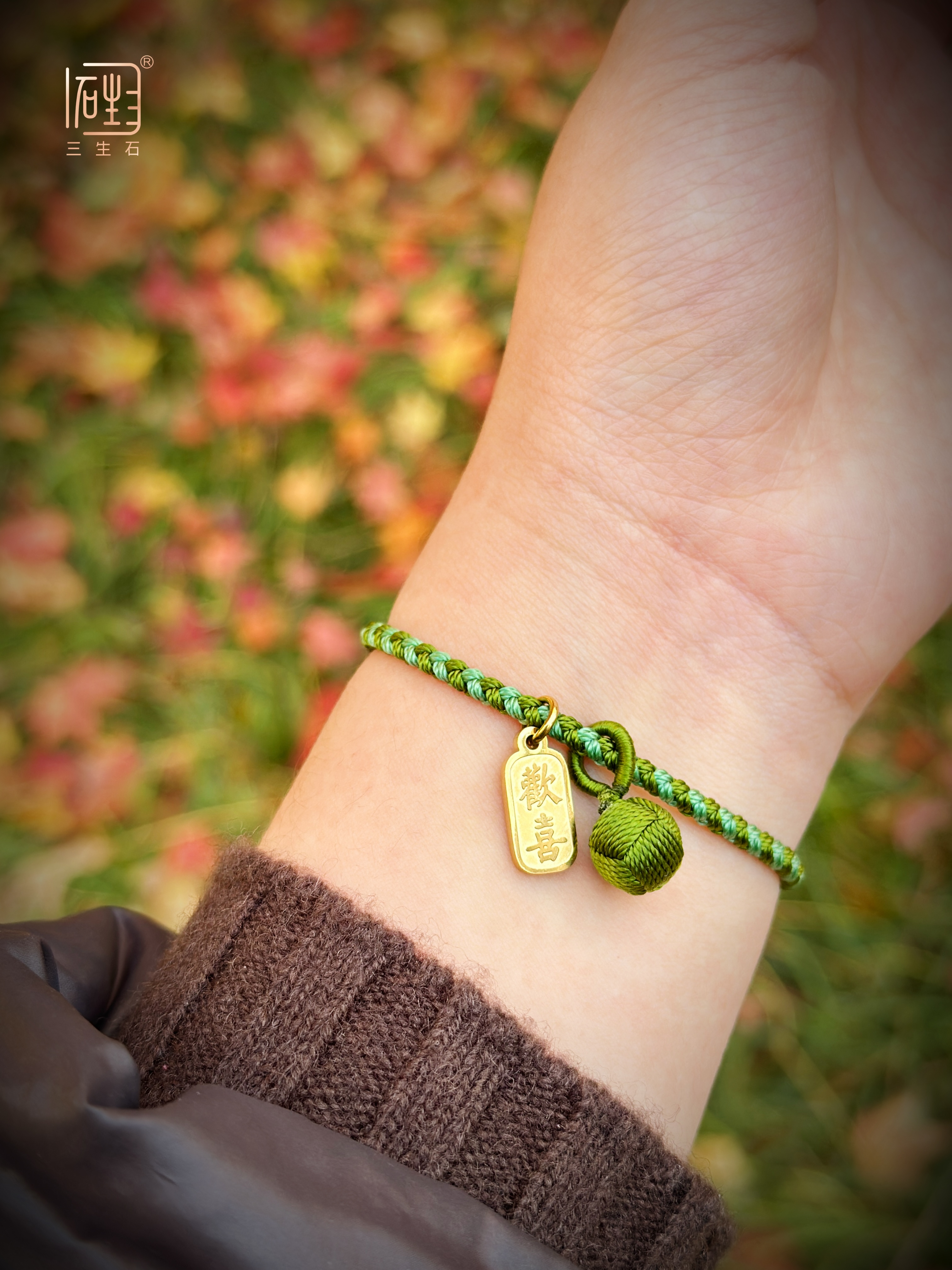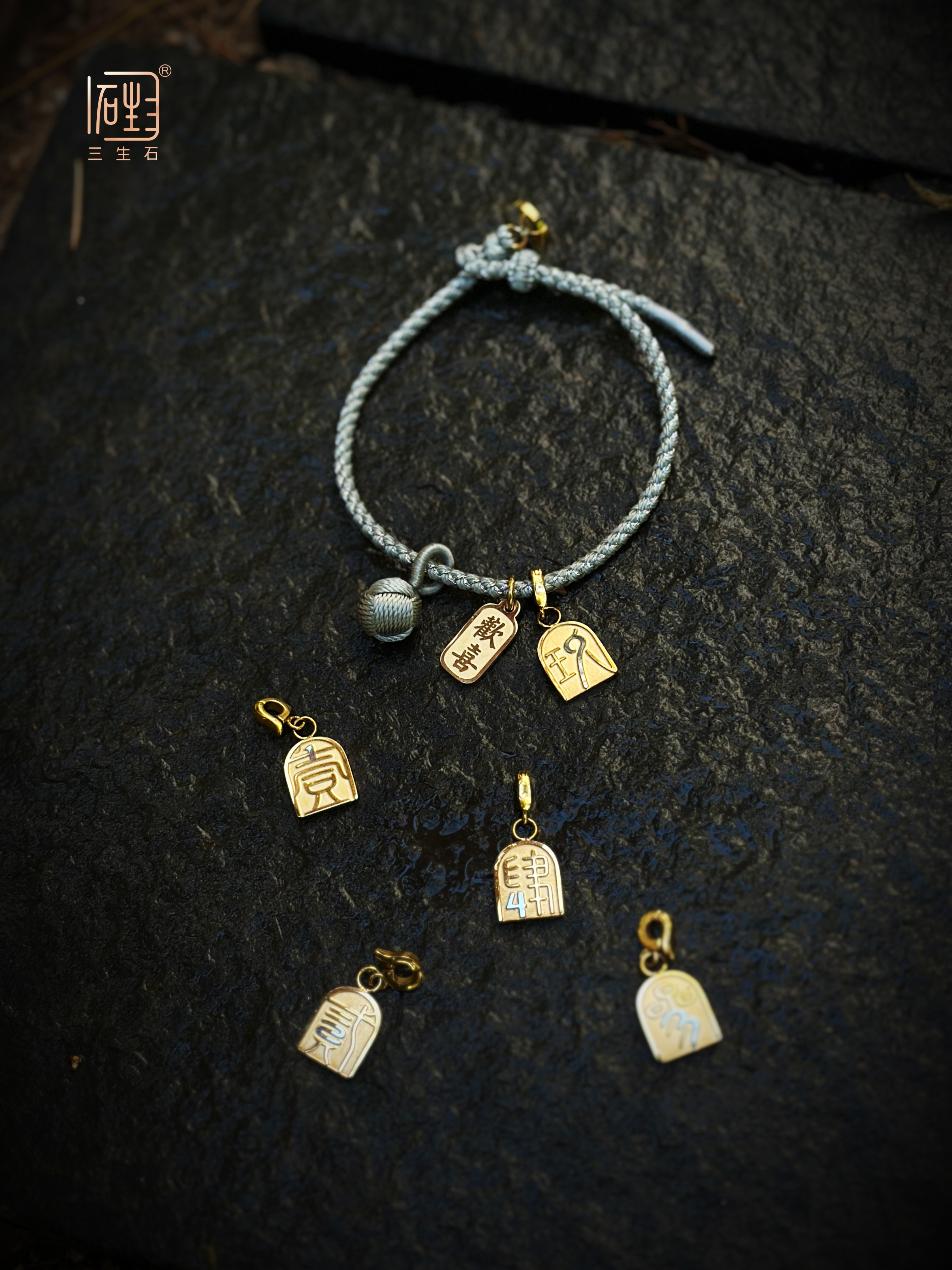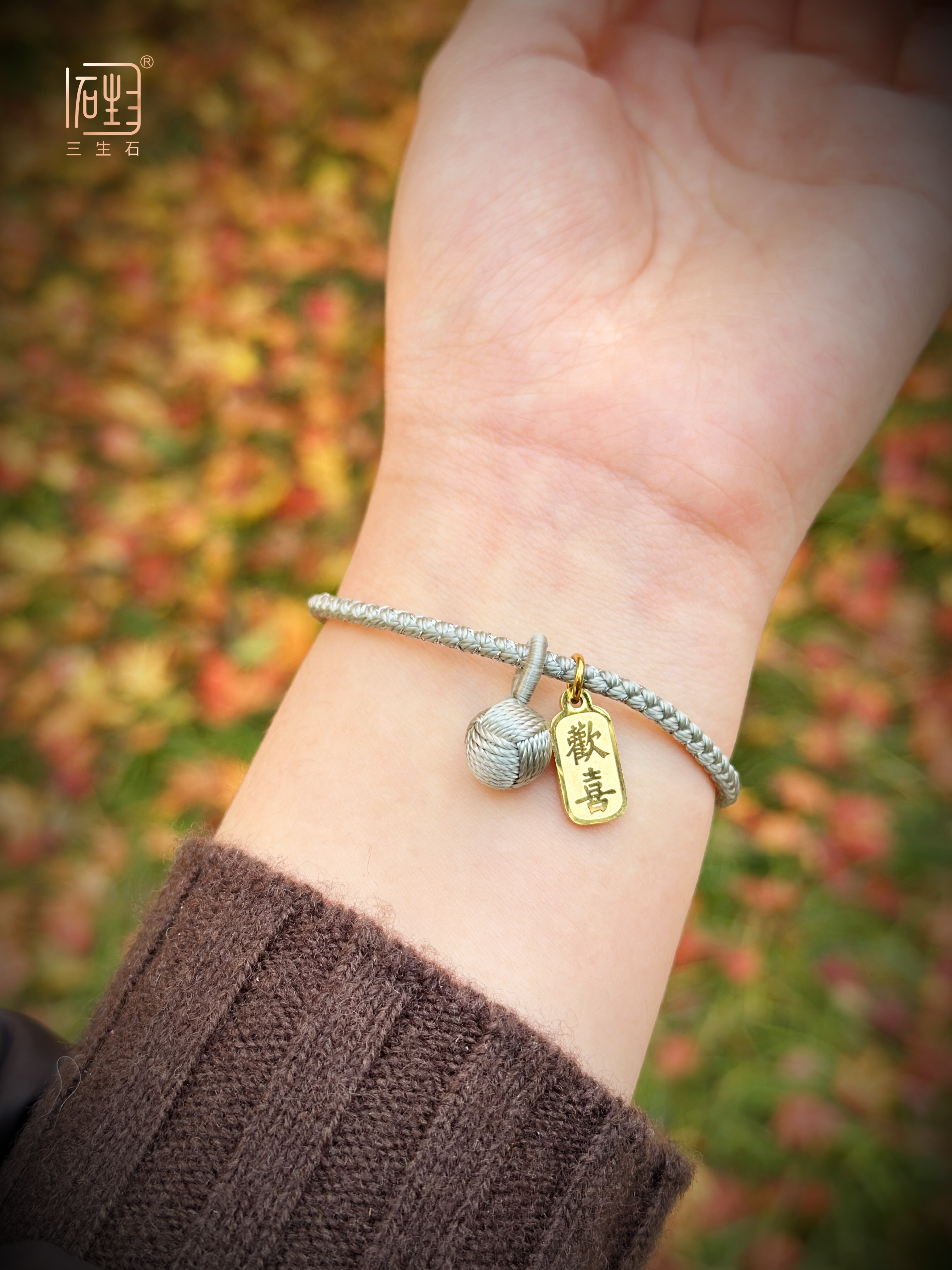 以及三生石特别定制的钛钢镀金“欢喜”牌