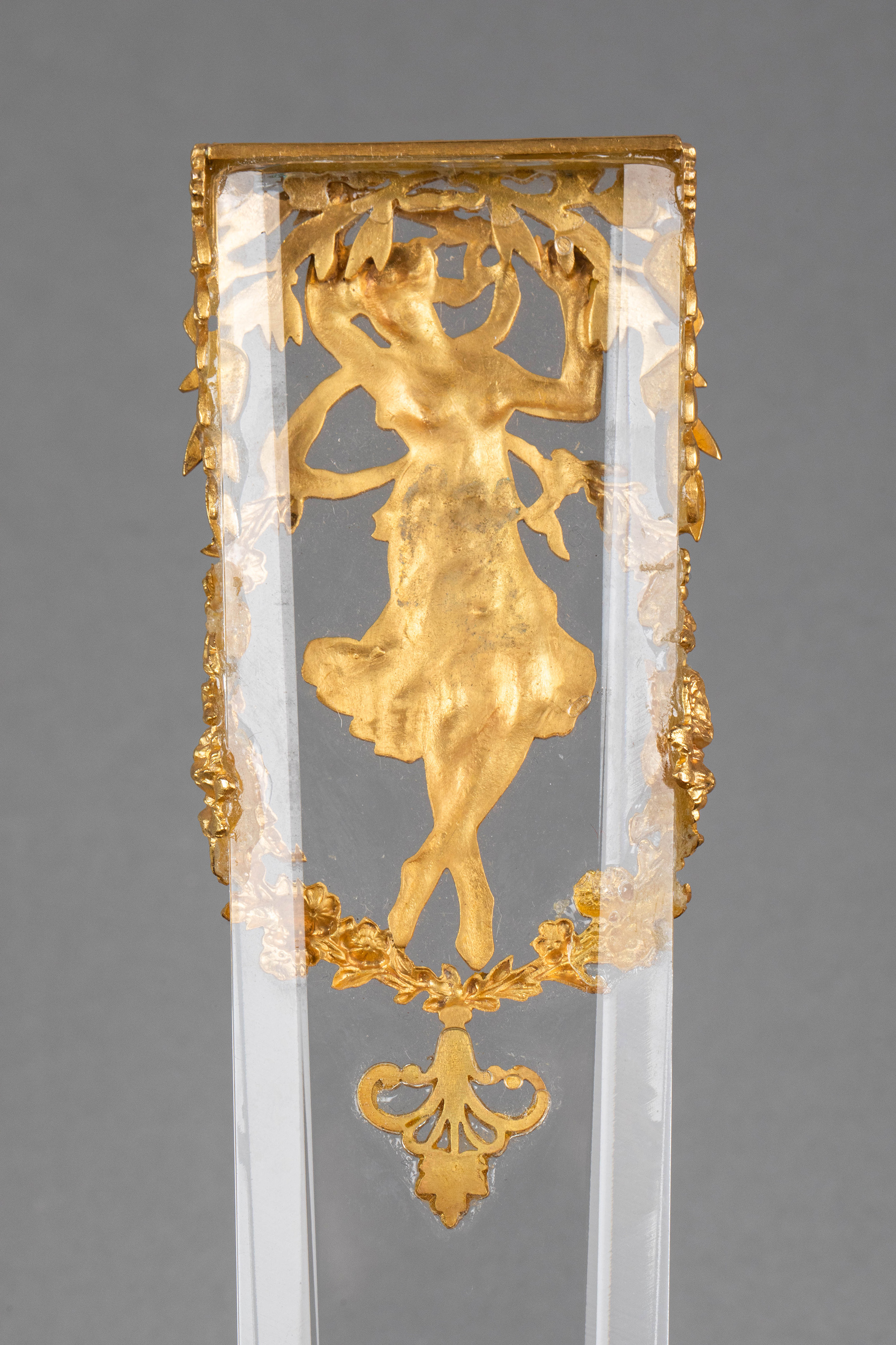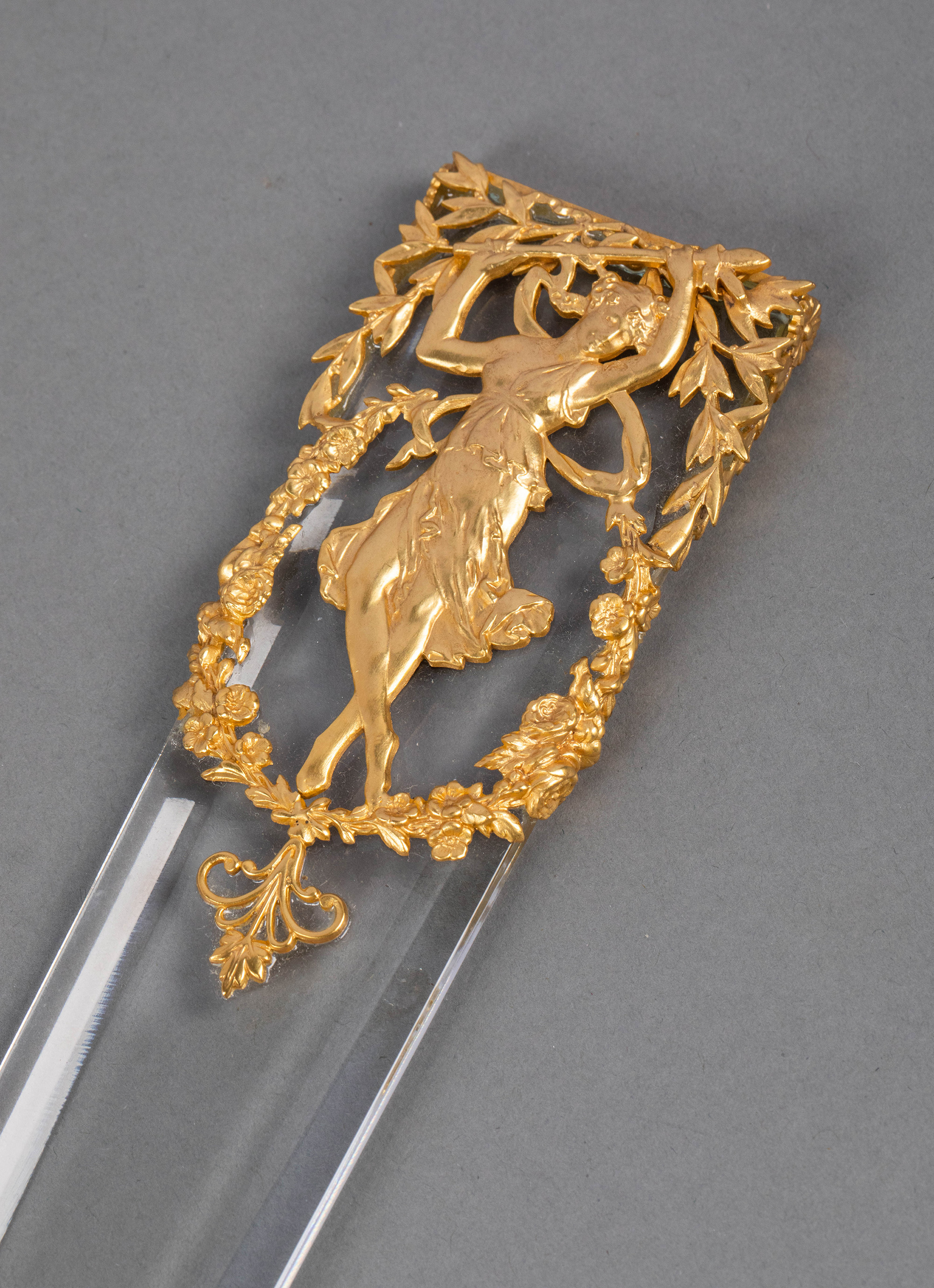 20世纪法国出品新艺术风格古典女神主题铜鎏金精雕装饰水晶翻书杖