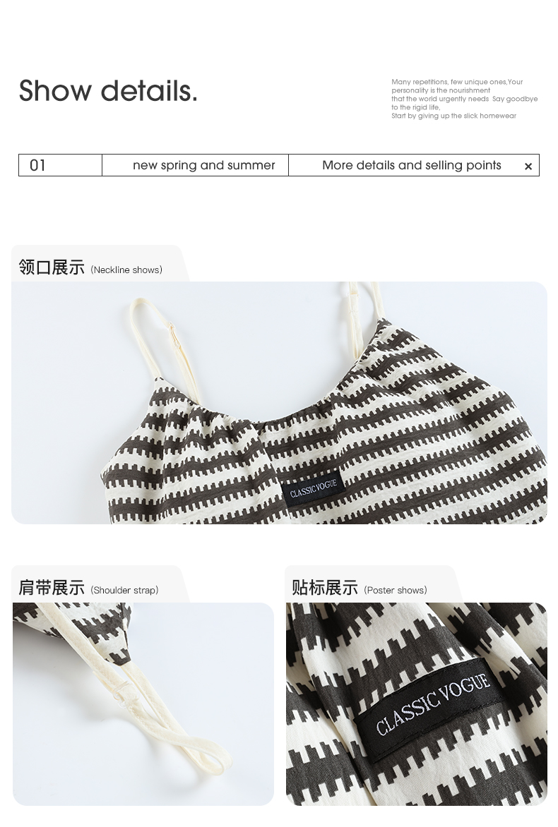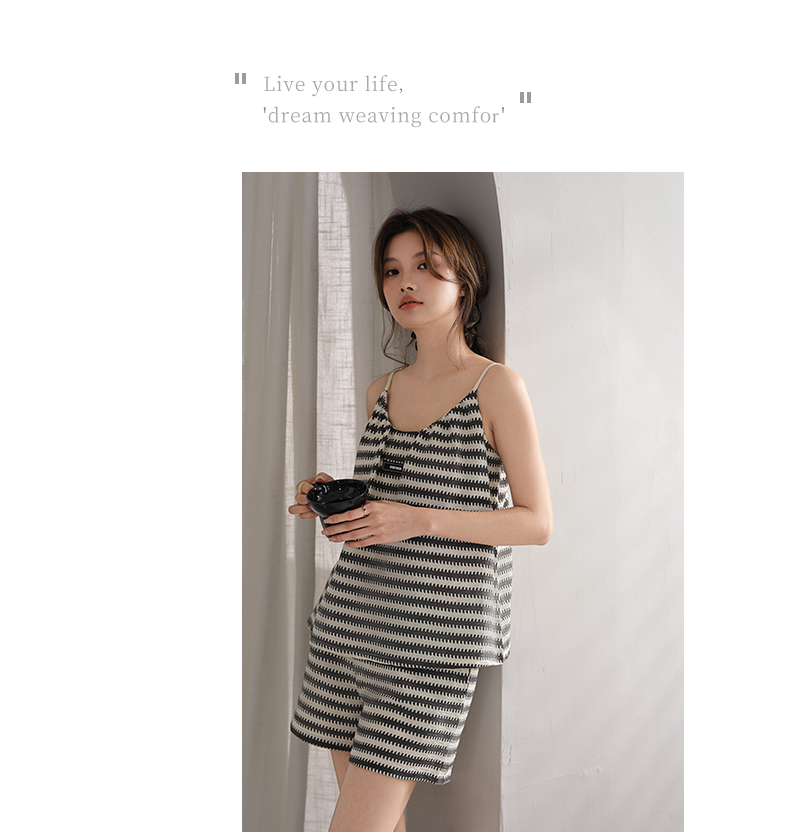 可人儿小众设计师新款泡泡绵夏季吊带女睡衣时尚可外出家居服套装