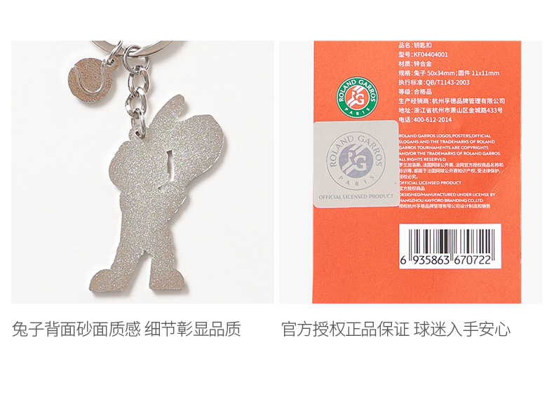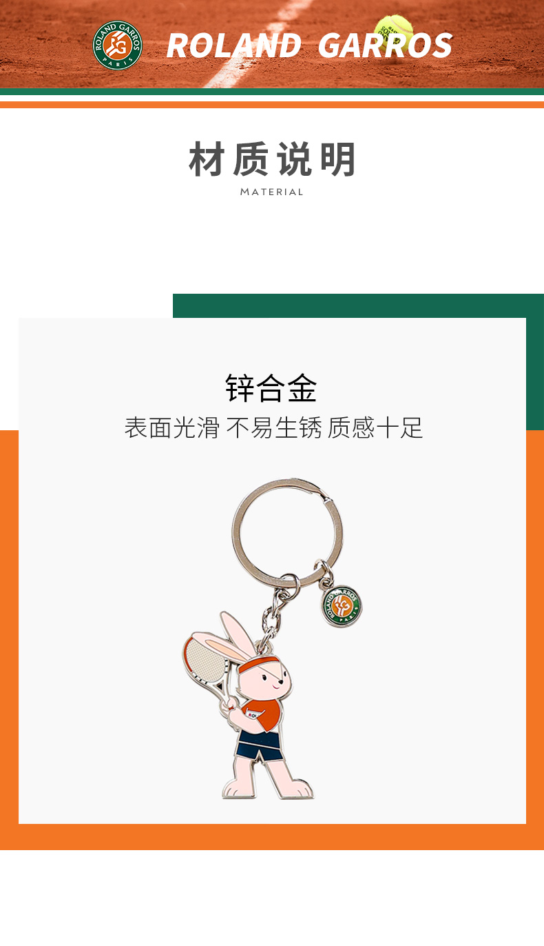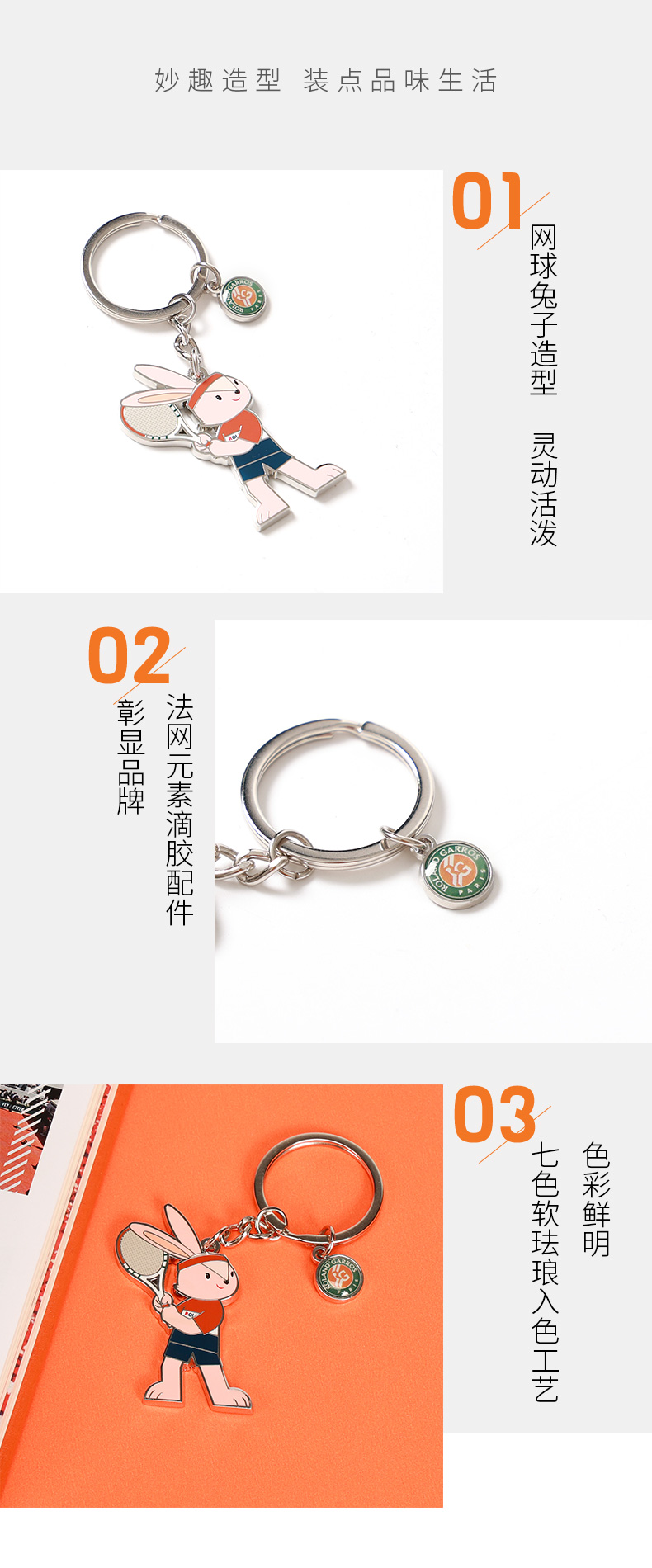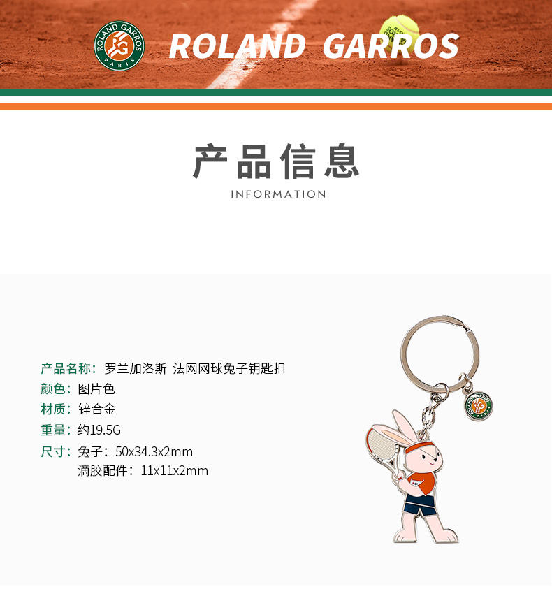 罗兰加洛斯Roland Garros法网网球兔子钥匙扣钥匙圈挂件定制
