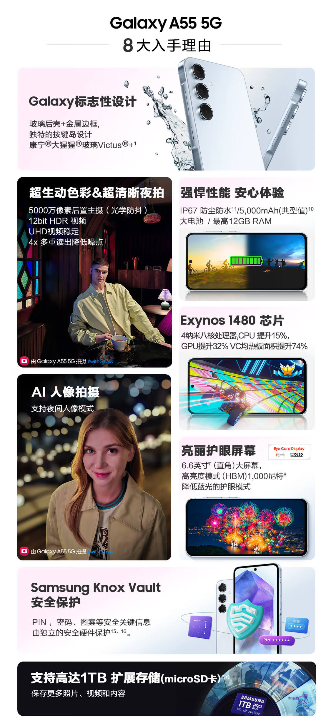 三星(SAMSUNG)Galaxy A55 光学防抖 5000万像素 拍照手机 5000mAh 长续航 5G游戏手机