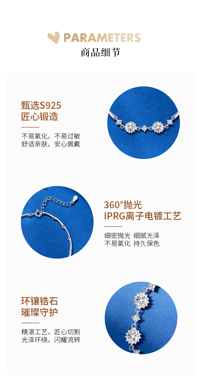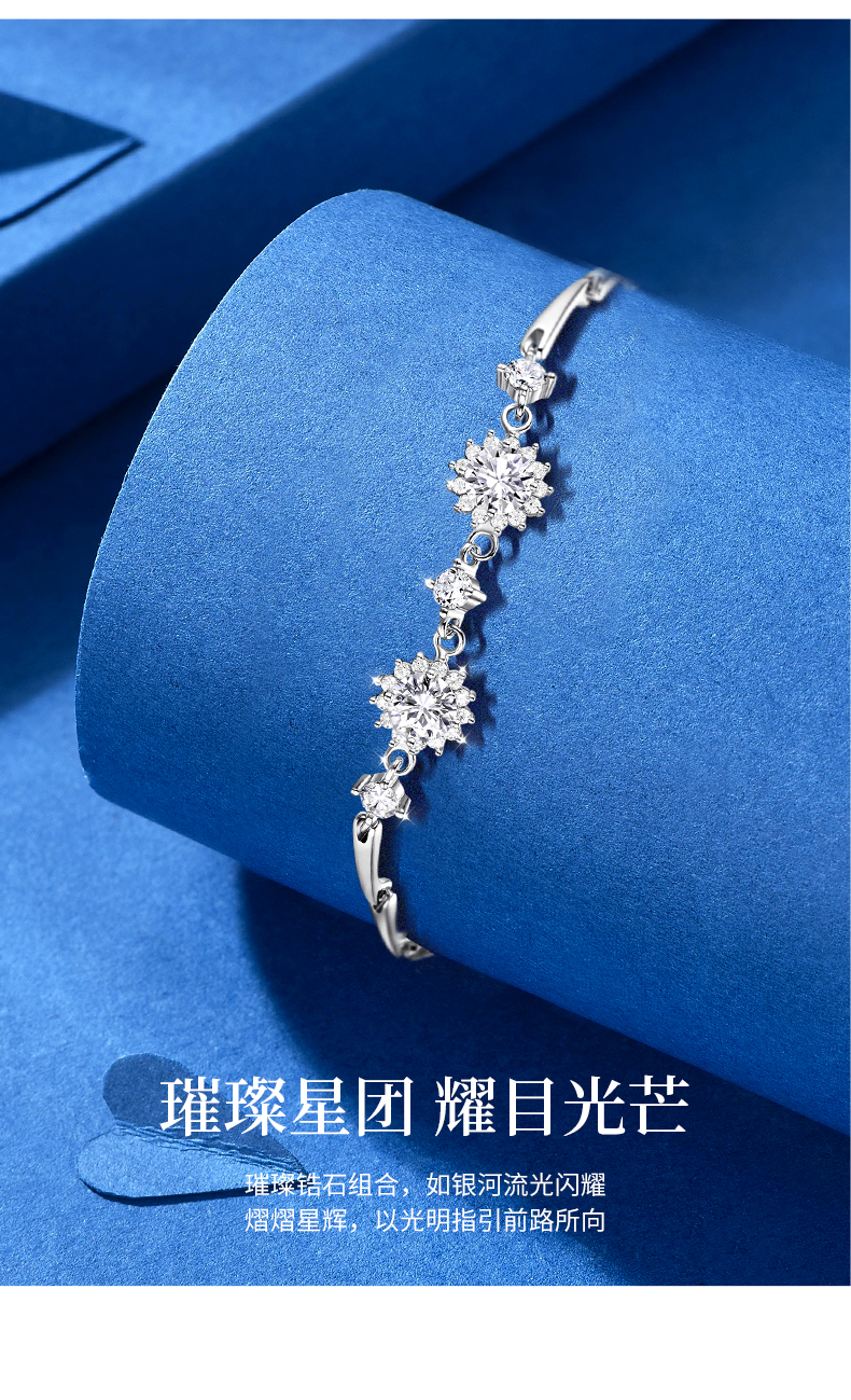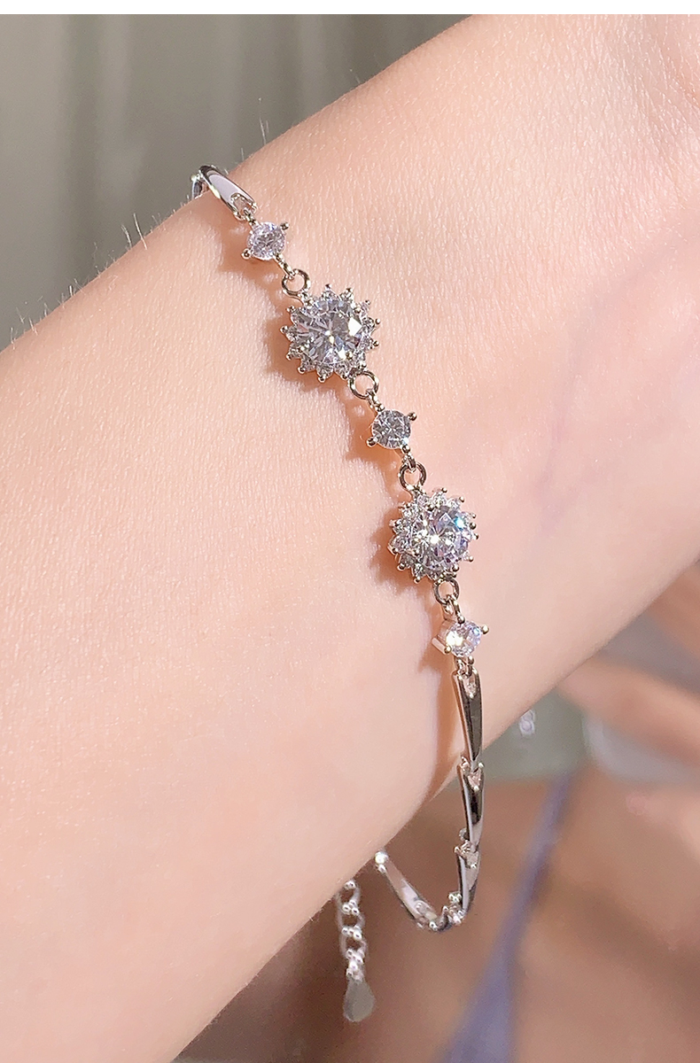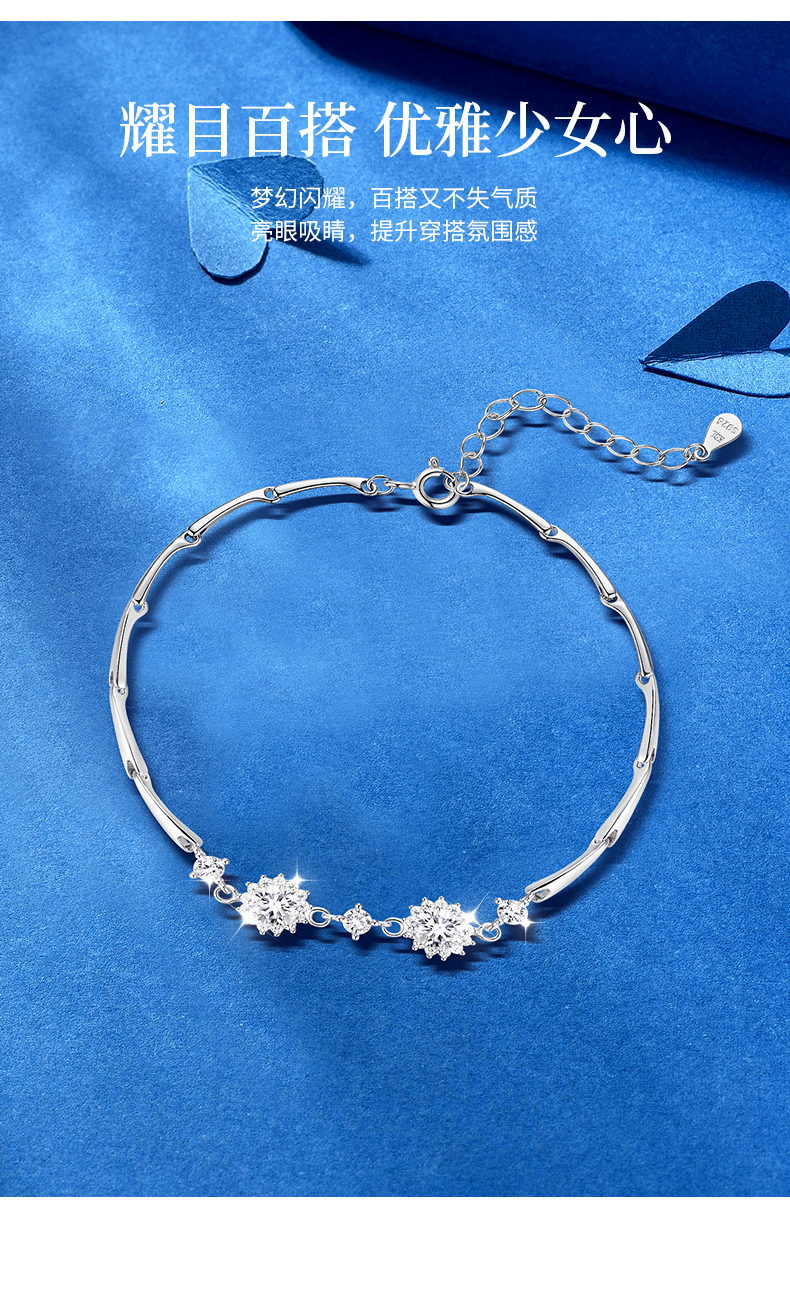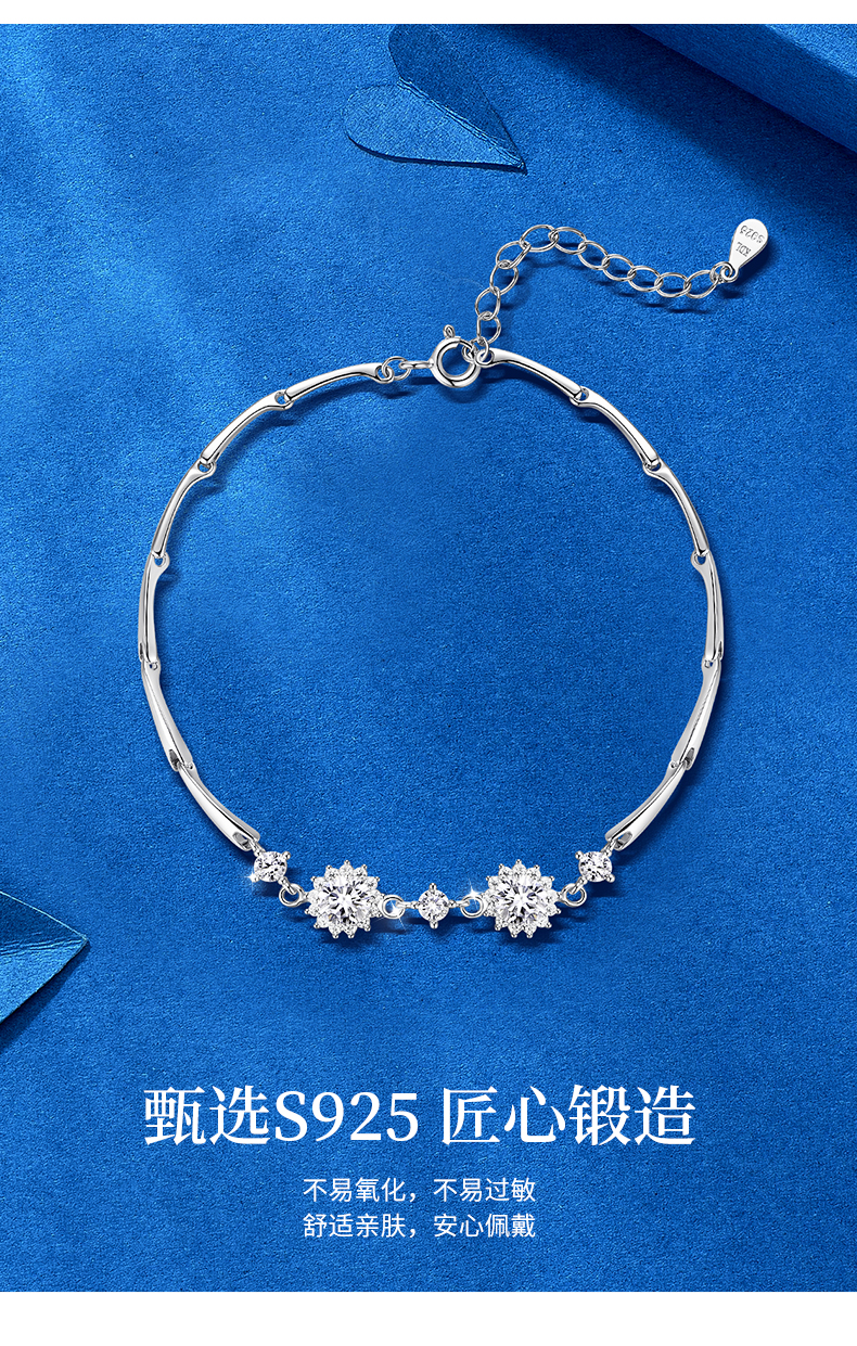 卡蒂罗/KADER 一路生光手链 璀璨繁花满镶宝石闪钻吸睛可调节银链 浪漫温柔雪绒花闪耀星点配饰 925银