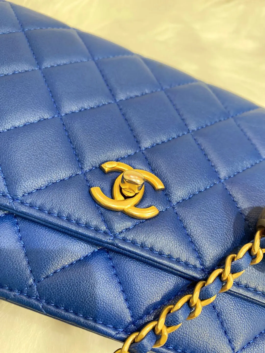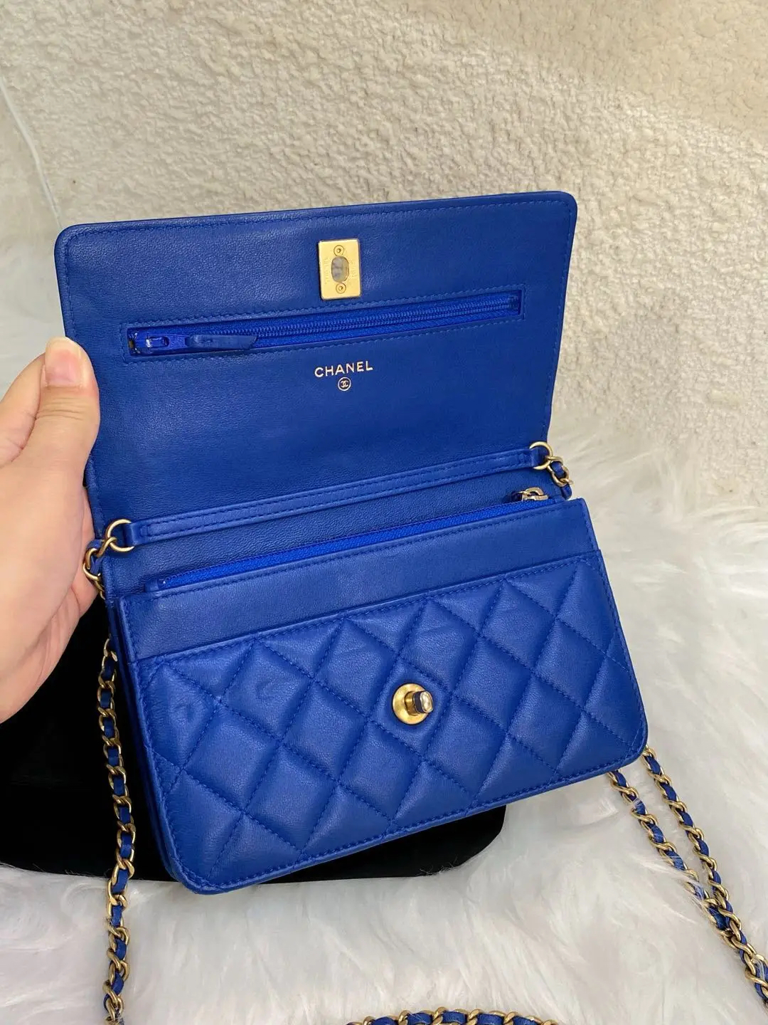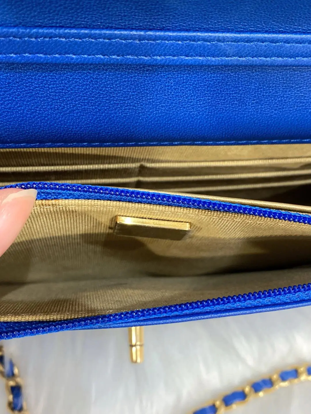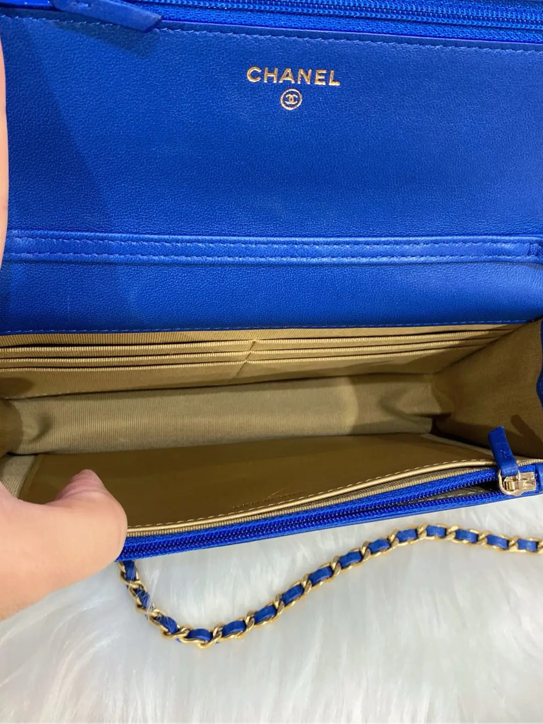 【商品详情】正品二手 Chanel 蓝色 金球 Woc 斜挎包👜97新 19*12 新钢标 配件:防尘袋。时髦精必备。