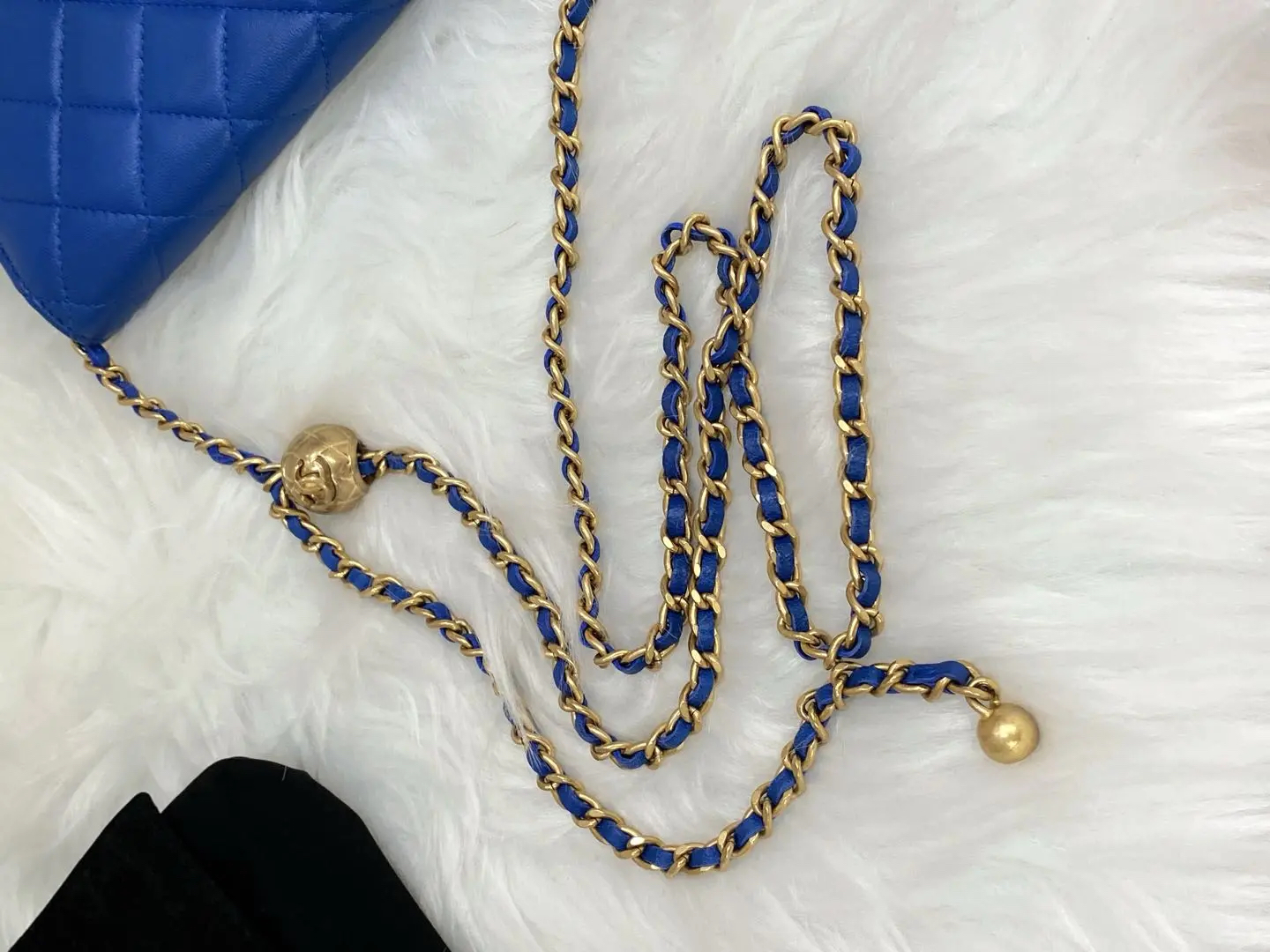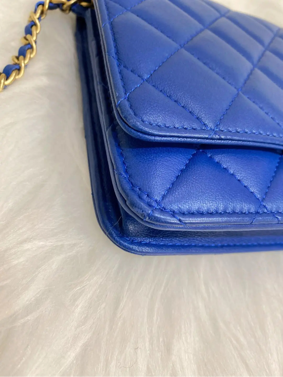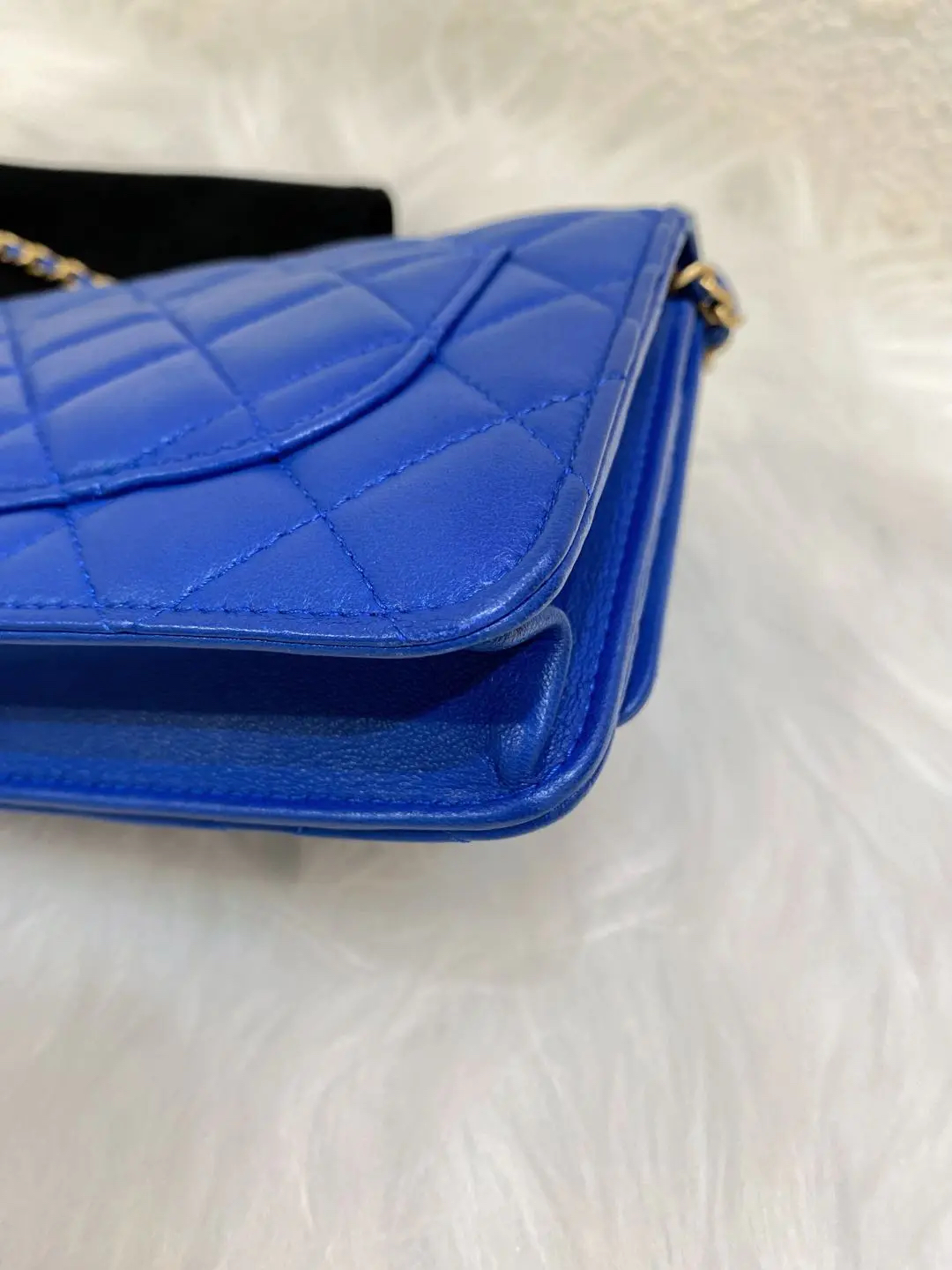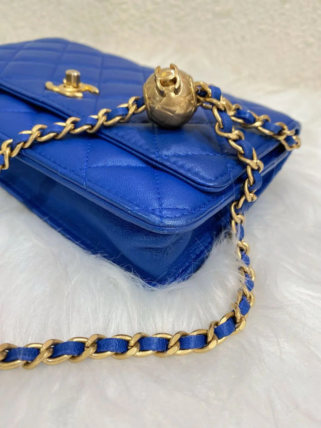 【商品详情】正品二手 Chanel 蓝色 金球 Woc 斜挎包👜97新 19*12 新钢标 配件:防尘袋。时髦精必备。