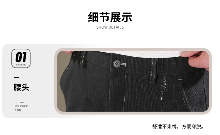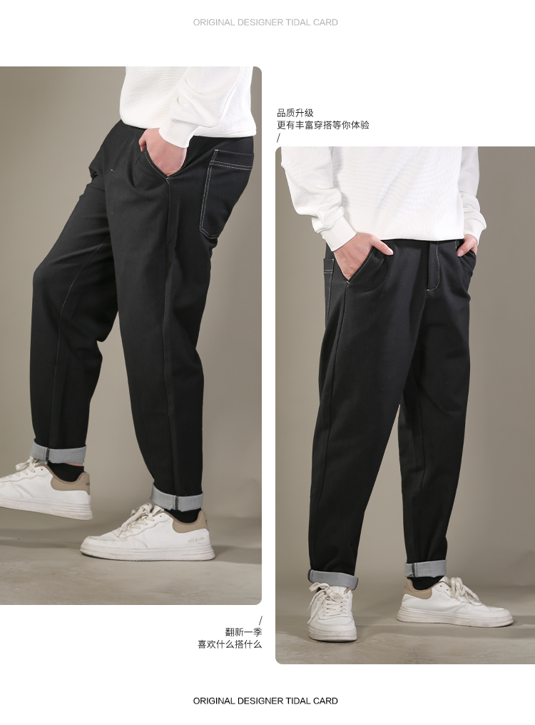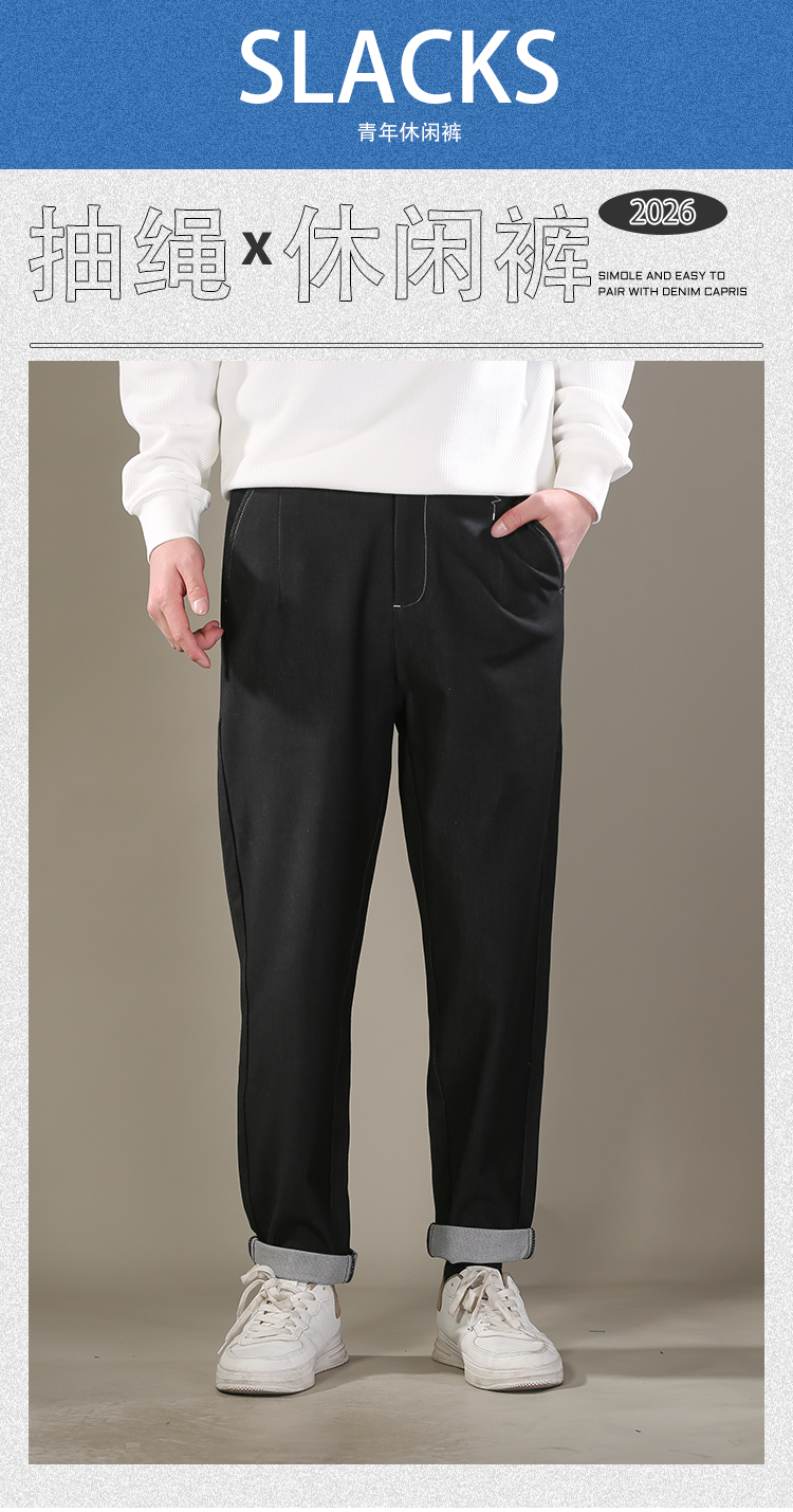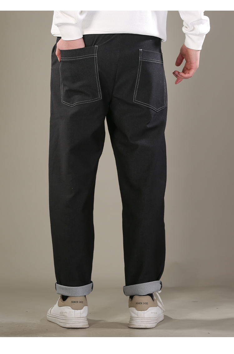 DRONKOO 2026 半松紧腰后口袋压明线仿牛仔中厚休闲长裤