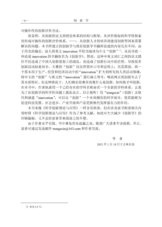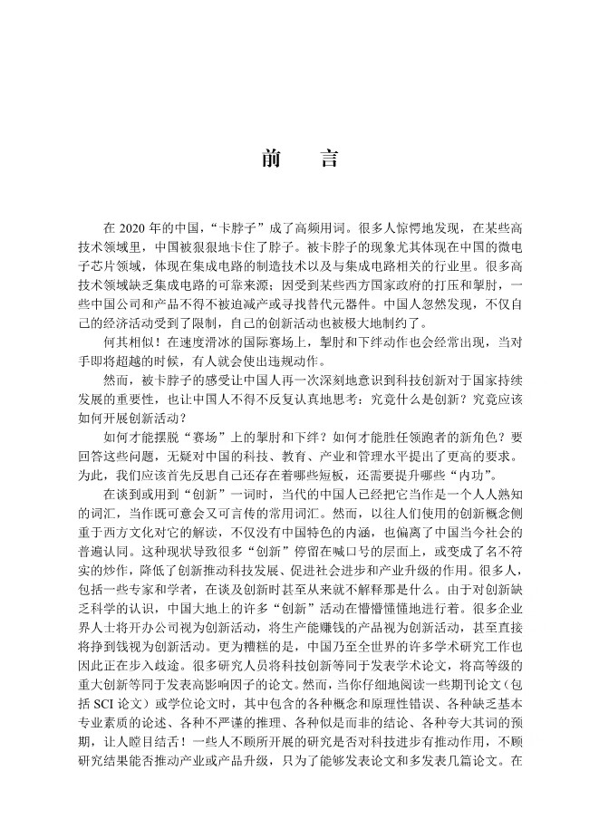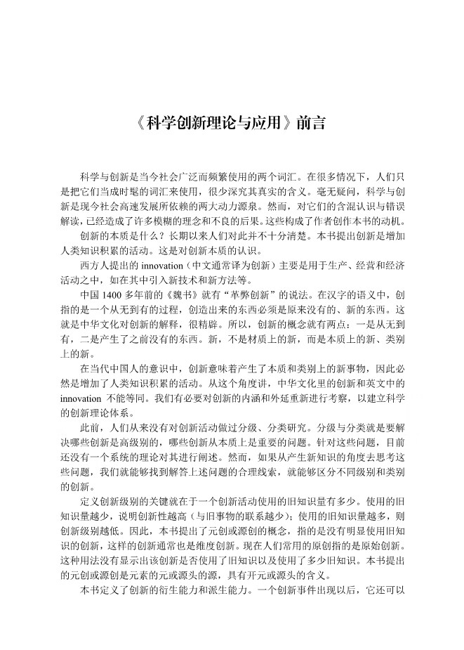 着手撰写本书的初衷是理清创新的概念,为创新活动分类、分级,并找出分类、分级的科学根据,从而能够更好地指导和评价人们的创新活动。但是,我们发现如果不能把诸如“科学”“技术”和“知识”等基本概念阐述清晰,就无从开展关于创新的论述。偏离科学依据的“创新”只会产生荒唐的结果,会造成人类知识积累的混乱,会造成社会财富的浪费,会误导人们的思维,会干扰人类社会前进的步伐。