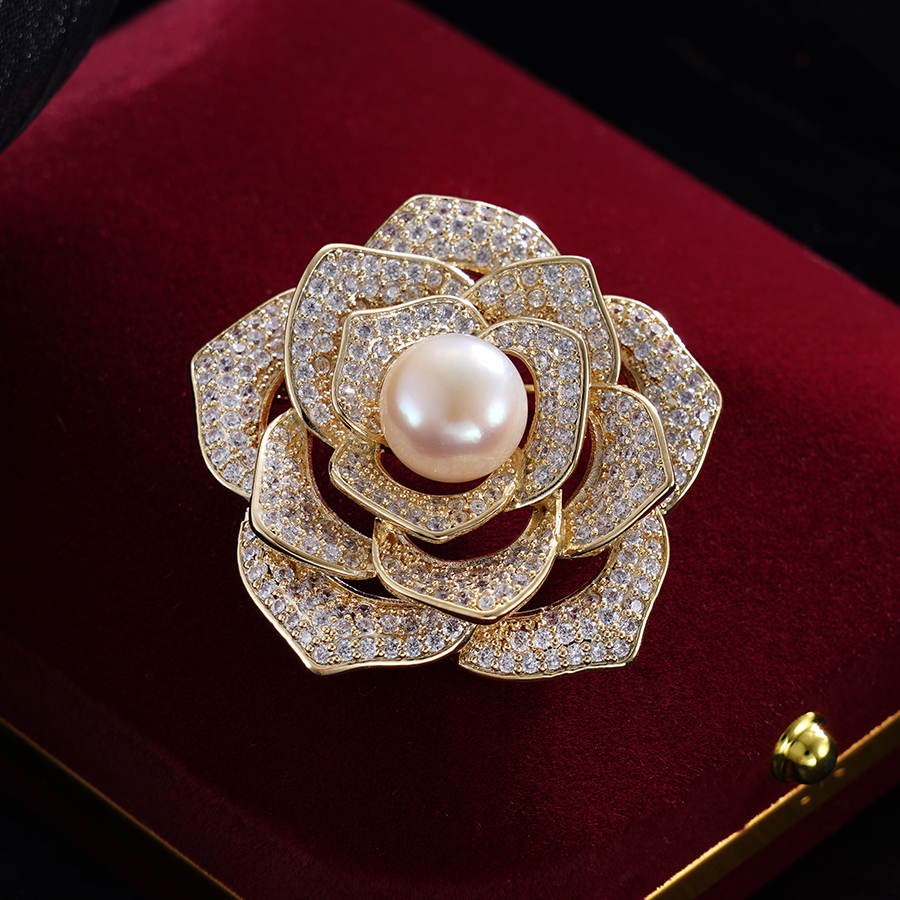 子佩集珍珠胸针【XXXZ217】山茶花镀金2410