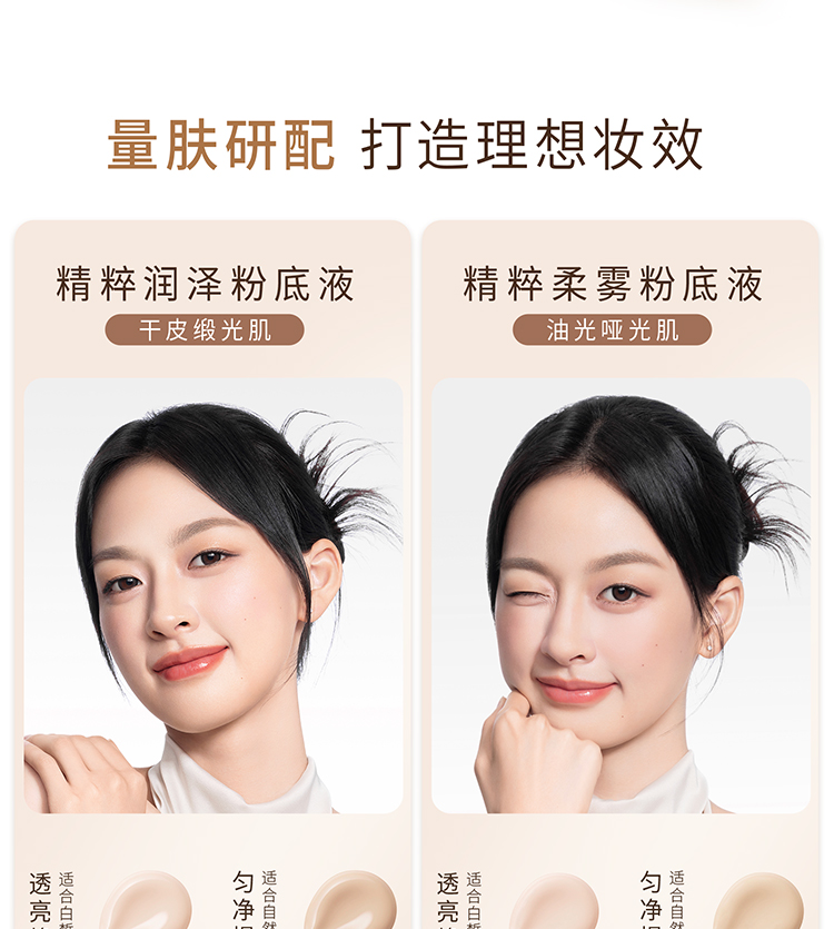 【粉底液】敏感肌可用 油皮/干皮适用 持久不脱妆 水润服帖 无惧大笑卡纹 精粹柔雾/润泽粉底液30g