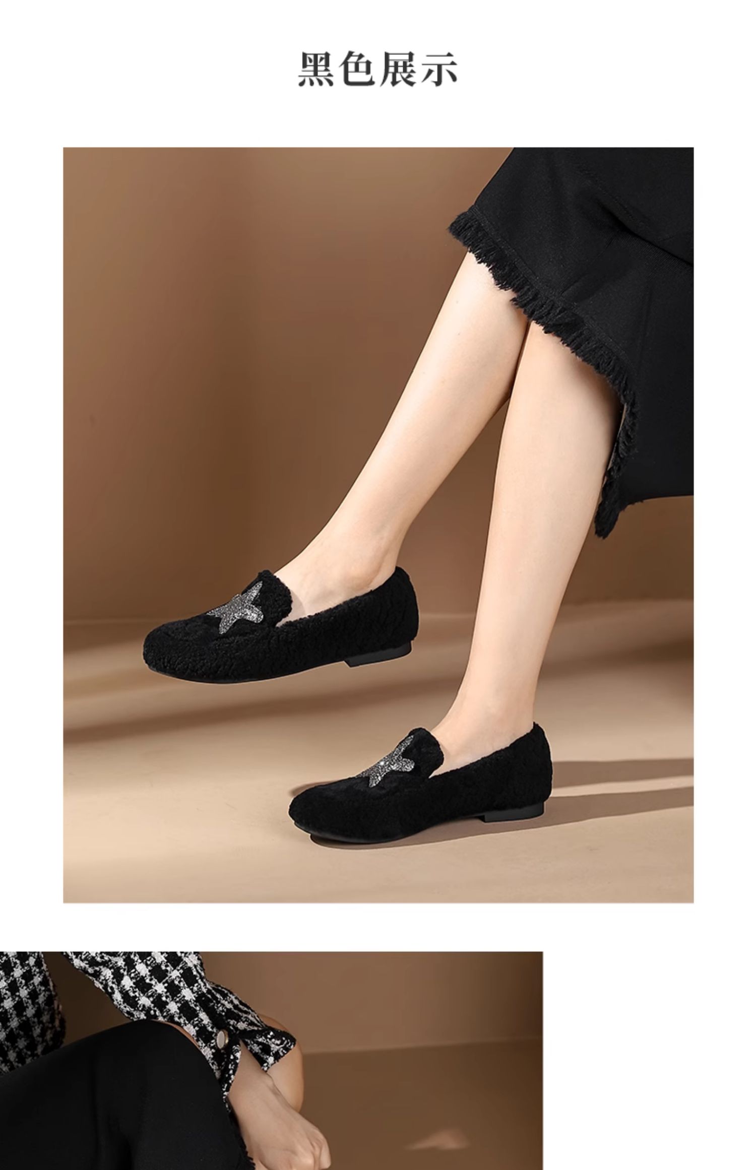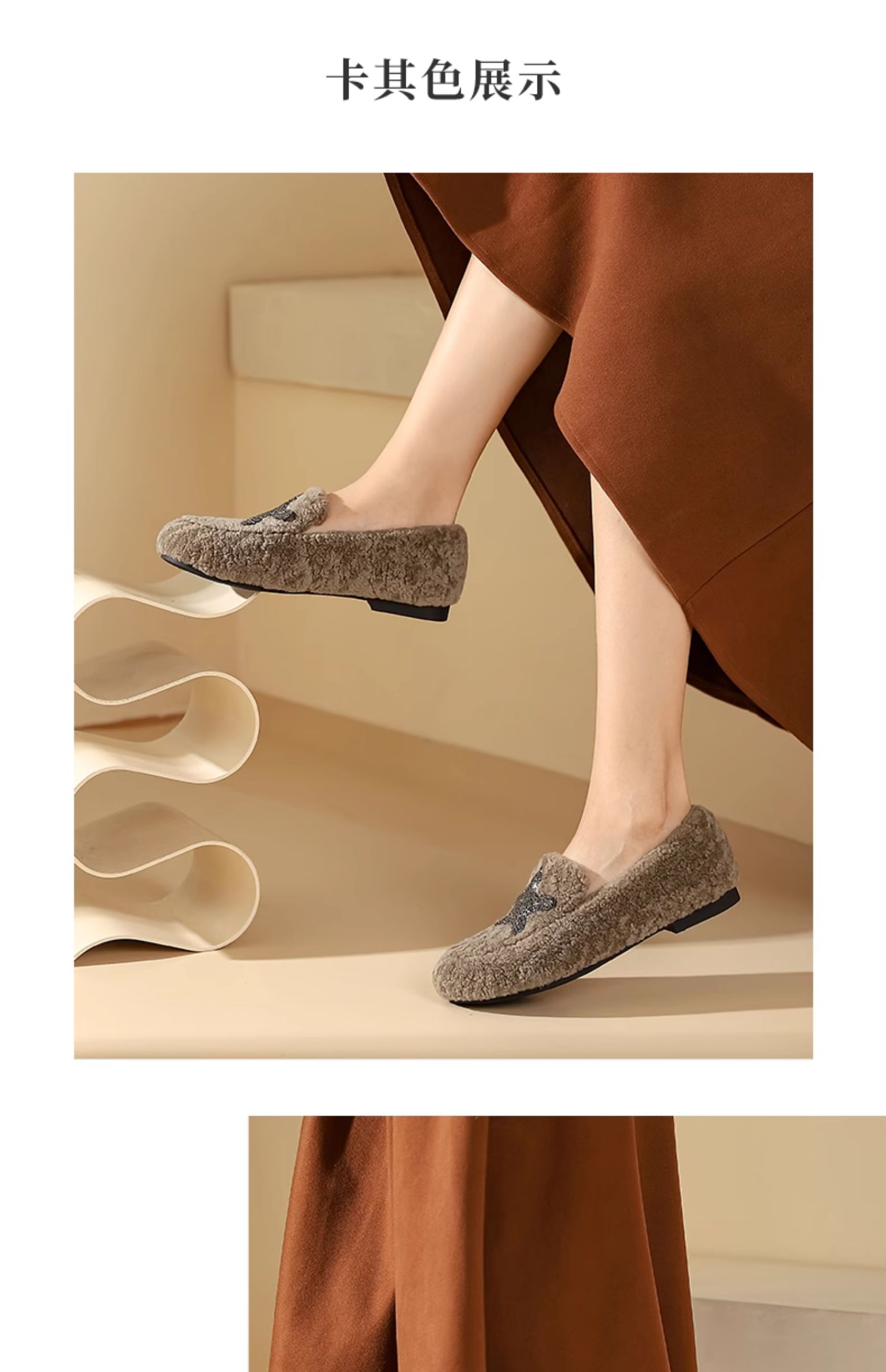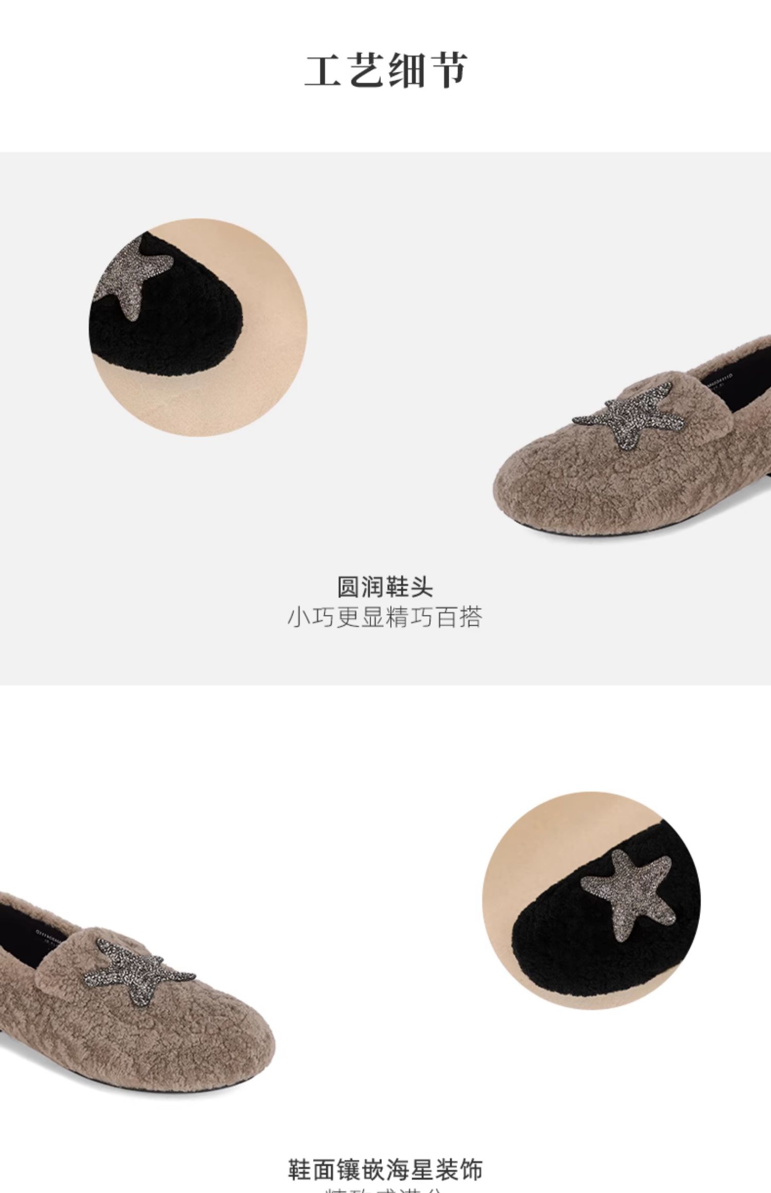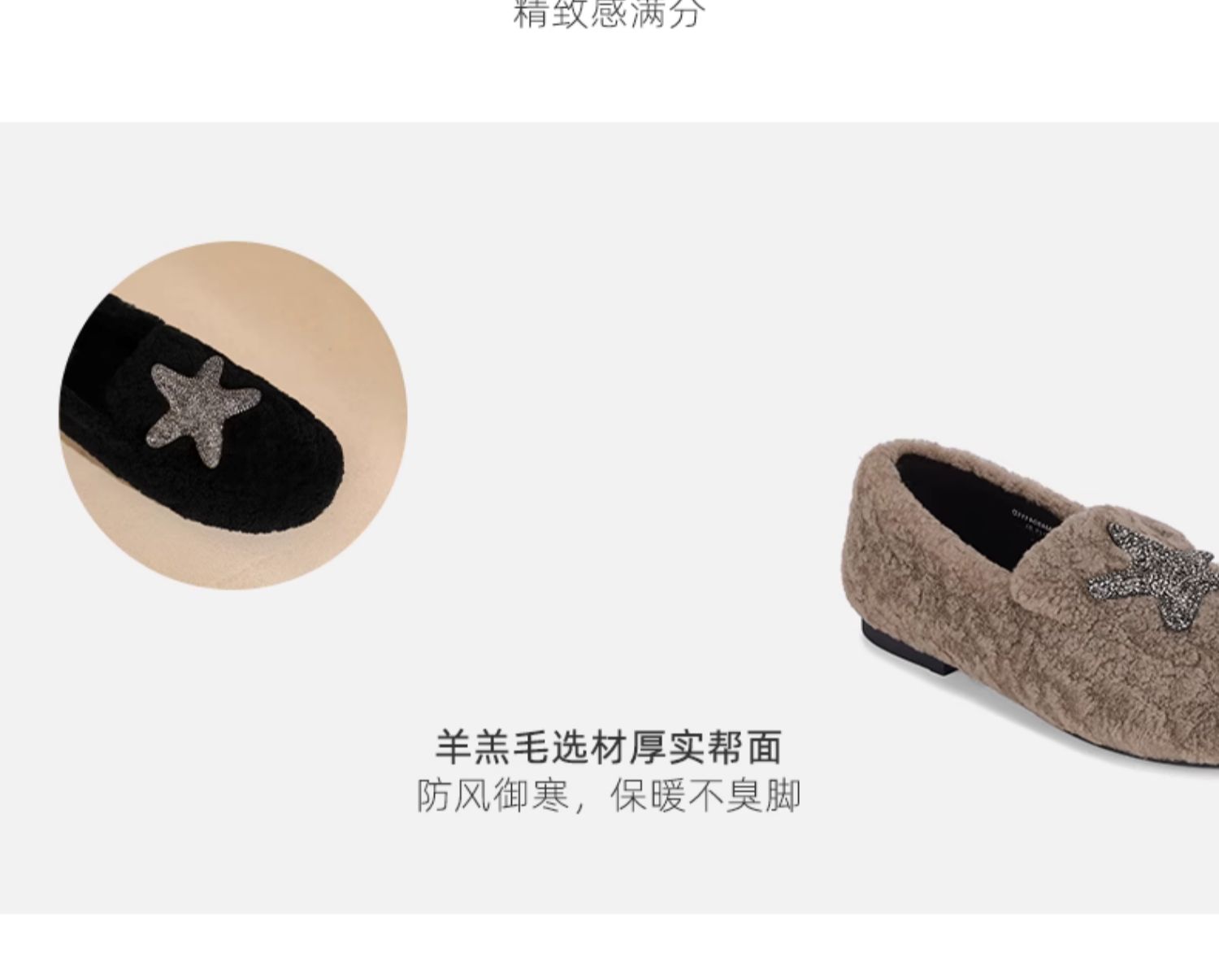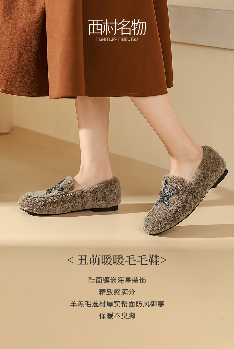 西村名物2023秋冬新款浅口平底休闲豆豆鞋女丑萌暖暖毛毛鞋X23DM45041