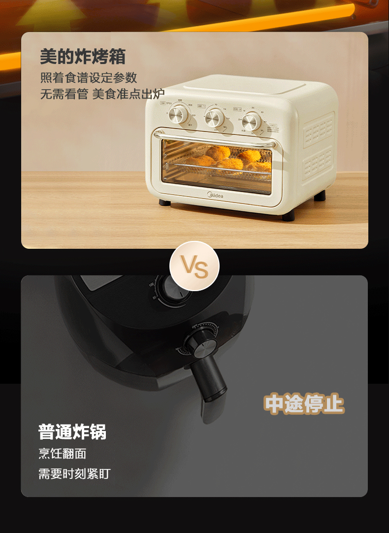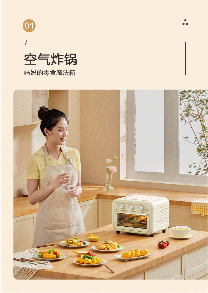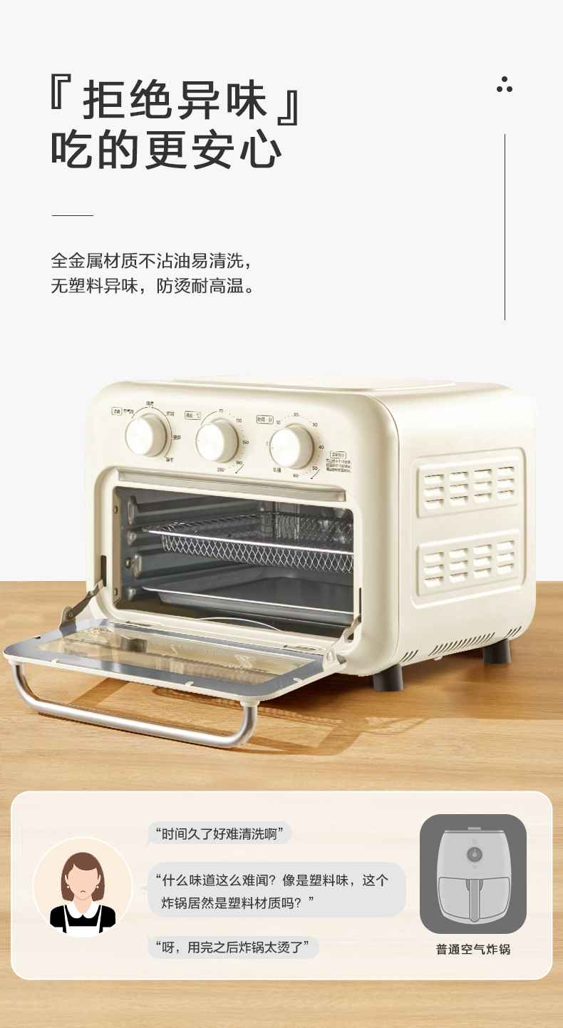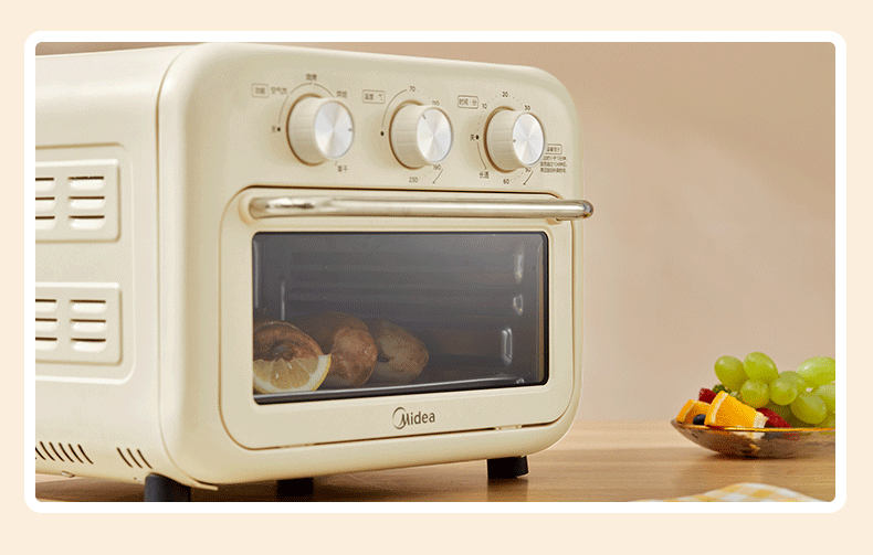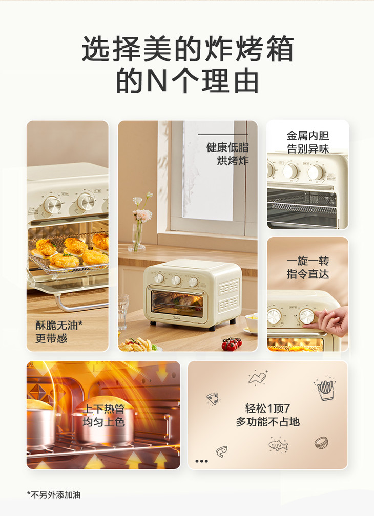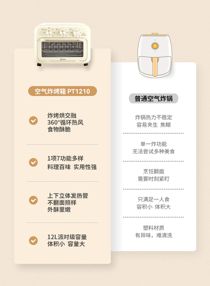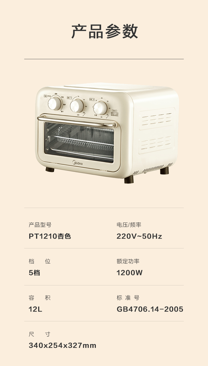 【新品上线】美的(Midea) 美的空气炸锅烤箱一体机小型家用烘培炉电烤箱二合一2022新款PT1210 杏色(双按钮调节)