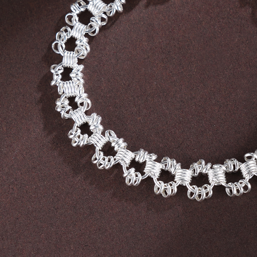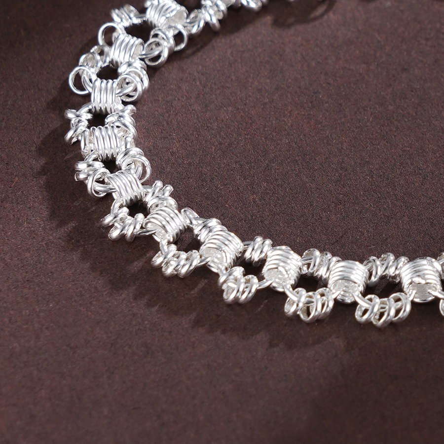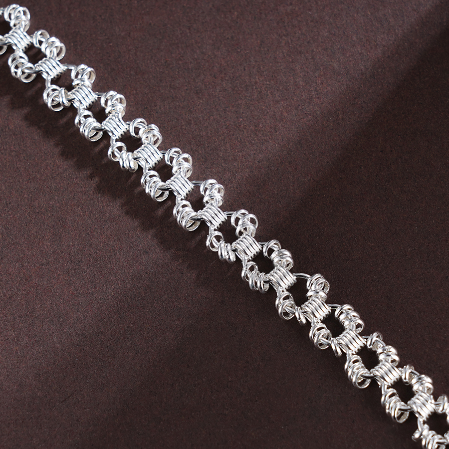 【寓意】:手链由数百圆环巧妙拼接,环环相契,错落层叠,自成韵律。表面经精细抛光,触感温润细腻,尽显奢雅风范。