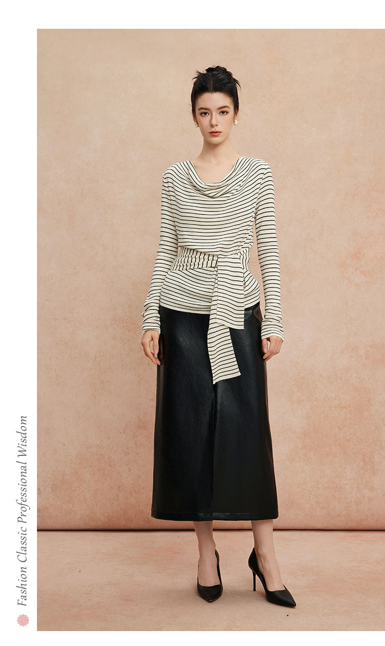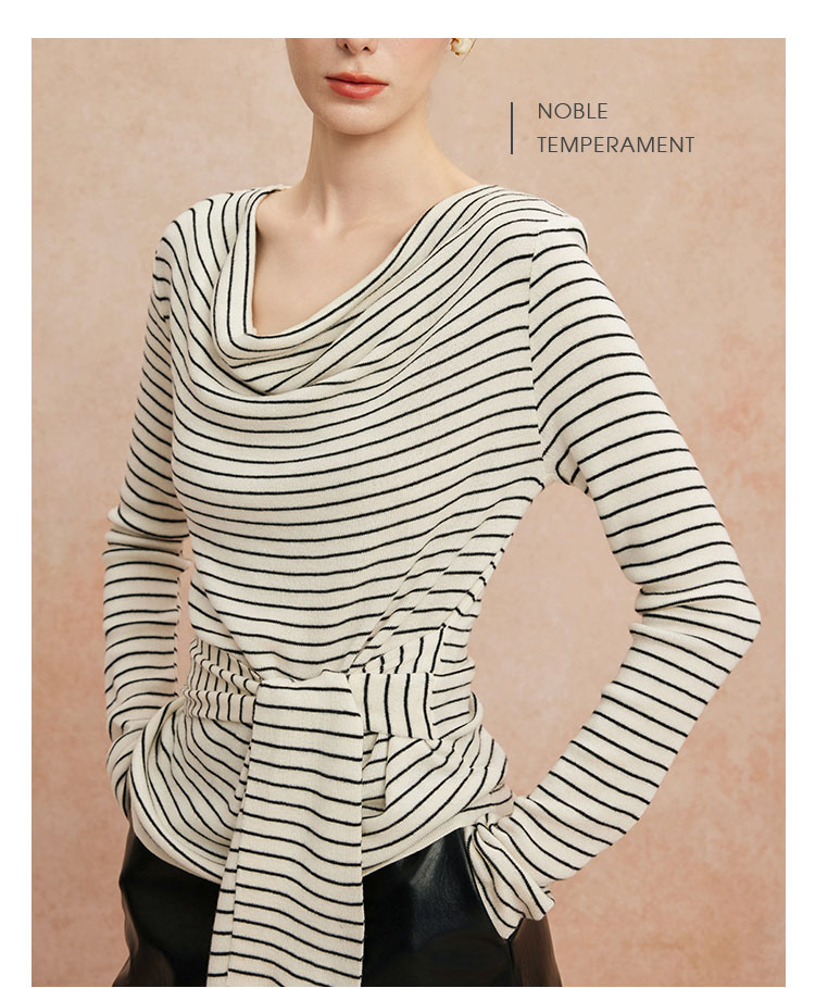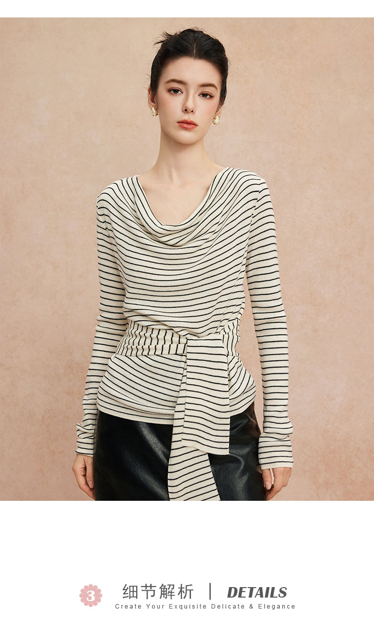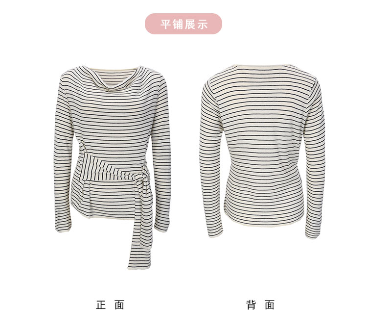 QG652斯尔丽25新款细针精纺纱线不对称收腰系带设计显高毛衫条纹上衣