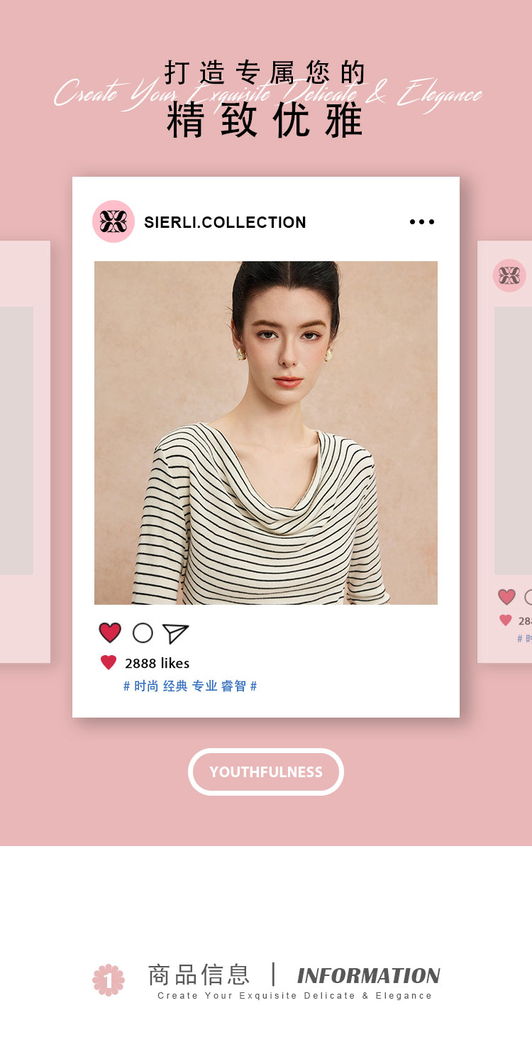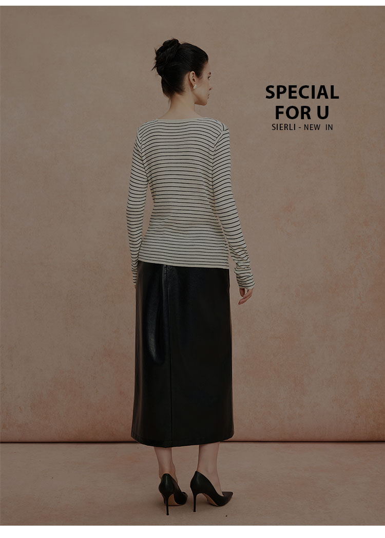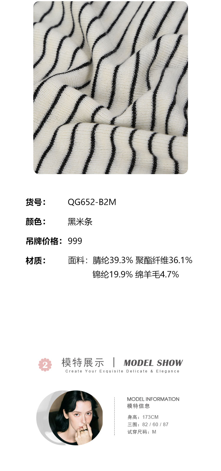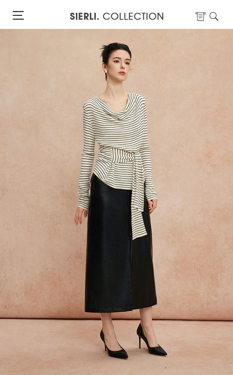 QG652斯尔丽25新款细针精纺纱线不对称收腰系带设计显高毛衫条纹上衣