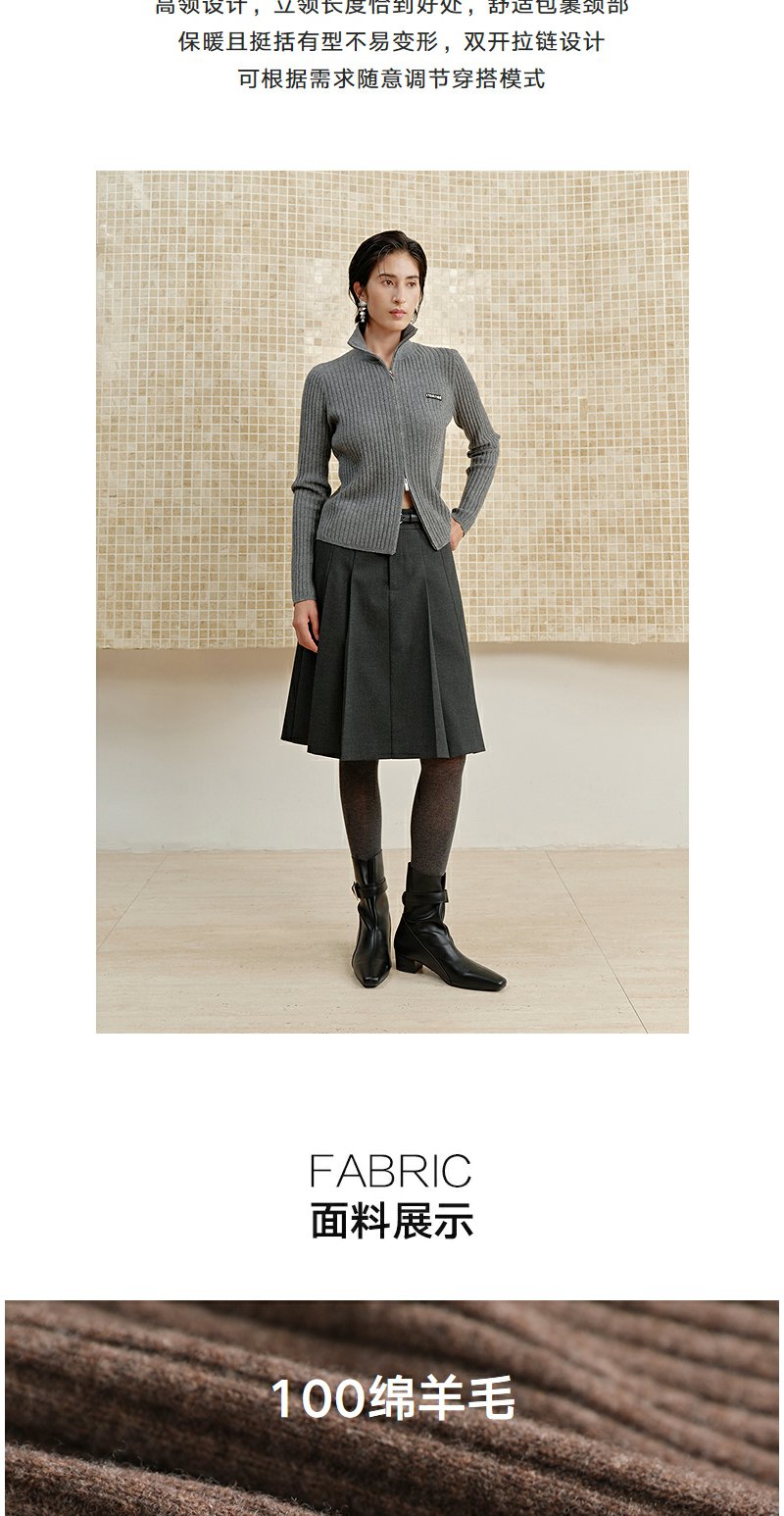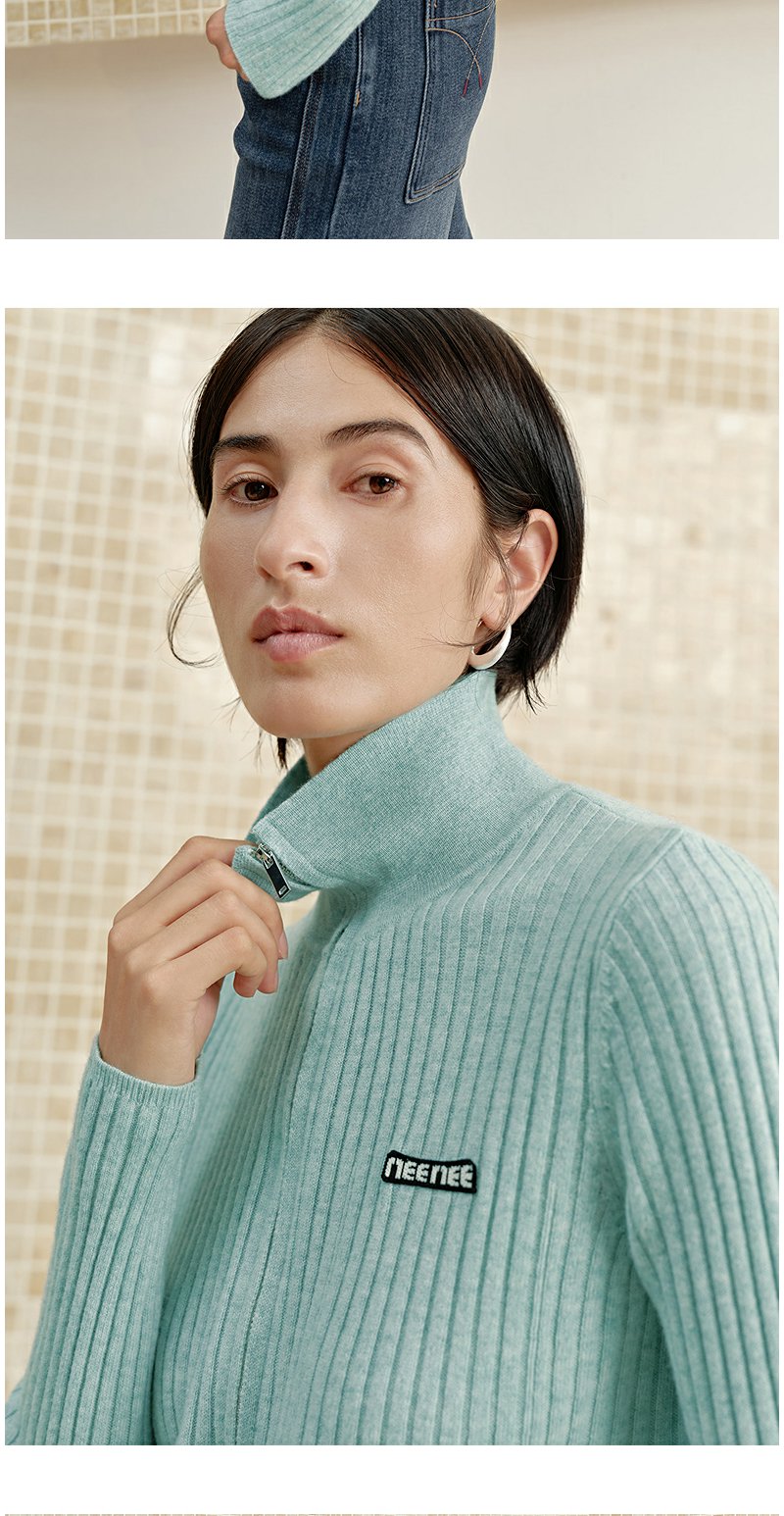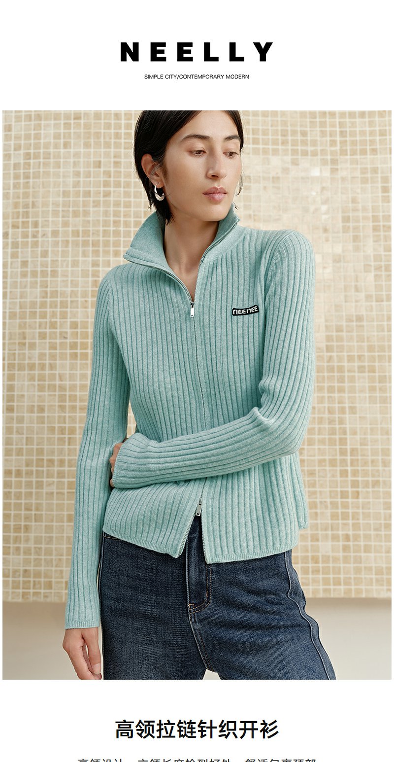 NEELLY纳俪商场同款冬季新款高领修身拉链针织开衫女显瘦清新毛衣N25102A01033
