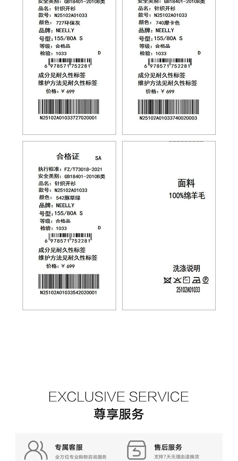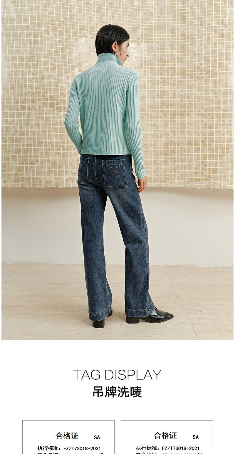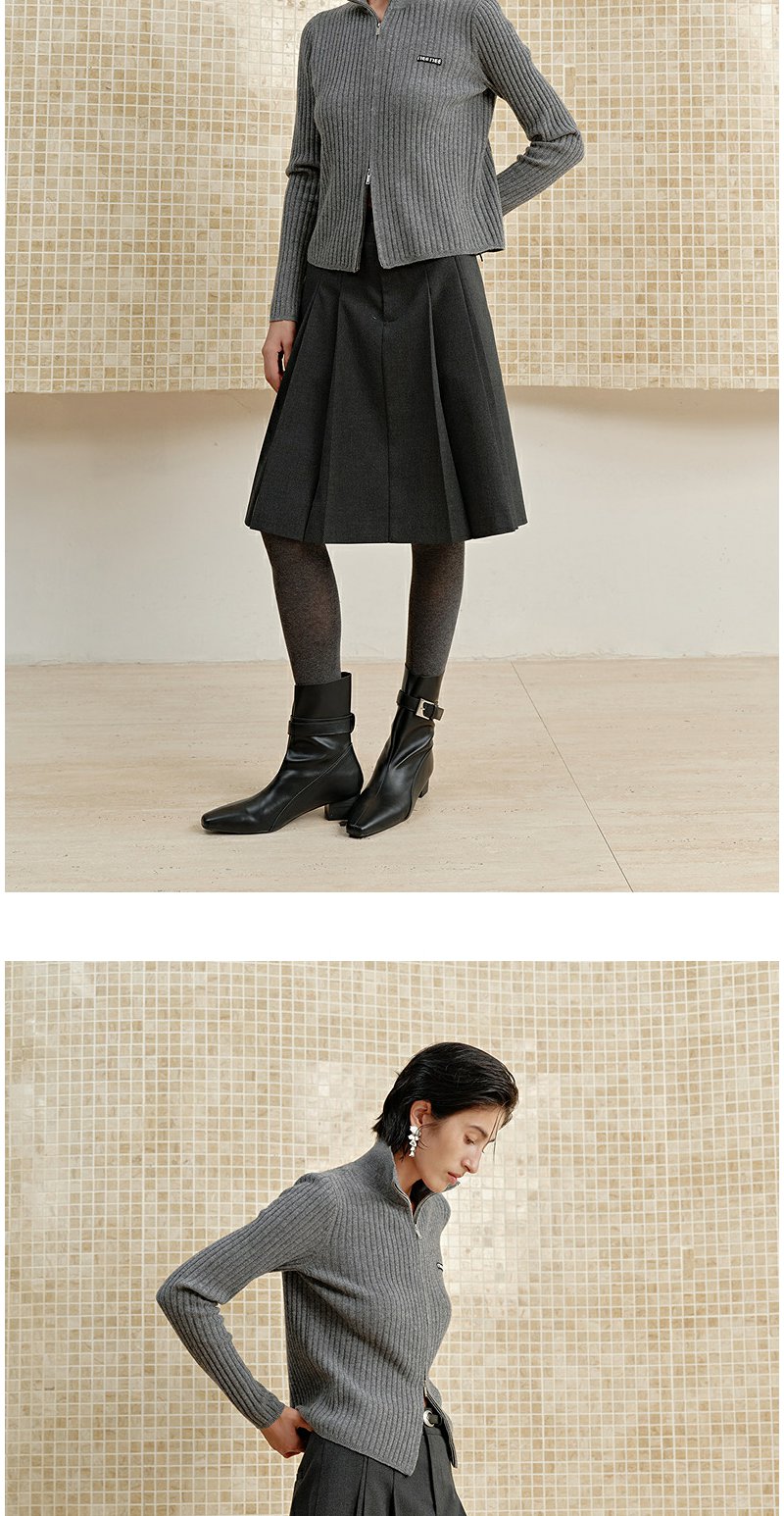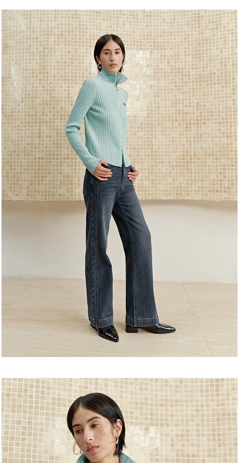 NEELLY纳俪商场同款冬季新款高领修身拉链针织开衫女显瘦清新毛衣N25102A01033