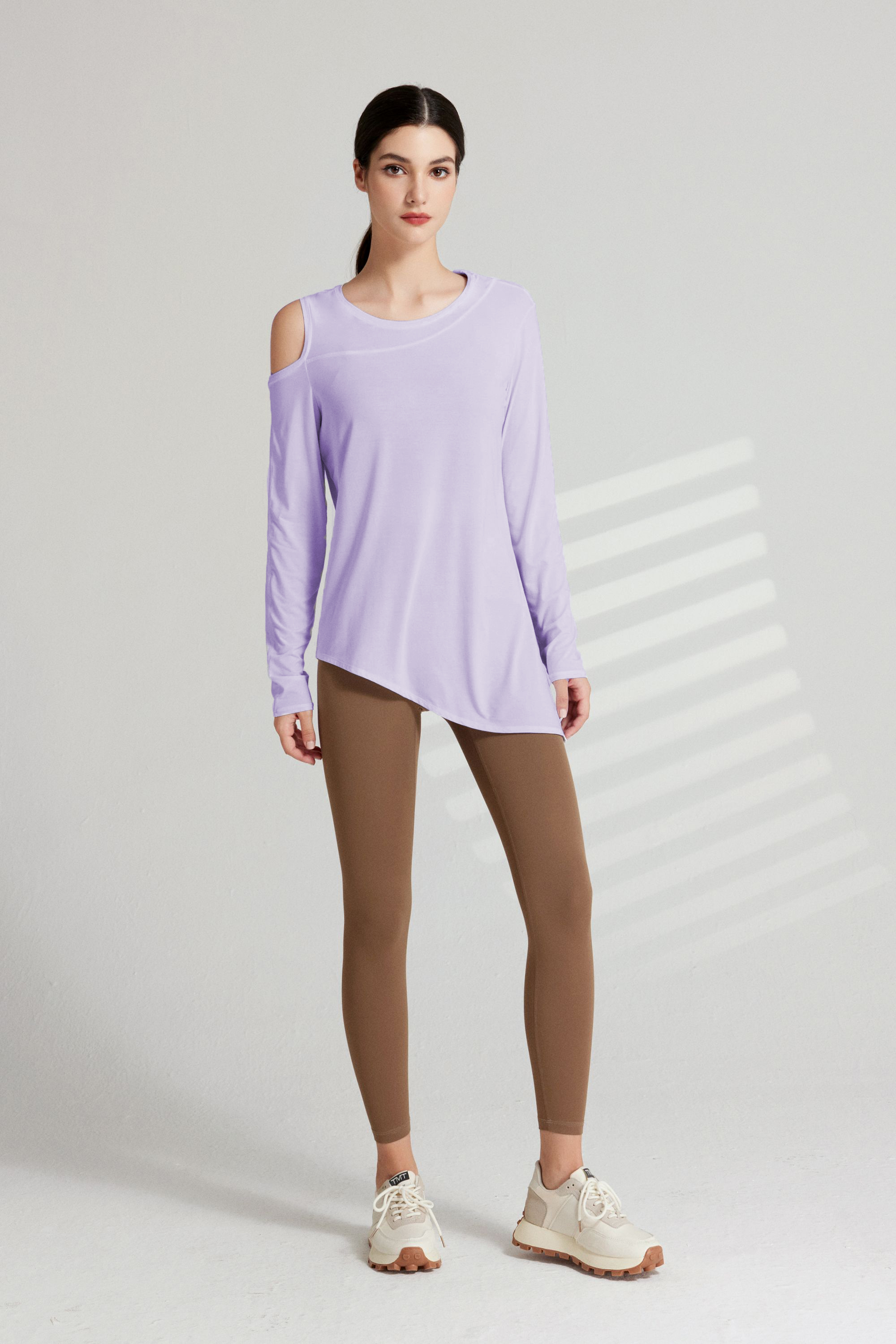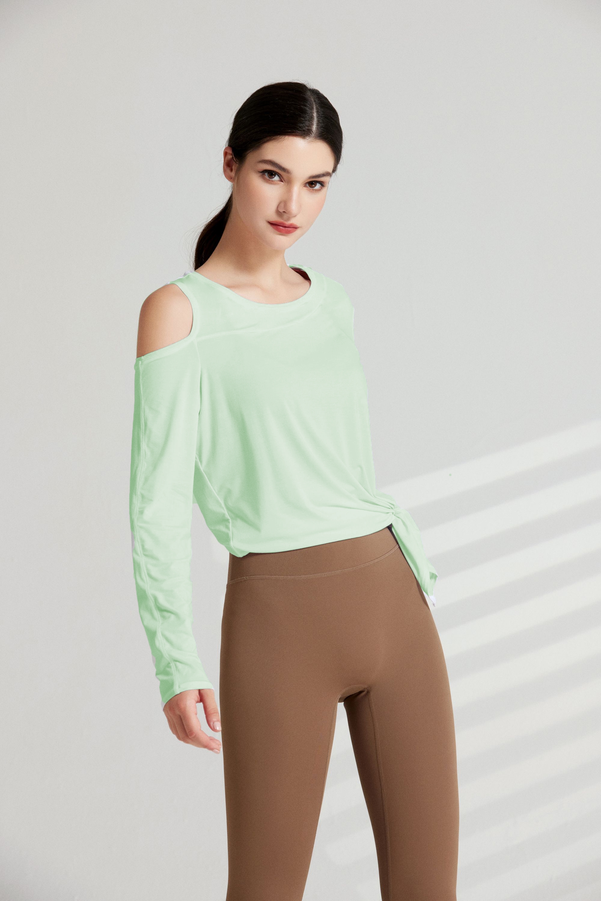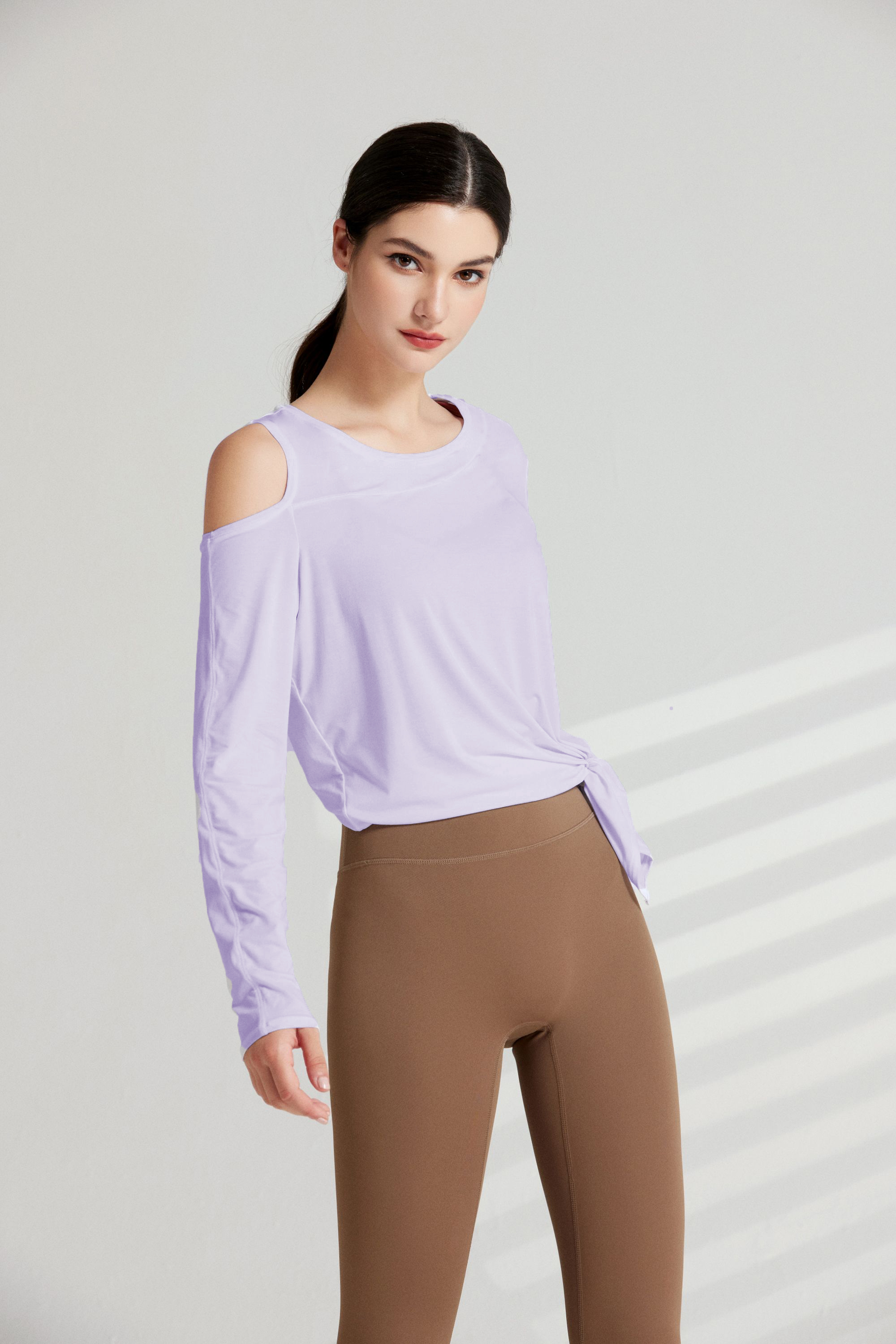 哈瓦塔长袖漏肩罩衫上衣