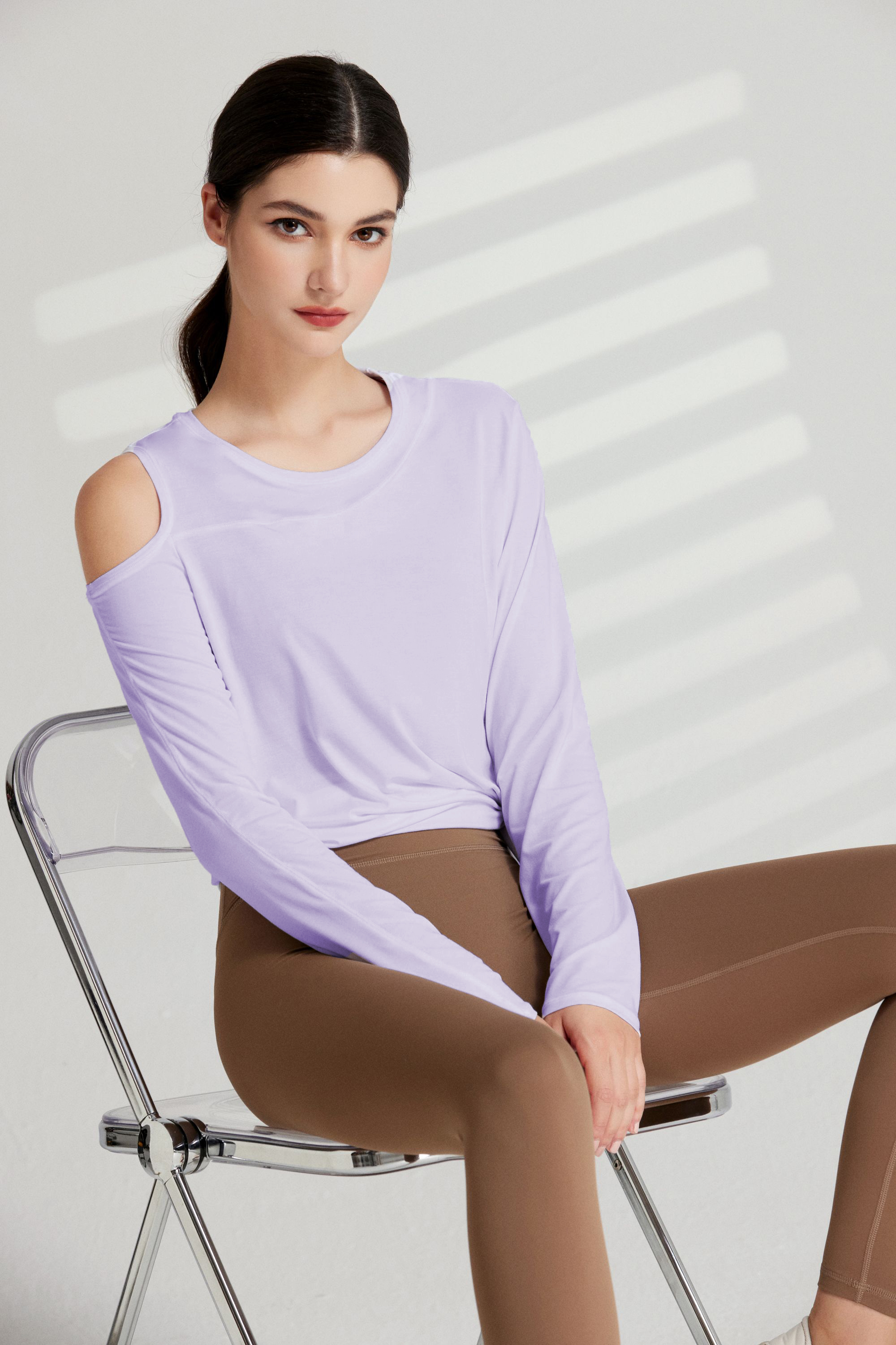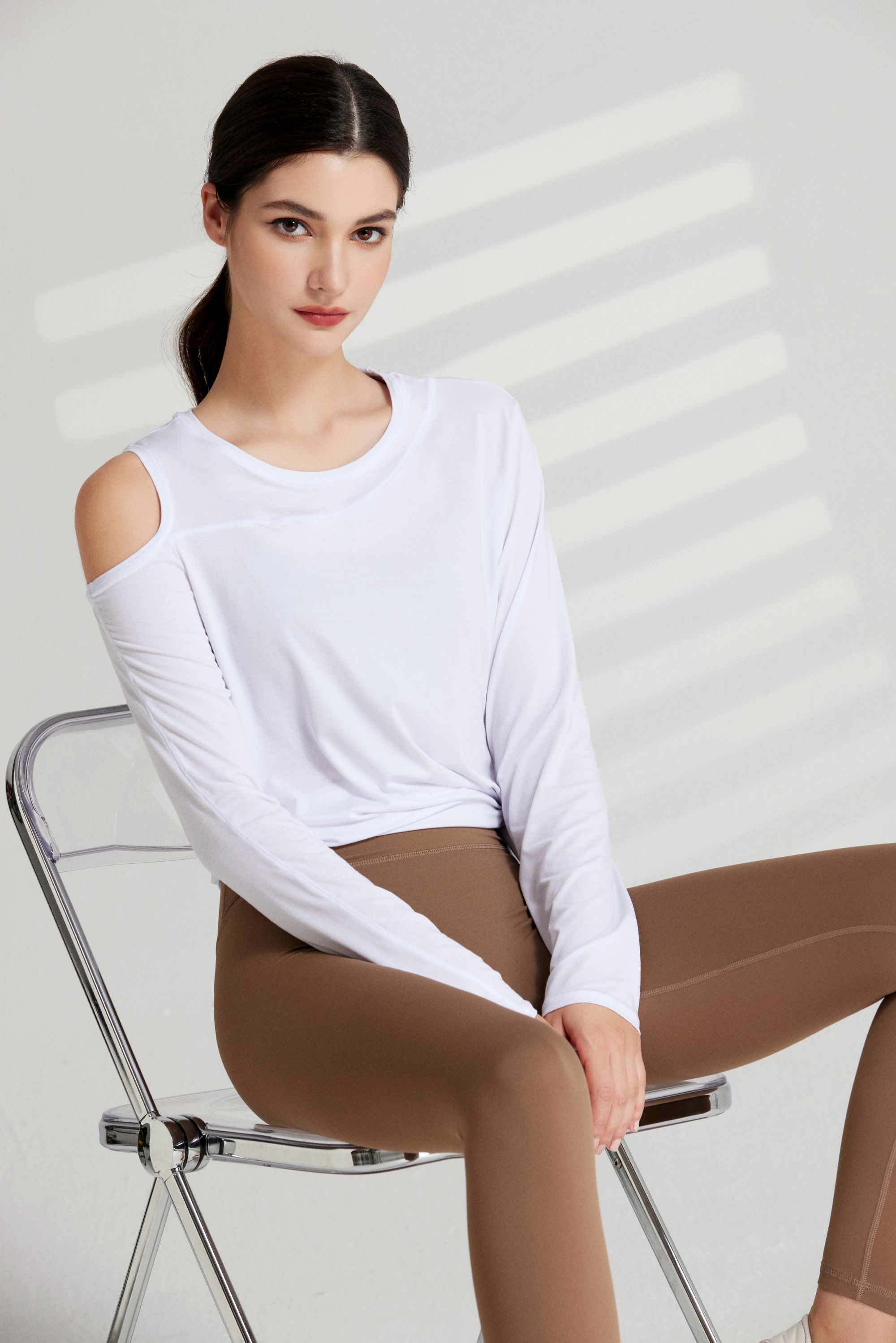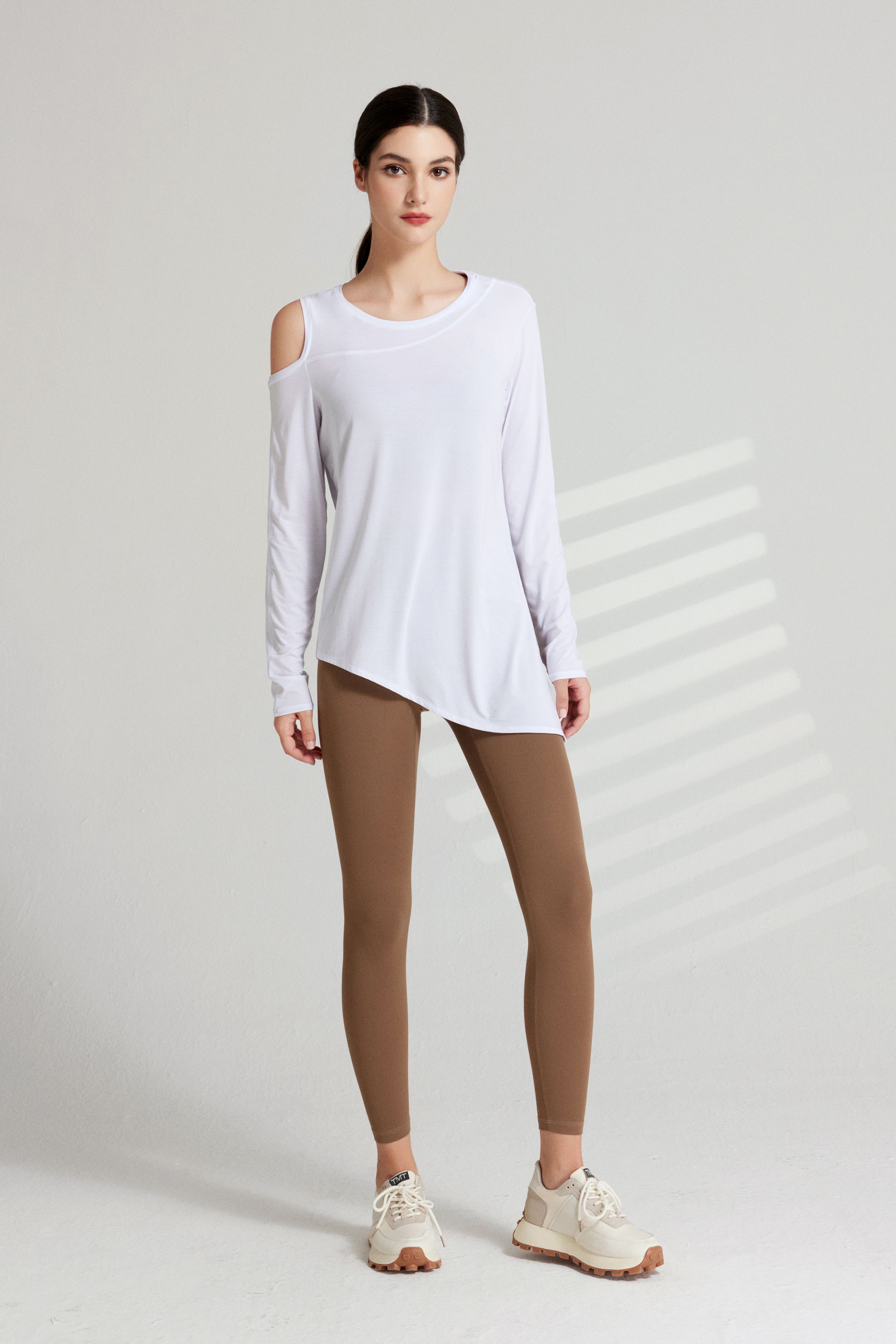 哈瓦塔长袖漏肩罩衫上衣