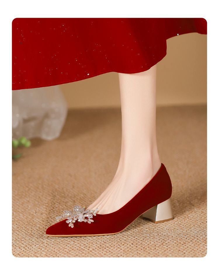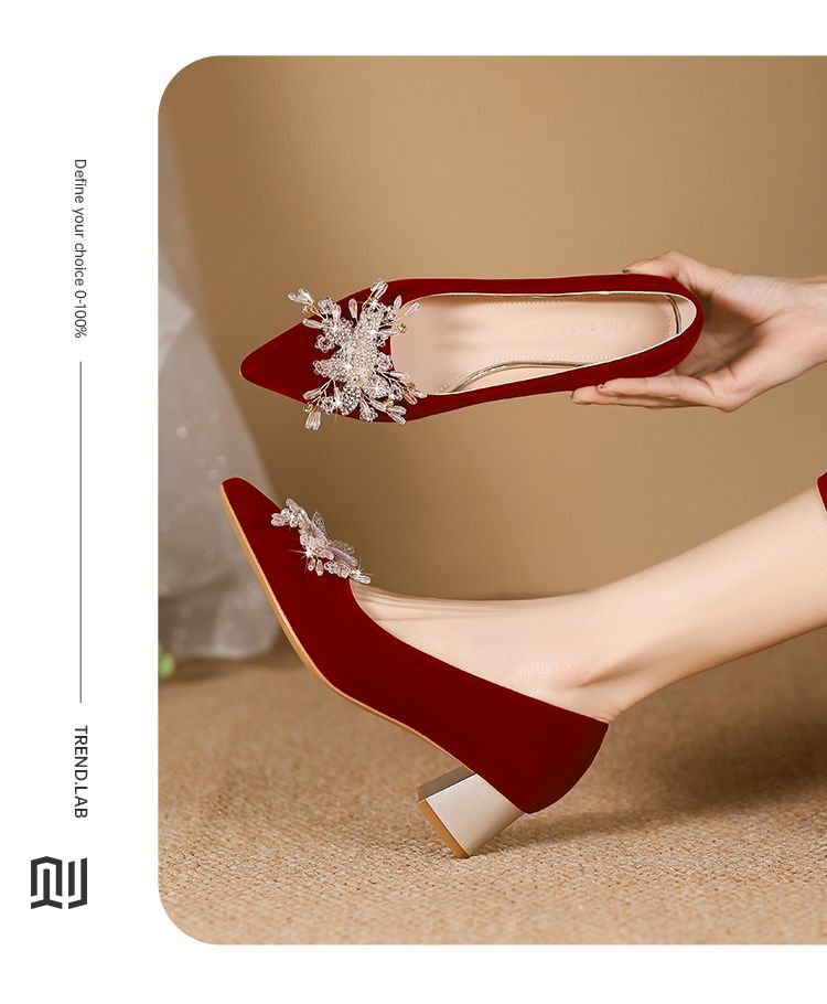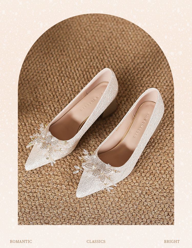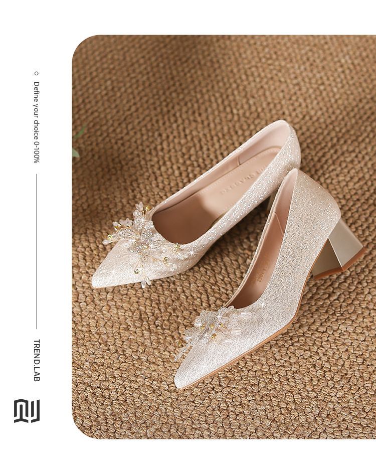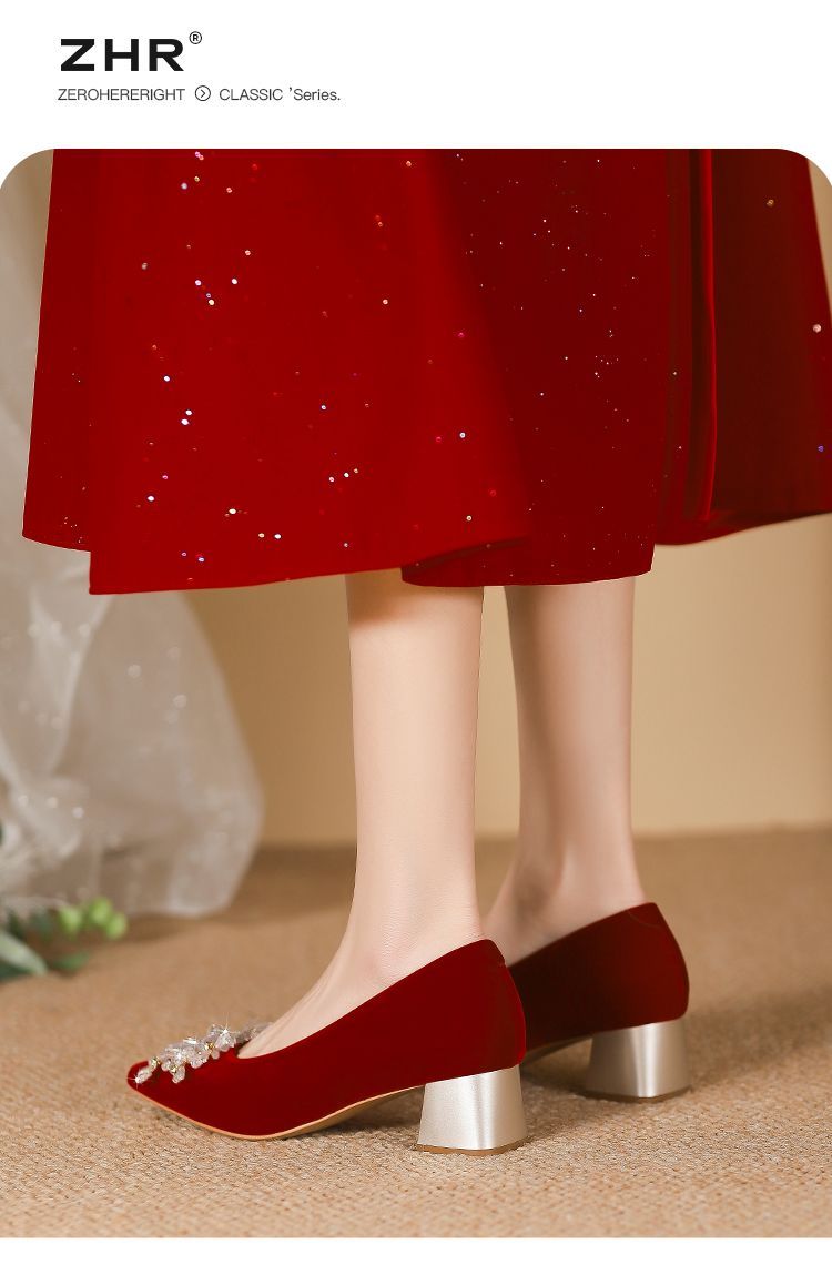 ZHR则则气质法式婚鞋女2025新款订婚新娘百搭宴会鞋水钻伴娘单鞋