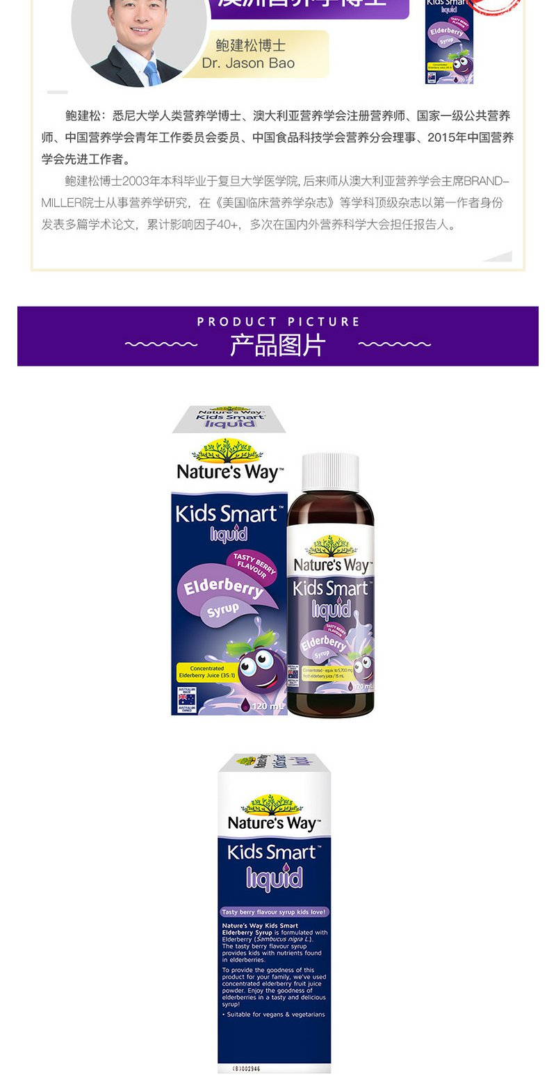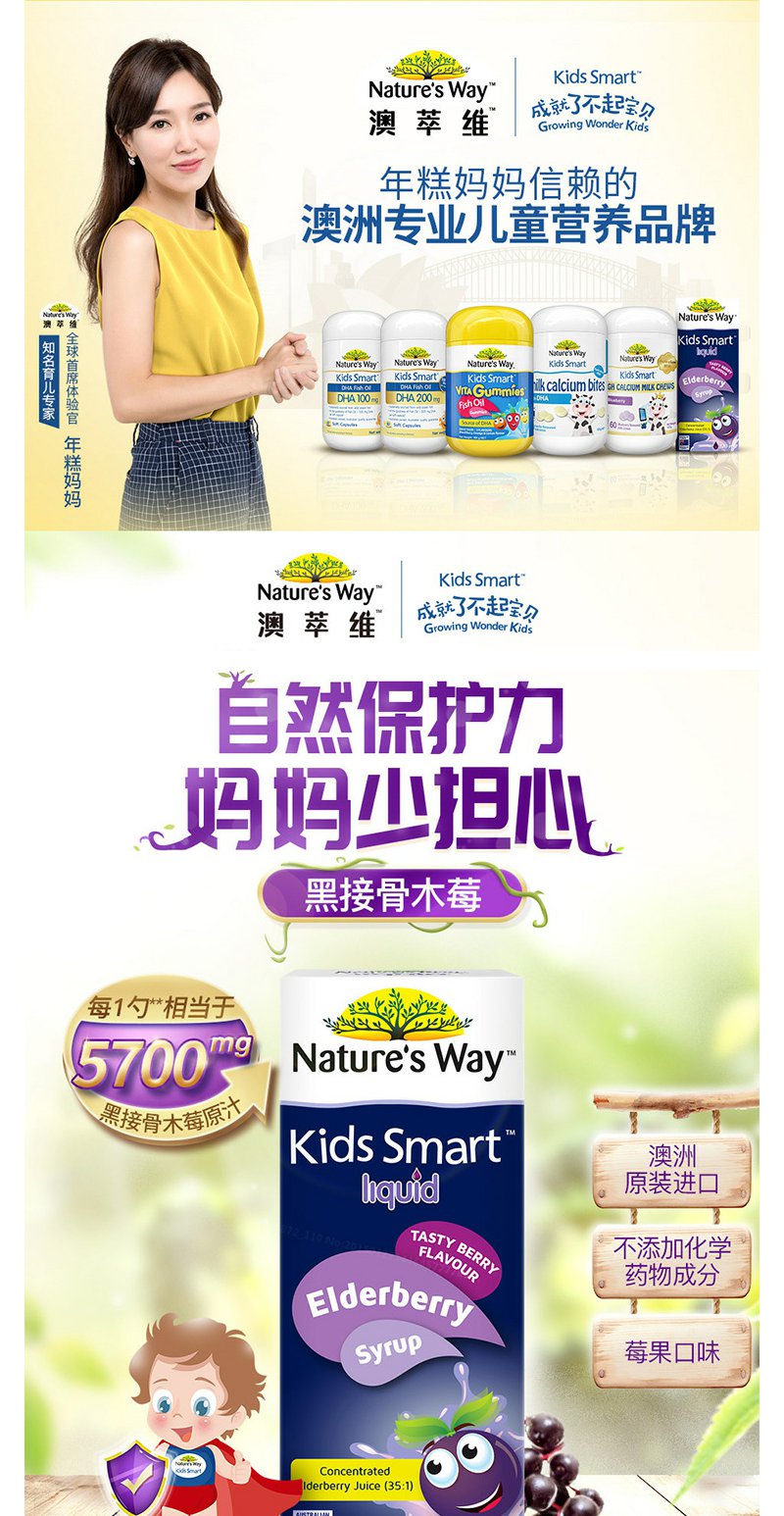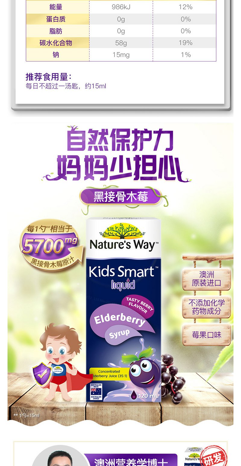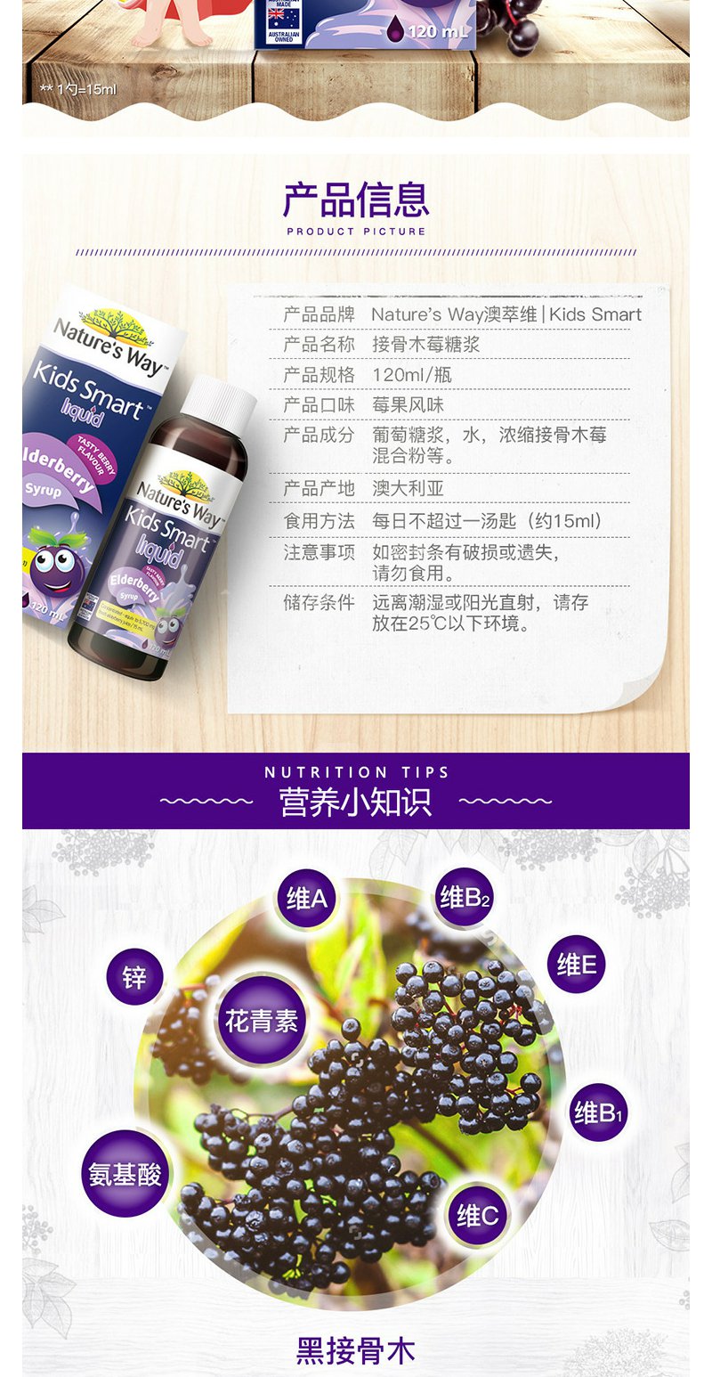 澳大利亚KidsSmart佳思敏鱼接骨木莓风味糖浆120ml