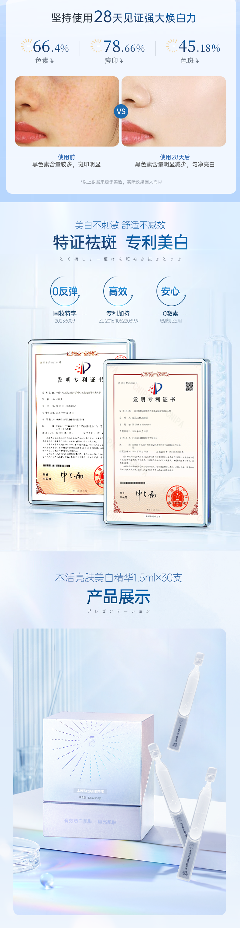 儒意本活亮肤美白祛斑精华1.5ml*30支 持证美白专利淡斑 | 儒意官方商城