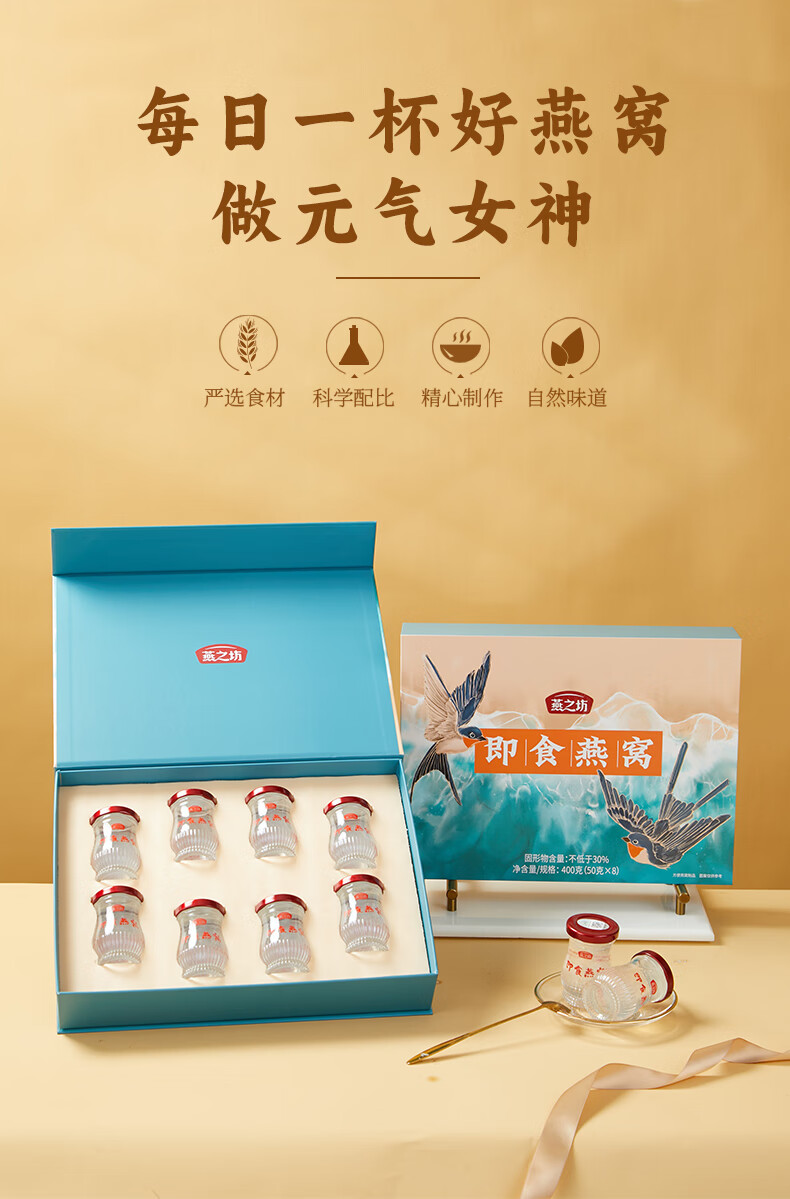 燕之坊 即食燕窝400g(50g*8) 营养孕妇礼佳节礼盒送礼 三八节送女友妈妈 员工福利企业团购