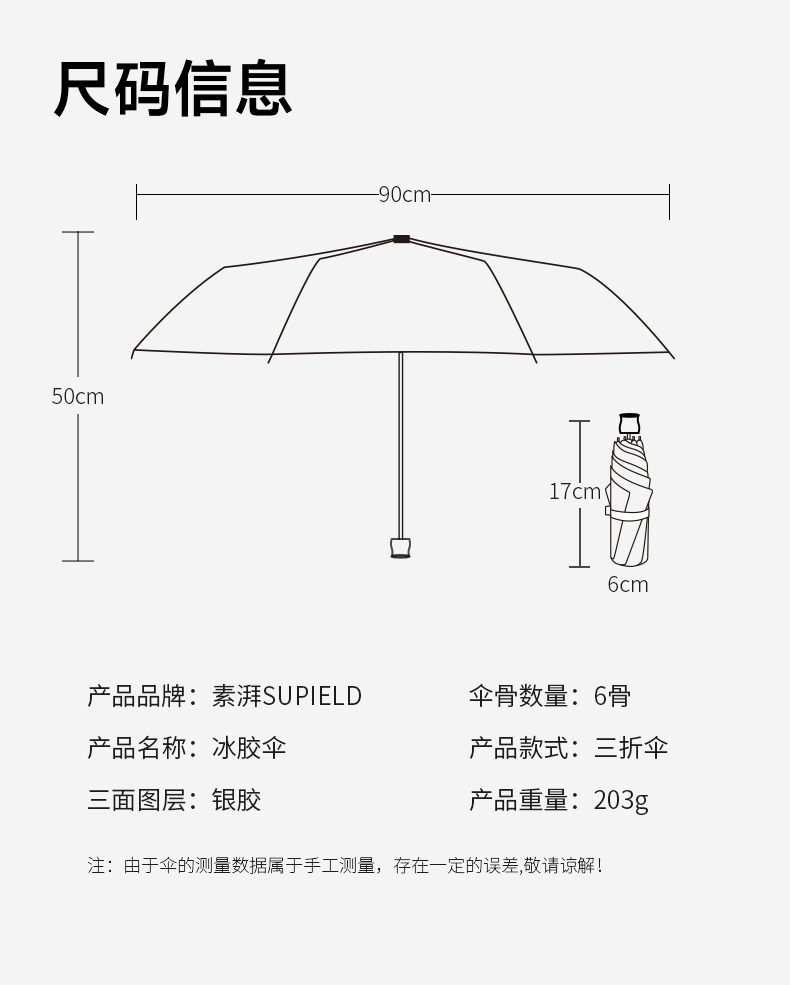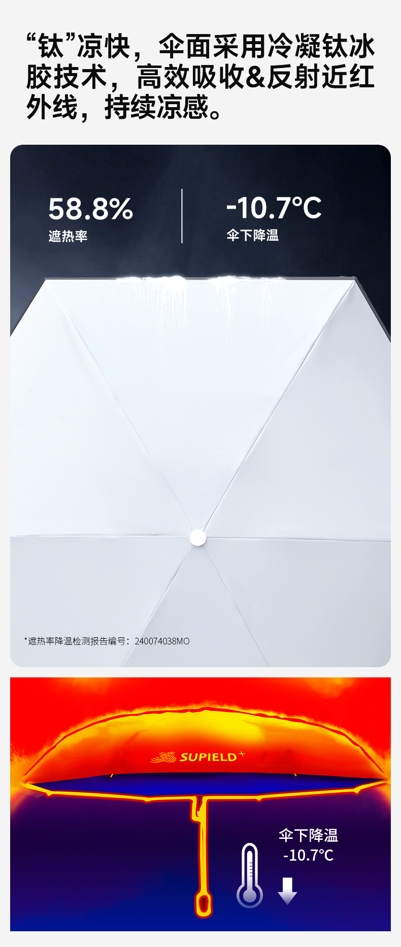 Supield素湃全波段防晒隔热伞夏季凉感三折伞两用晴雨伞